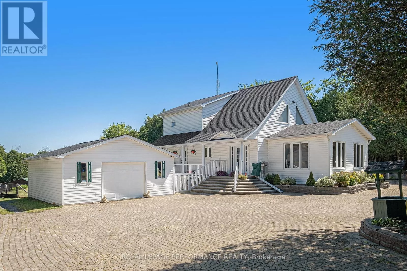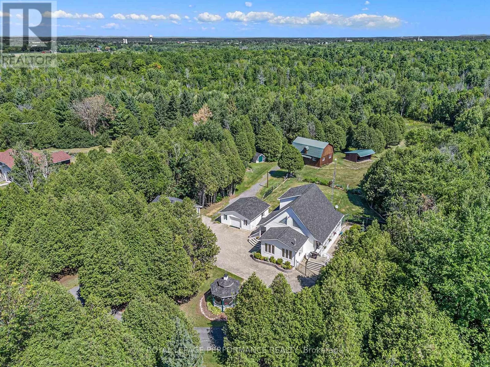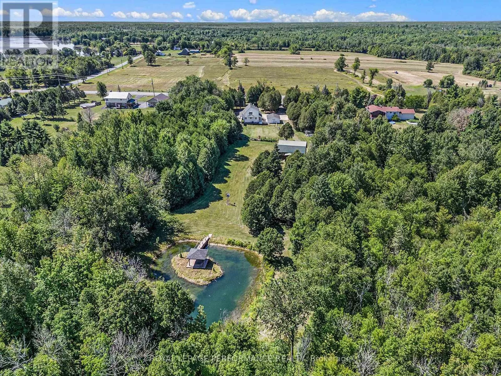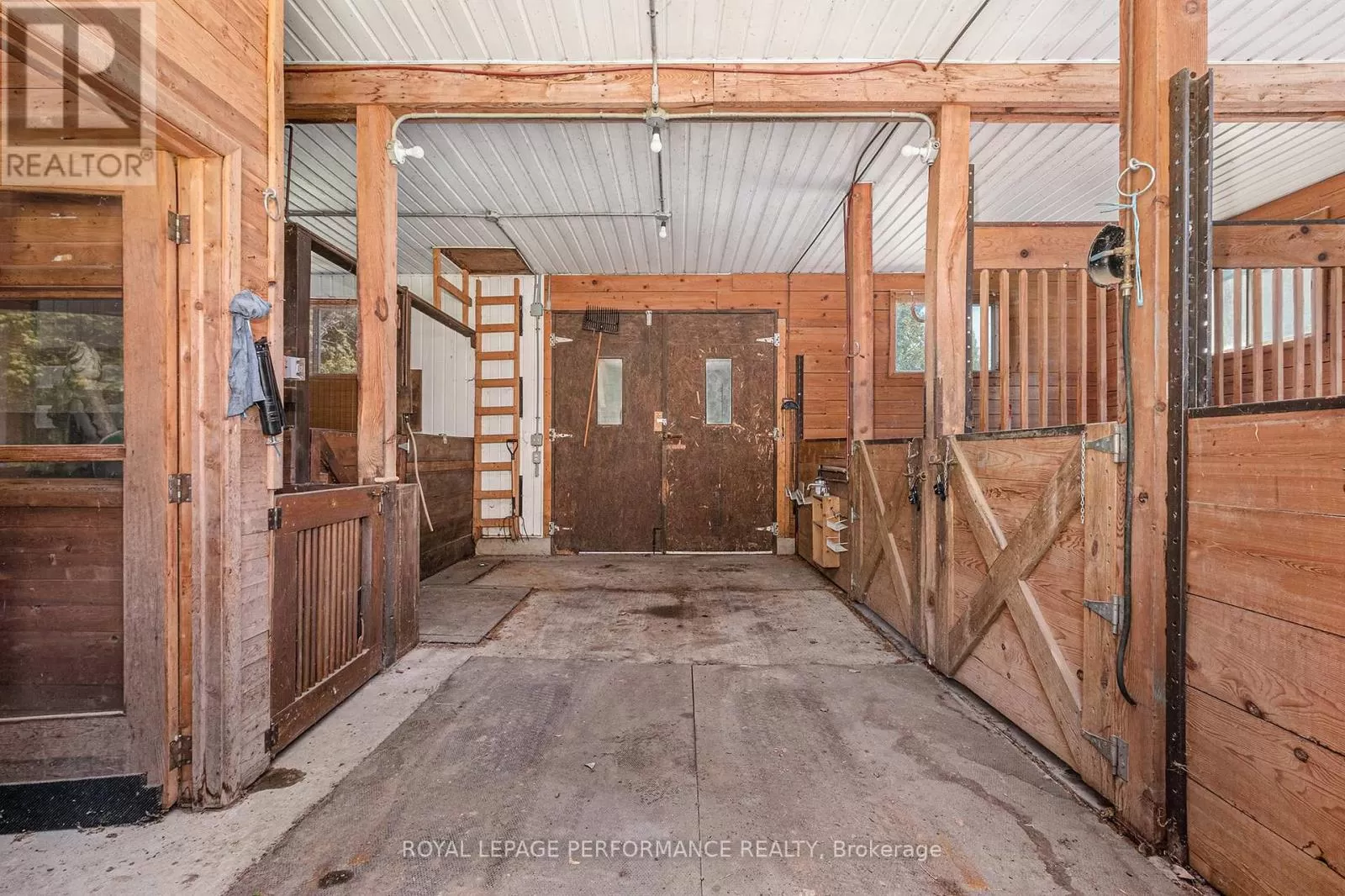 From Alexandria, West on Hwy 43 to Kenyon Dam Road, South on Kenyon Dam Road approximately 1 mile to property. Charming chalet style 2 bedroom home on 5.69 acres. A perfect blend of privacy and peaceful retreat for you and your beloved animals. This incredible property with it's many out buildings offers numerous possibilities. Two detached garages. (One currently being used as a dog kennel-rear with access to a fenced dog yard). The other double garage is a perfect spot for your vehicles and other toys. The 4 stall barn is well equipped with a tack room water lines. The home boasts recent updates including the gourmet kitchen with granite counters, backsplash, stainless appliances and breakfast island. Cathedral ceilings lend to the spacious and bright atmosphere. Living room with access to the covered porch overlooking the rock pond. A dining room, suitable for family gatherings is showered by plenty of natural light. Second floor loft features a home office space. A primary bedroom with a updated 3pc bathroom, walk in closet and a balcony overlooking your homestead. The finished basement includes a rec room, storage, utility rooms and potential for a 3rd bedroom . Sip your morning coffee from the screened in gazebo out front. Or take a stroll and cross a bridge over a private pond to the covered picnic shelter. Other notables: Roof shingles 2024. (All other outbuildings 2020). Generac Generator 2023, interlocking patio/ driveway. Shopping, hospital and other amenities in the nearby towns of Alexandria/Lancaster. Quick commute to Cornwall/Montreal. As per Seller direction allow 24 hour irrevocable on offers. Schedule your private tour today! (id:27476)