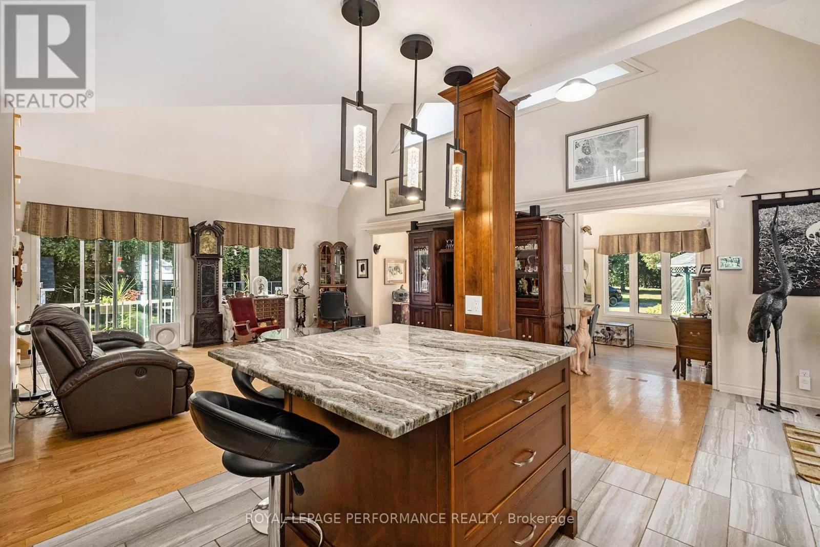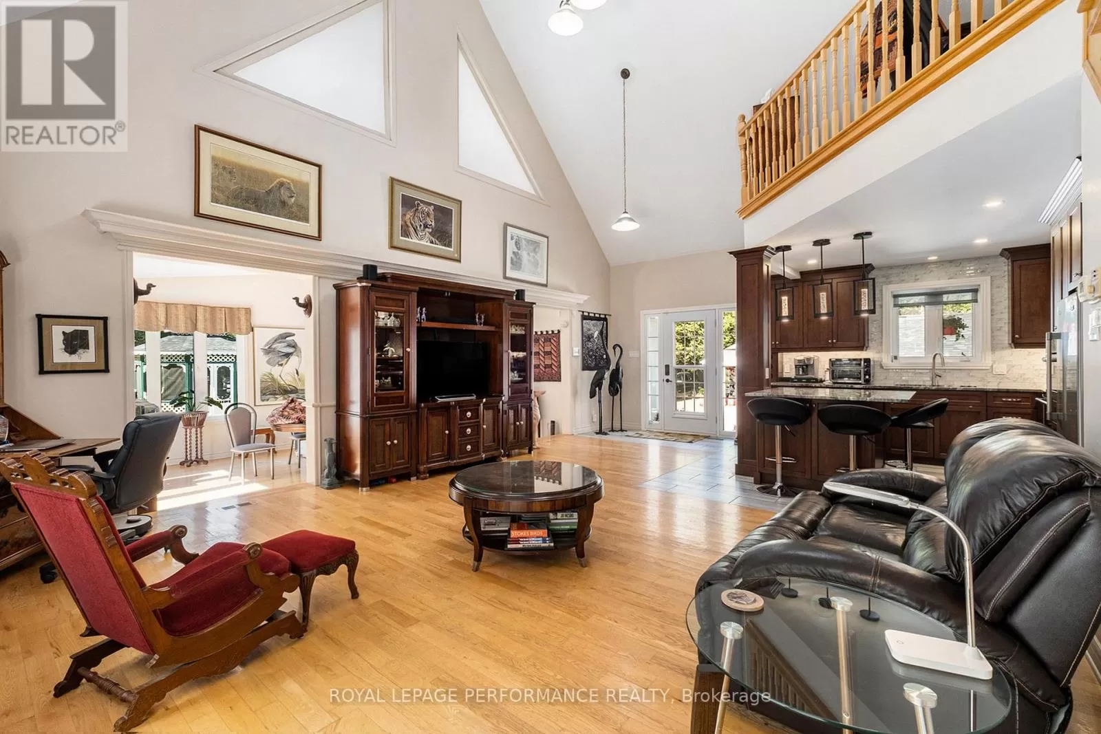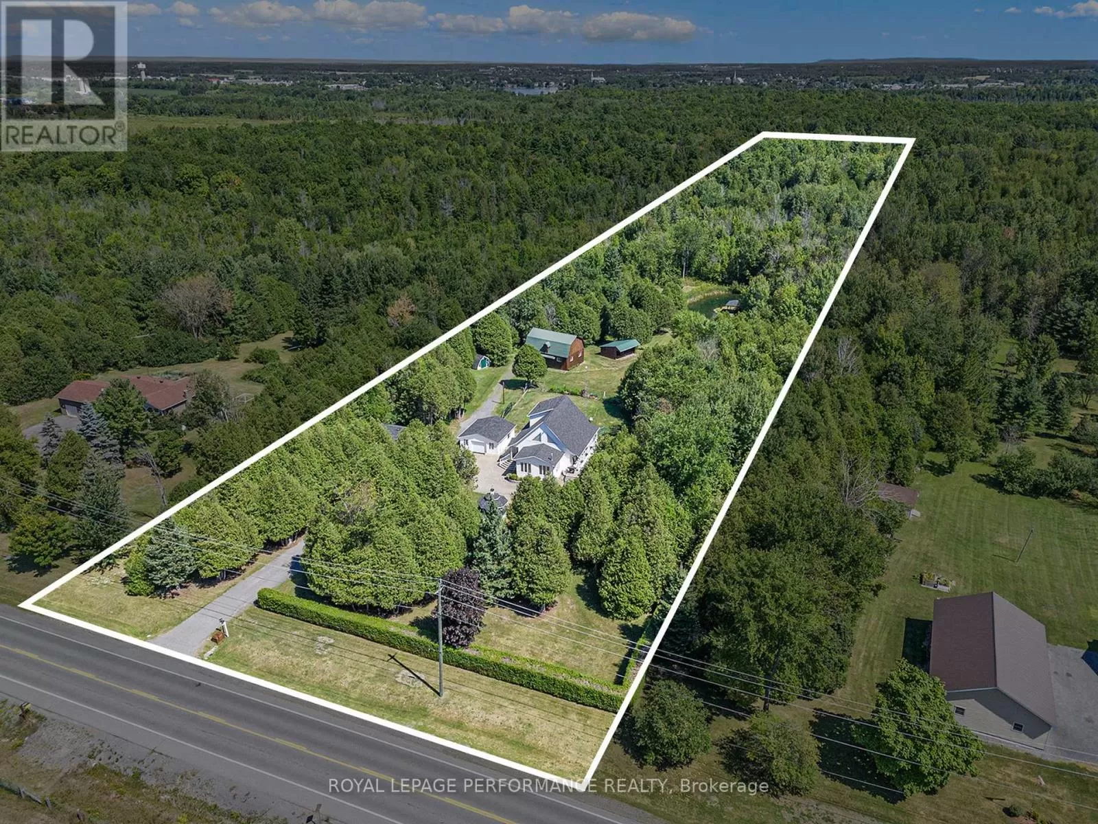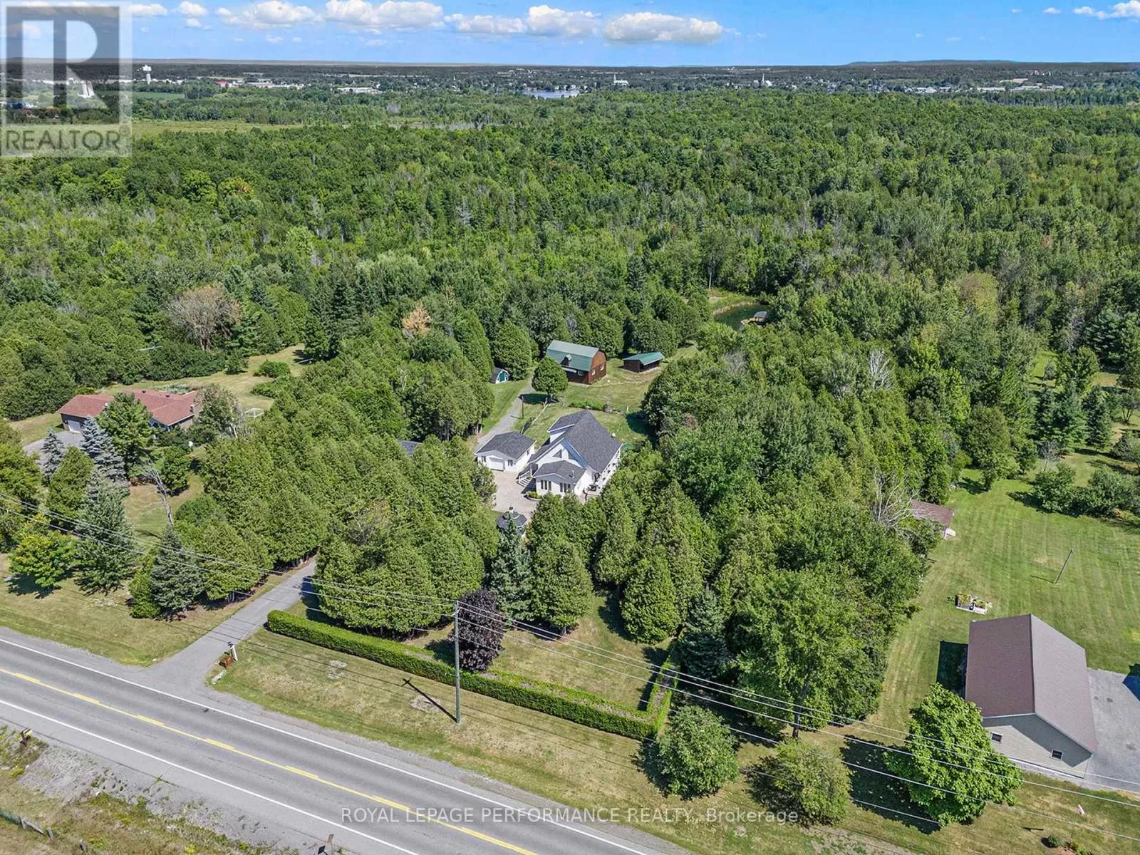 From Alexandria, West on Hwy 43 to Kenyon Dam Road, South on Kenyon Dam Road approximately 1 mile to property. Charming chalet style 2 bedroom home on 5.69 acres. A perfect blend of privacy and peaceful retreat for you and your beloved animals. This incredible property with it's many out buildings offers numerous possibilities. Two detached garages. (One currently being used as a dog kennel-rear with access to a fenced dog yard). The other double garage is a perfect spot for your vehicles and other toys. The 4 stall barn is well equipped with a tack room water lines. The home boasts recent updates including the gourmet kitchen with granite counters, backsplash, stainless appliances and breakfast island. Cathedral ceilings lend to the spacious and bright atmosphere. Living room with access to the covered porch overlooking the rock pond. A dining room, suitable for family gatherings is showered by plenty of natural light. Second floor loft features a home office space. A primary bedroom with a updated 3pc bathroom, walk in closet and a balcony overlooking your homestead. The finished basement includes a rec room, storage, utility rooms and potential for a 3rd bedroom . Sip your morning coffee from the screened in gazebo out front. Or take a stroll and cross a bridge over a private pond to the covered picnic shelter. Other notables: Roof shingles 2024. (All other outbuildings 2020). Generac Generator 2023, interlocking patio/ driveway. Shopping, hospital and other amenities in the nearby towns of Alexandria/Lancaster. Quick commute to Cornwall/Montreal. As per Seller direction allow 24 hour irrevocable on offers. Schedule your private tour today! (id:27476)