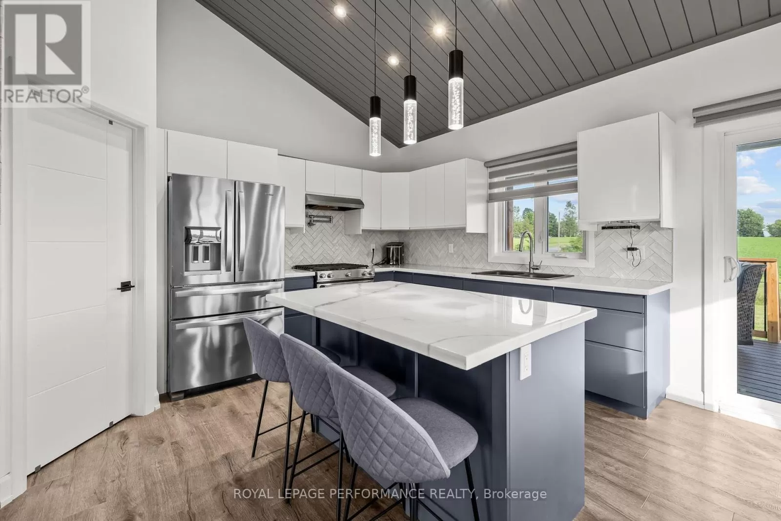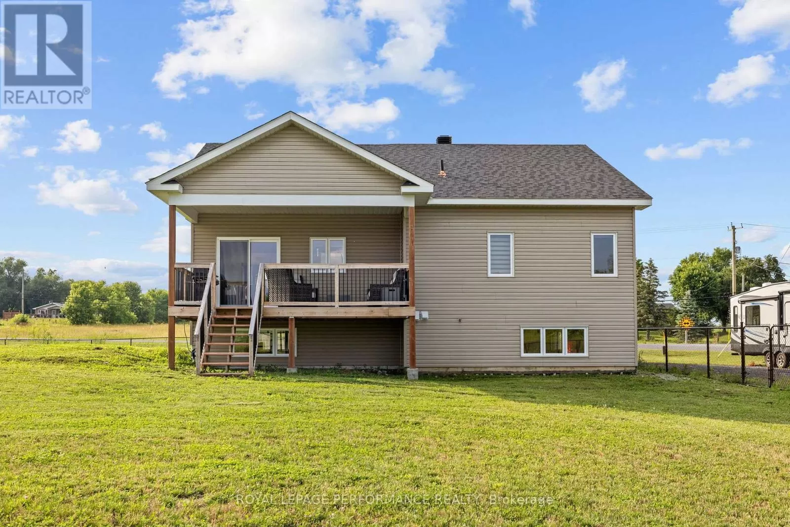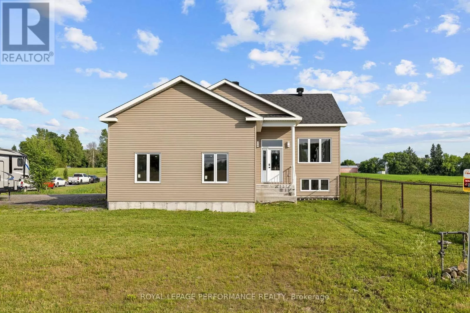 Cross Streets: Bureau Rd/County Rd 10. ** Directions: Exit Hwy 417 at Exit 88 (CR7/Casselman). Turn right onto County Rd 7 (Glen Robertson Rd).Continue ~10km, then left onto County Rd 10. Drive ~6km, then turn left on Bureau Rd.#3348will be on your right. Welcome to 3348 Bureau Road, Alexandria - Country living at its finest! This stunning custom-built bungalow, completed in2023, sits on a spacious 0.88-acre lot with a fully fenced, lush green backyard -perfect for the growing families, and entertaining. Step inside to soaring cathedral ceilings and a cozy fireplace that anchor the open-concept living, dining, and kitchen area. The kitchen is a chefs dream, featuring countertops, a large island, ample cabinetry, and a walk-in pantry. The main floor offers 2generously sized bedrooms and 2 full bathrooms, including a luxurious primary suite complete with dual walk-in closets and a spa-like ensuite with absolutely stunning finishes. The unfinished basement features a plumbing rough-in and direct separate access - ideal for creating an in-law suite, or your own custom space. Enjoy the oversized garage, high-end finishes throughout, and a covered rear deck that opens to a private, expansive backyard. Don't miss your chance to own this exceptional home that combines modern luxury with peaceful country charm! (id:27476)