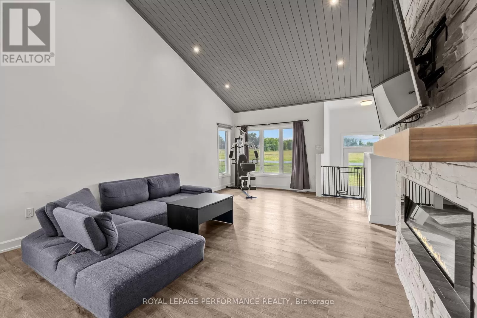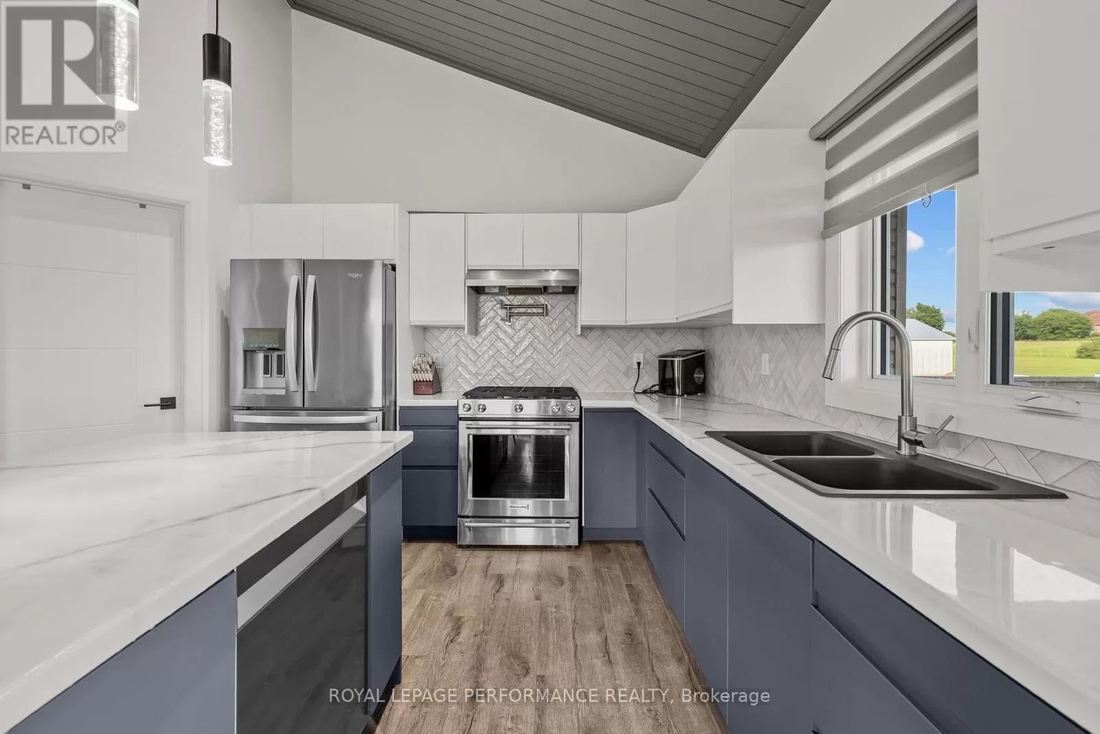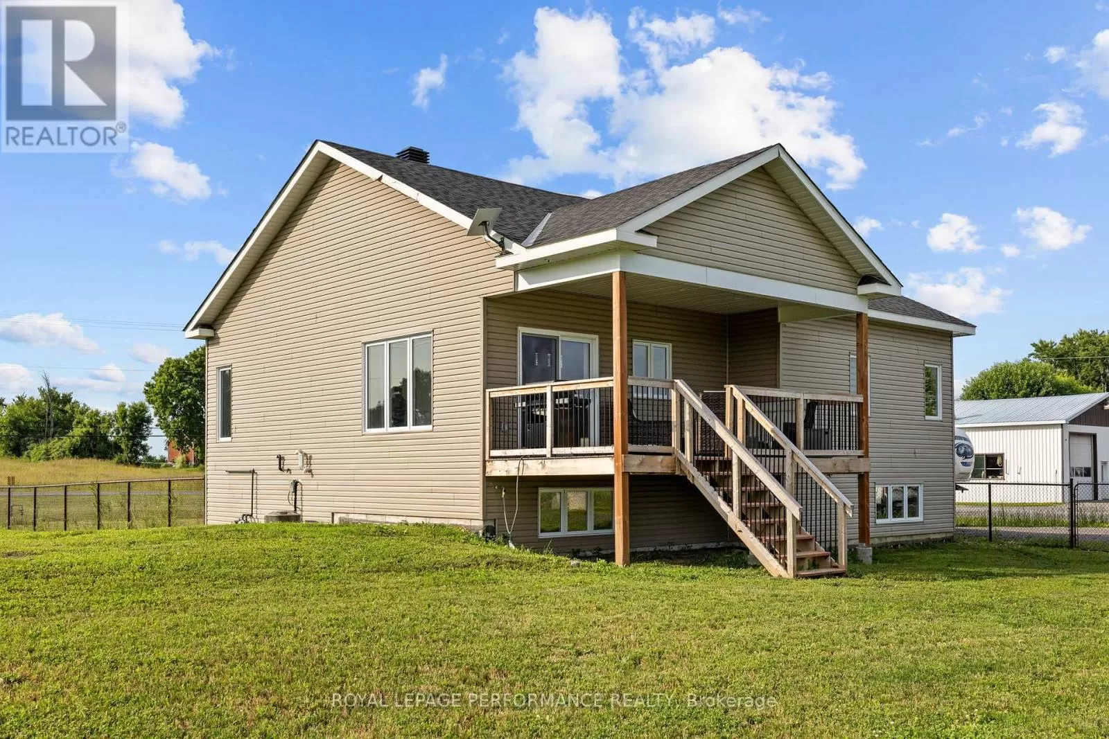 Cross Streets: Bureau Rd/County Rd 10. ** Directions: Exit Hwy 417 at Exit 88 (CR7/Casselman). Turn right onto County Rd 7 (Glen Robertson Rd).Continue ~10km, then left onto County Rd 10. Drive ~6km, then turn left on Bureau Rd.#3348will be on your right. Welcome to 3348 Bureau Road, Alexandria - Country living at its finest! This stunning custom-built bungalow, completed in2023, sits on a spacious 0.88-acre lot with a fully fenced, lush green backyard -perfect for the growing families, and entertaining. Step inside to soaring cathedral ceilings and a cozy fireplace that anchor the open-concept living, dining, and kitchen area. The kitchen is a chefs dream, featuring countertops, a large island, ample cabinetry, and a walk-in pantry. The main floor offers 2generously sized bedrooms and 2 full bathrooms, including a luxurious primary suite complete with dual walk-in closets and a spa-like ensuite with absolutely stunning finishes. The unfinished basement features a plumbing rough-in and direct separate access - ideal for creating an in-law suite, or your own custom space. Enjoy the oversized garage, high-end finishes throughout, and a covered rear deck that opens to a private, expansive backyard. Don't miss your chance to own this exceptional home that combines modern luxury with peaceful country charm! (id:27476)