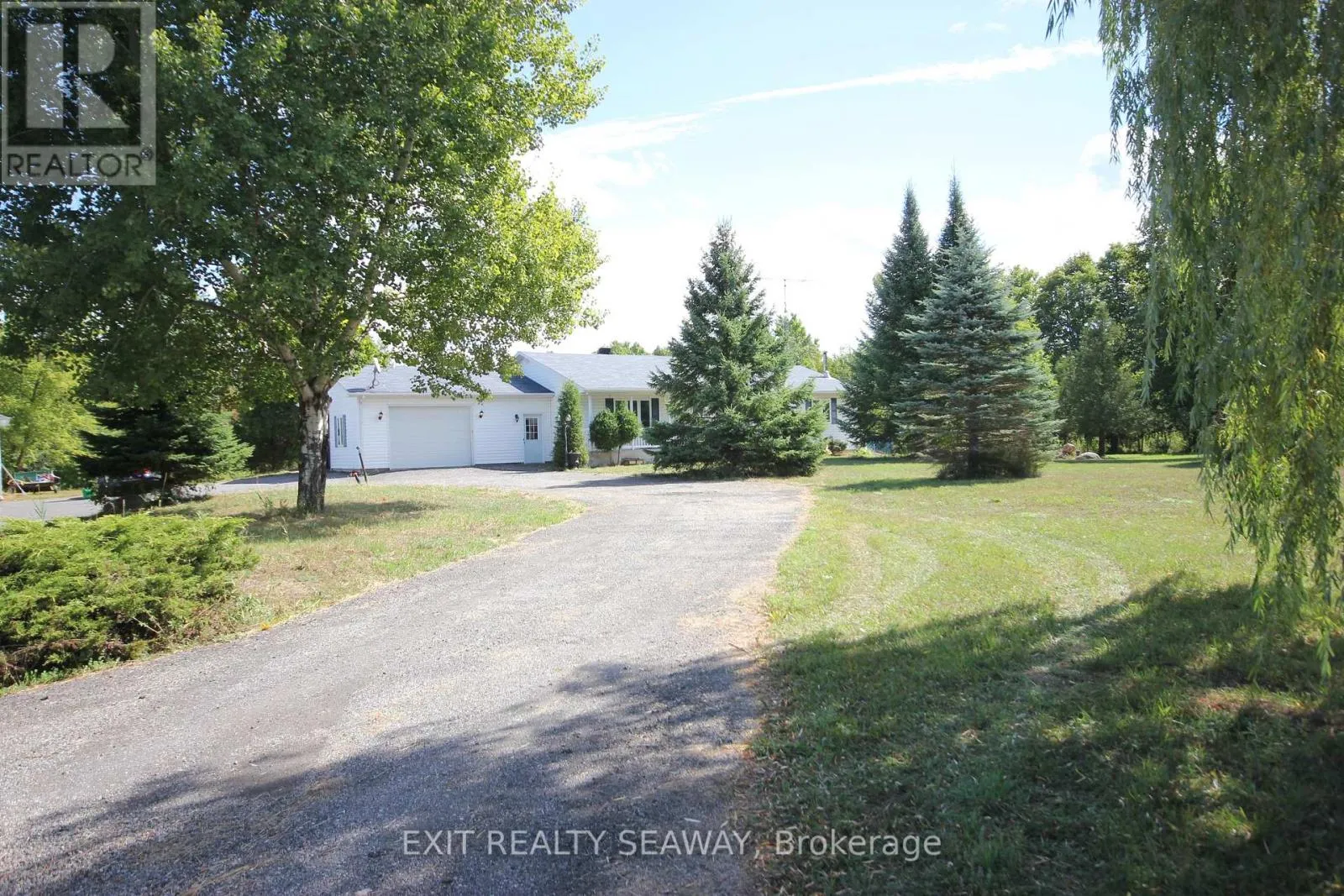 Cross Streets: Concession Road 3. ** Directions: Go west on County Road 43 from Alexandria. to Loch Garry Road. Turn south to subject property. Welcome to this well-maintained bungalow with an attached double garage, nestled on a scenic 8-acre parcel offering both privacy and functionality. Step into a bright and spacious living room that flows into the eat-in kitchen, complete with a central island and terrace doors leading to a back deck ideal for enjoying the outdoors. This 3+2 bedroom home has been thoughtfully designed for accessibility, featuring hallways at least 42 inches wide, 36-inch doors, and a fully wheelchair-accessible 4-piece main bathroom with a roll-in shower and wheelchair-friendly sink. The lower level adds extra living space with two additional bedrooms, a 3-piece bath, and a cozy wood stove. A second wood stove warms the detached shop, while the home itself is heated with efficient forced-air propane. Carpet-free throughout, this home blends comfort with convenience. The attached garage includes a ramp for easy entry, making the property well-suited for a wide range of needs. Outdoors, enjoy the abundance of available firewood, a charming playhouse for children, and plenty of room for recreation or hobbies. This unique property combines thoughtful design, practical features, and a peaceful setting, ready to welcome its next owners. (id:27476)