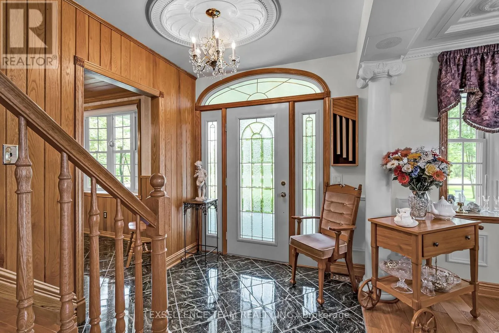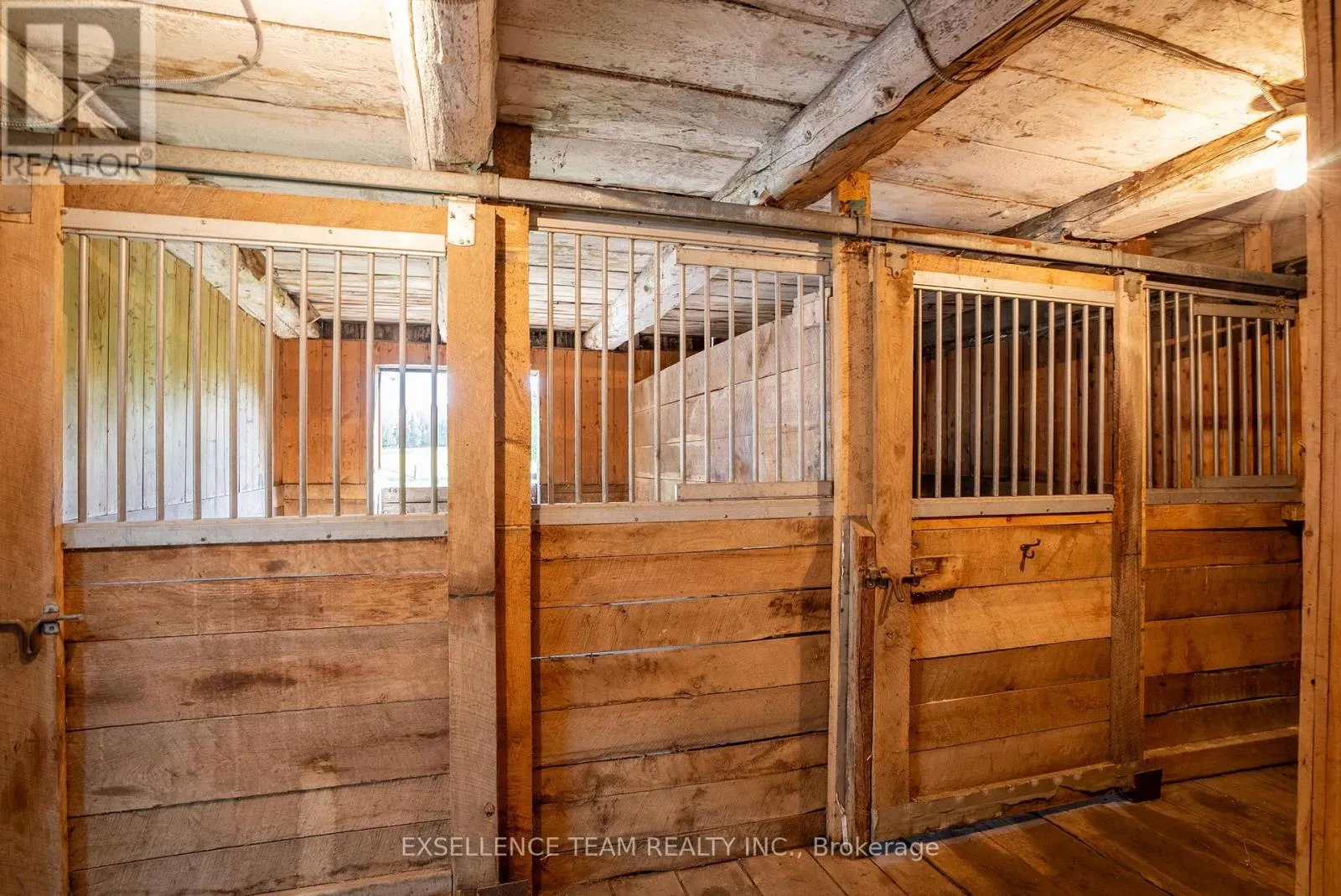 Cross Streets: Hwy 43 and County Rd 20. ** Directions: South from 417 on Maxville St Isidore turn off Thru Maxville and Just as you leave Dominionville on your Right, or North from Hwy 43 on County 20 Just as you get into Dominionville on the left. This 34 acres custom home can only be described as elegant. From the Gorgeous Family Room that features distinctive ceilings imported from Belgium and 3 inch Hickory Flooring. Patio doors that lead out to a covered porch, that flows into a beautiful landscaped backyard accented with a Gazebo and Stone waterfall. Great for family gatherings, or weddings. The Gourmet kitchen boasting beautiful granite counter tops, lots of cupboard and stainless steel appliances. Formal Dinning room that features distinctive ceilings that were imported from Italy. This home features 4 bedroom, 4 bathroom. Master Bedroom has ensuite bathroom and walkout balcony. Lower level features a kitchen, bathroom and laundry room that could be used as an in-law suite or office space. Newly refurbished Barn all set up for horses complete with 4 box stall, corral, pasture, hay field, storage space. A wood area complete with trails for nature walks, hunting or 4 wheeling. No power no problem with 10,000 Watt Generac. Flooring: Vinyl, Hardwood, Ceramic. (id:27476)