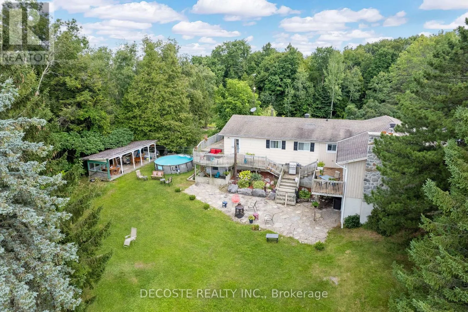 From 401 take Lancaster exit then North on Hwy 34 through the Town of Alexandria then turning right on to Power Dam Road. Power Dam Road becomes McCormick Road. House is on the left hand side. Are you looking for a spacious home? 4,500+ sqft of living space in this wonderful bungalow! Hobby Farm property on 5+ acres just a few minutes from Alexandria and train station. Elegantly renovated spacious home featuring beautiful kitchen w/granite counters and island, plenty of cabinet space, stainless steel appliances. Entertain your guests in the front room flooded with natural light or the large living room w/wood burning fireplace and patio doors leading to the private rear deck. There are 3 bedrooms completing the main level including the master bedroom w/ walk-in closet and spa-like ensuite bathroom w/ soak-in tub, standup shower & double sink. The walkout basement is perfect for the growing family with a spacious main room plus a separate wing with bedroom + office, full bath and sitting area; could be an in law suite. Outside enjoy the landscaped gardens and lawns, private wood w/trails, double detached garage, private patio area for outdoor entertaining. (id:27476)