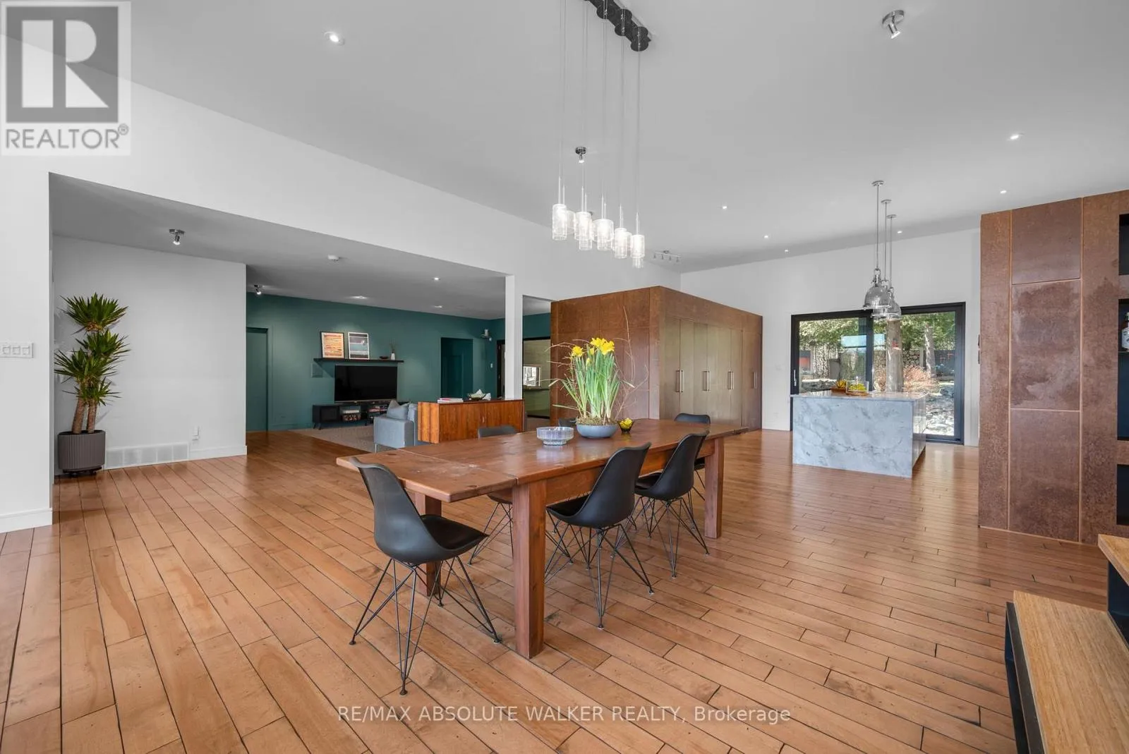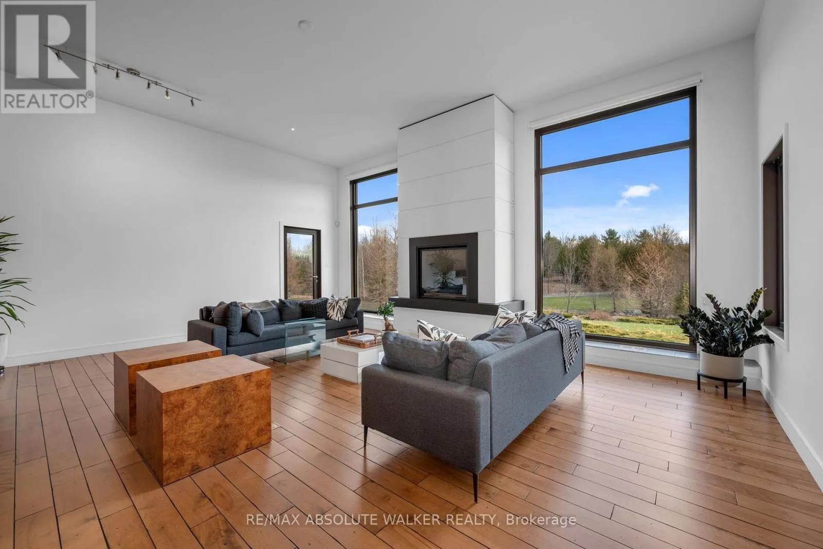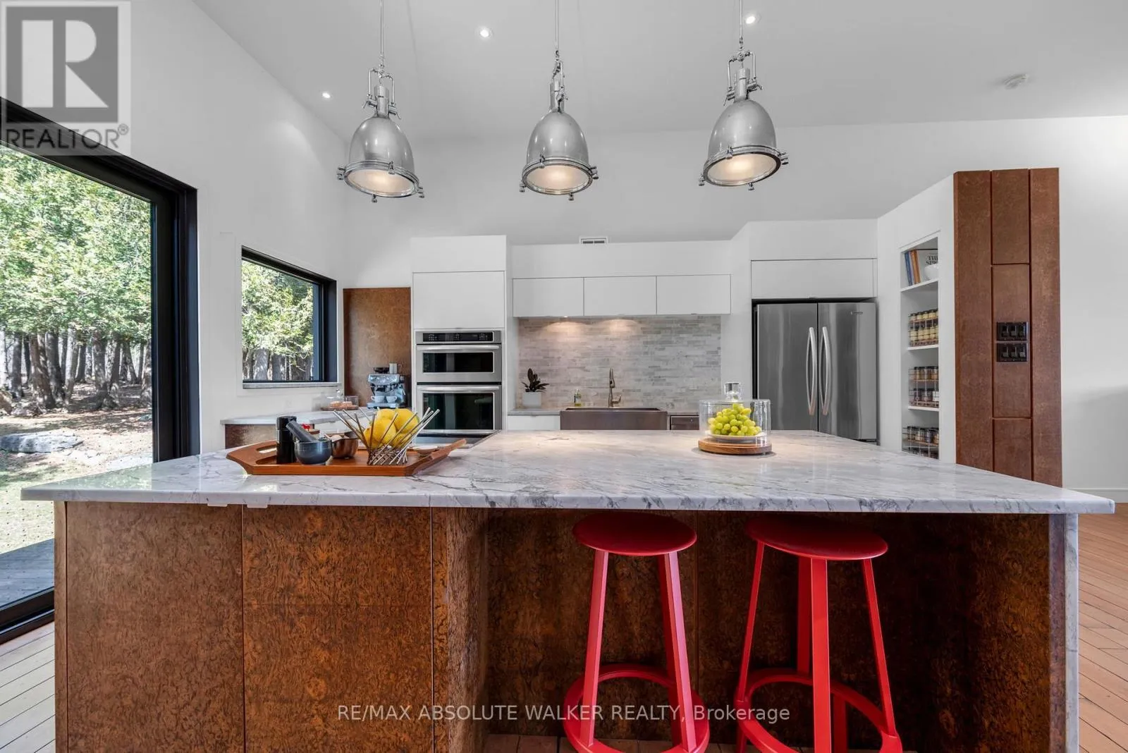 Highway 34 west on Kenyon Concession Road approx 4.5 miles Welcome to 19421 Kenyon Concession 1, an architecturally distinctive home built in 2013 that seamlessly blends modern craftsmanship with natural beauty. Set on 75 breathtaking acres of forests, ponds, and private trails, this property offers unparalleled privacy and tranquility perfect as a primary residence, second home, or commercial retreat. The custom-built home features four spacious bedrooms and four bathrooms. Highlights include a huge walk-in pantry with an extra refrigerator, and an office overlooking the impressive rec room, ideal for productivity. The primary bedroom suite features two luxurious ensuite bathrooms, one with a soaker tub and the other with a walk-in shower, and two walk-in closets. A second bedroom, perfect for guests or teens, includes a walk-out deck with lovely views. The versatile lower level includes an in-law suite, an additional bedroom, hobby room, laundry room, and TV space. A screened-in porch lets you enjoy nature while keeping out bugs, and a hot tub hookup is already installed. Built with exotic woods and commercial-grade finishes, this home includes energy-efficient features such as geothermal heating, a backup generator, and solar potential for year-round comfort. Open-concept living areas are filled with natural light, creating an inviting atmosphere for relaxation and entertaining. Starlink is installed and the property is high-speed internet ready, making it ideal for modern remote work. A large outbuilding provides space for storage or creative projects, and the climate is ideal for hobby farming. Extensive trails lead to Loch Garry, a 900-acre recreational lake, with diverse habitats supporting rich wildlife, making this property a true haven for nature lovers. With a meticulously designed interior and stunning natural surroundings, this is a rare opportunity to experience luxury, privacy, and ecological harmony in one of Ontarios most picturesque regions. Don't miss your chance to own this exceptional home! (id:27476)