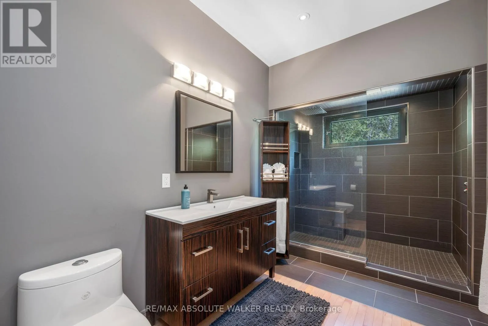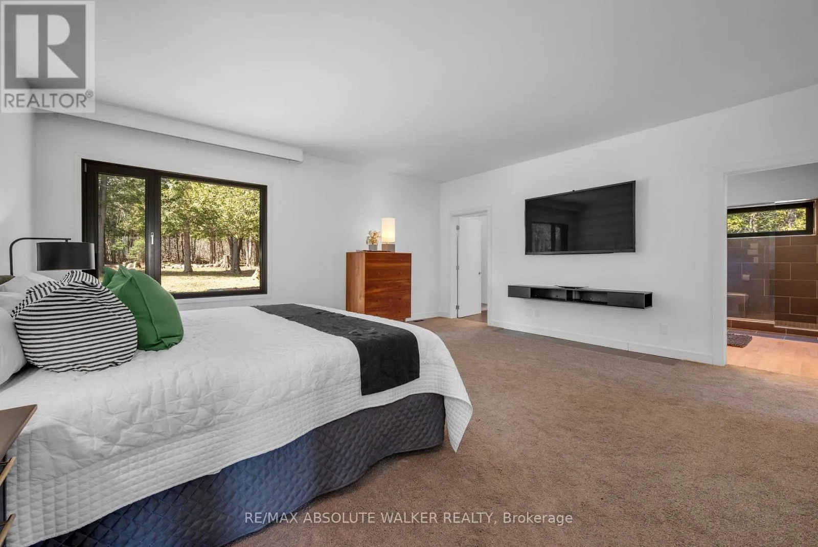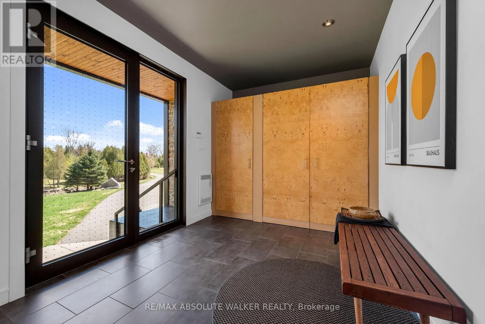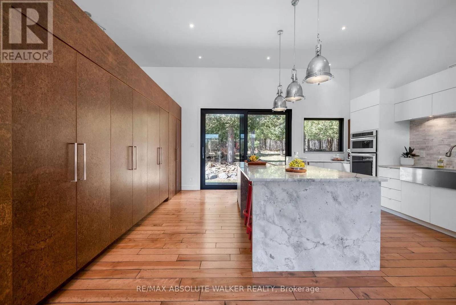 Highway 34 west on Kenyon Concession Road approx 4.5 miles Welcome to 19421 Kenyon Concession 1, an architecturally distinctive home built in 2013 that seamlessly blends modern craftsmanship with natural beauty. Set on 75 breathtaking acres of forests, ponds, and private trails, this property offers unparalleled privacy and tranquility perfect as a primary residence, second home, or commercial retreat. The custom-built home features four spacious bedrooms and four bathrooms. Highlights include a huge walk-in pantry with an extra refrigerator, and an office overlooking the impressive rec room, ideal for productivity. The primary bedroom suite features two luxurious ensuite bathrooms, one with a soaker tub and the other with a walk-in shower, and two walk-in closets. A second bedroom, perfect for guests or teens, includes a walk-out deck with lovely views. The versatile lower level includes an in-law suite, an additional bedroom, hobby room, laundry room, and TV space. A screened-in porch lets you enjoy nature while keeping out bugs, and a hot tub hookup is already installed. Built with exotic woods and commercial-grade finishes, this home includes energy-efficient features such as geothermal heating, a backup generator, and solar potential for year-round comfort. Open-concept living areas are filled with natural light, creating an inviting atmosphere for relaxation and entertaining. Starlink is installed and the property is high-speed internet ready, making it ideal for modern remote work. A large outbuilding provides space for storage or creative projects, and the climate is ideal for hobby farming. Extensive trails lead to Loch Garry, a 900-acre recreational lake, with diverse habitats supporting rich wildlife, making this property a true haven for nature lovers. With a meticulously designed interior and stunning natural surroundings, this is a rare opportunity to experience luxury, privacy, and ecological harmony in one of Ontarios most picturesque regions. Don't miss your chance to own this exceptional home! (id:27476)