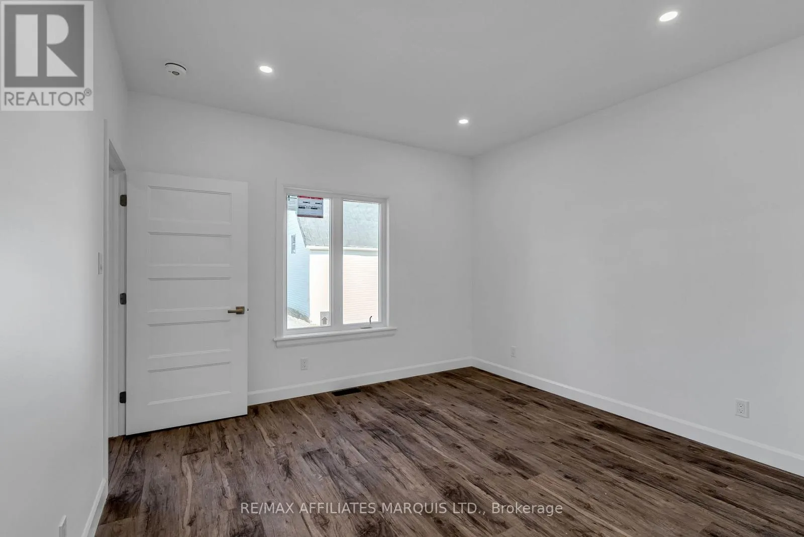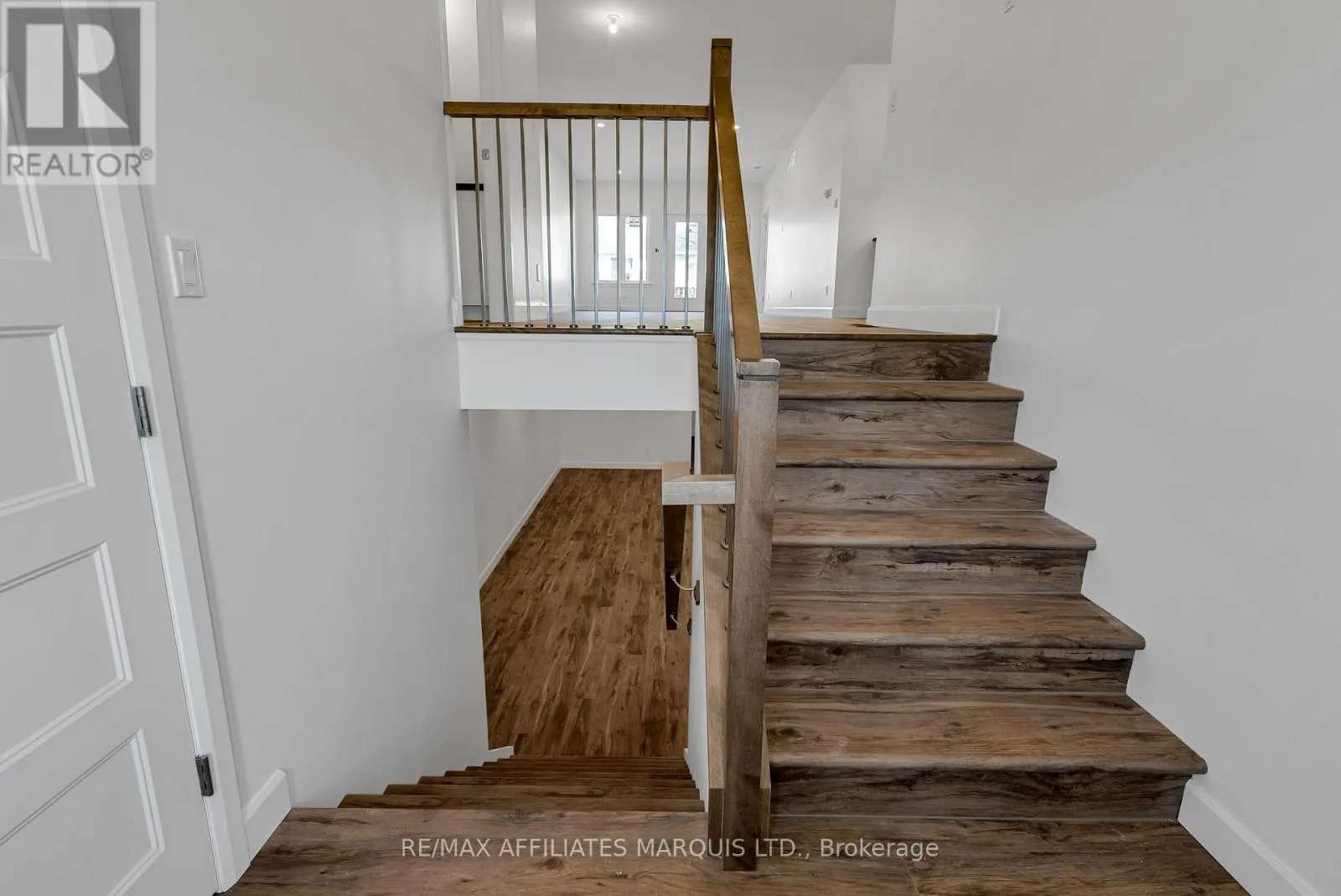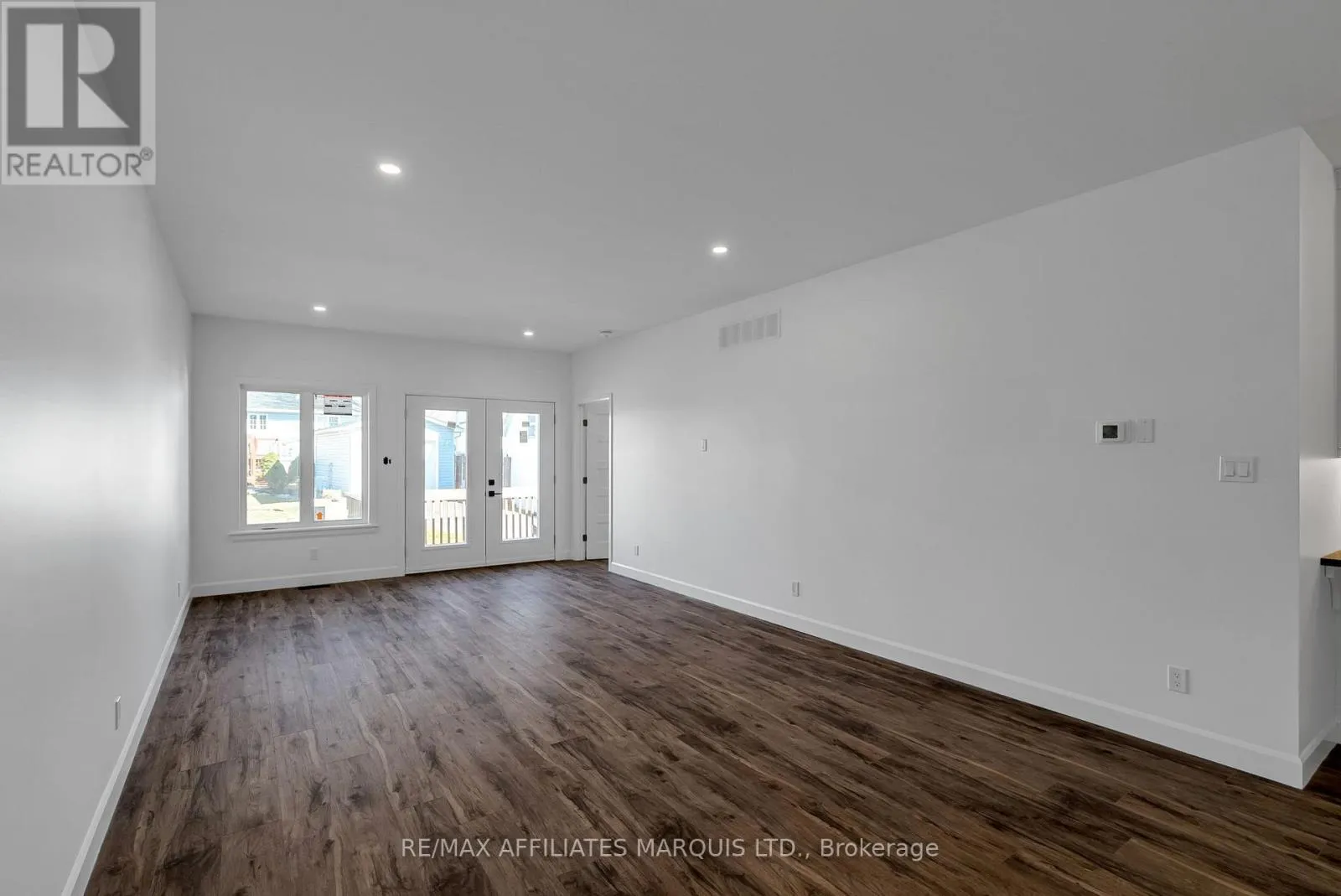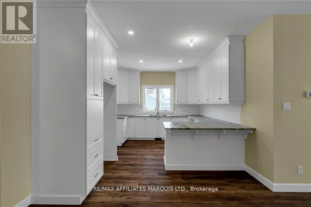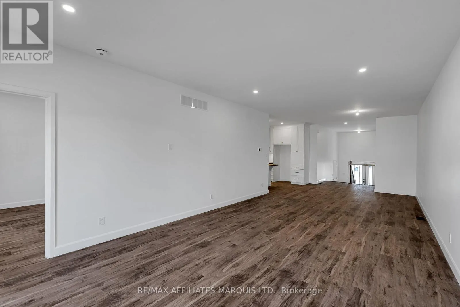 Cross Streets: KINCARDINE AND DOMINIION. ** Directions: From Main Street go East on Kincardine then North on Dominion. NEWLY BUILT and ready for immediate possession. This 3-bedroom townhome has 2100 square feet of living space and an attached garage. Located in the North end of Alexandria it is within walking distance to Glengarry District & Le Relais High Schools, arena, & curling club. A seamless flow in the open concept main living area boasts natural lighting and hardwood throughout. Patio doors off of the living room give you access to a nice sized back deck. A peninsula styled kitchen features shaker styled cabinetry and quartzite countertops. The primary bedroom located on the main floor features a 5pc ensuite and large closet. Two additional bedrooms, laundry room, large rec-room with plenty of storage space round out the fully finished lower level. Flooring: Ceramic, Flooring: Laminate. PLEASE NOTE THE KITCHEN IS NOT THAT COLOUR. (id:27476)