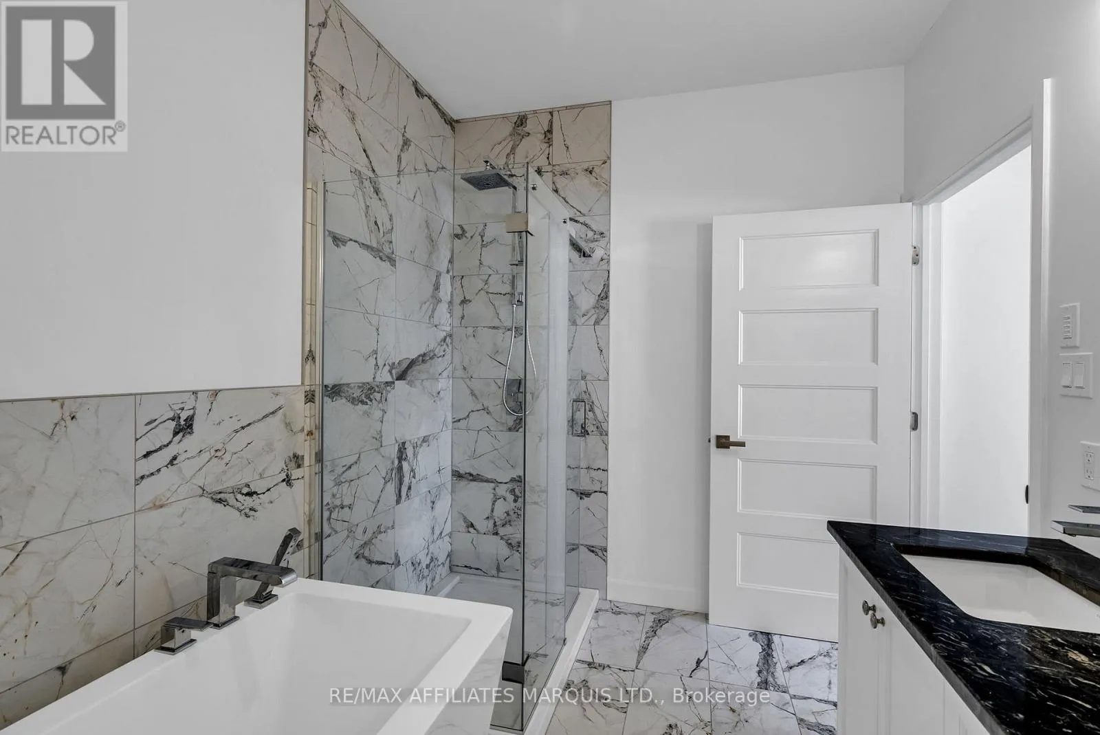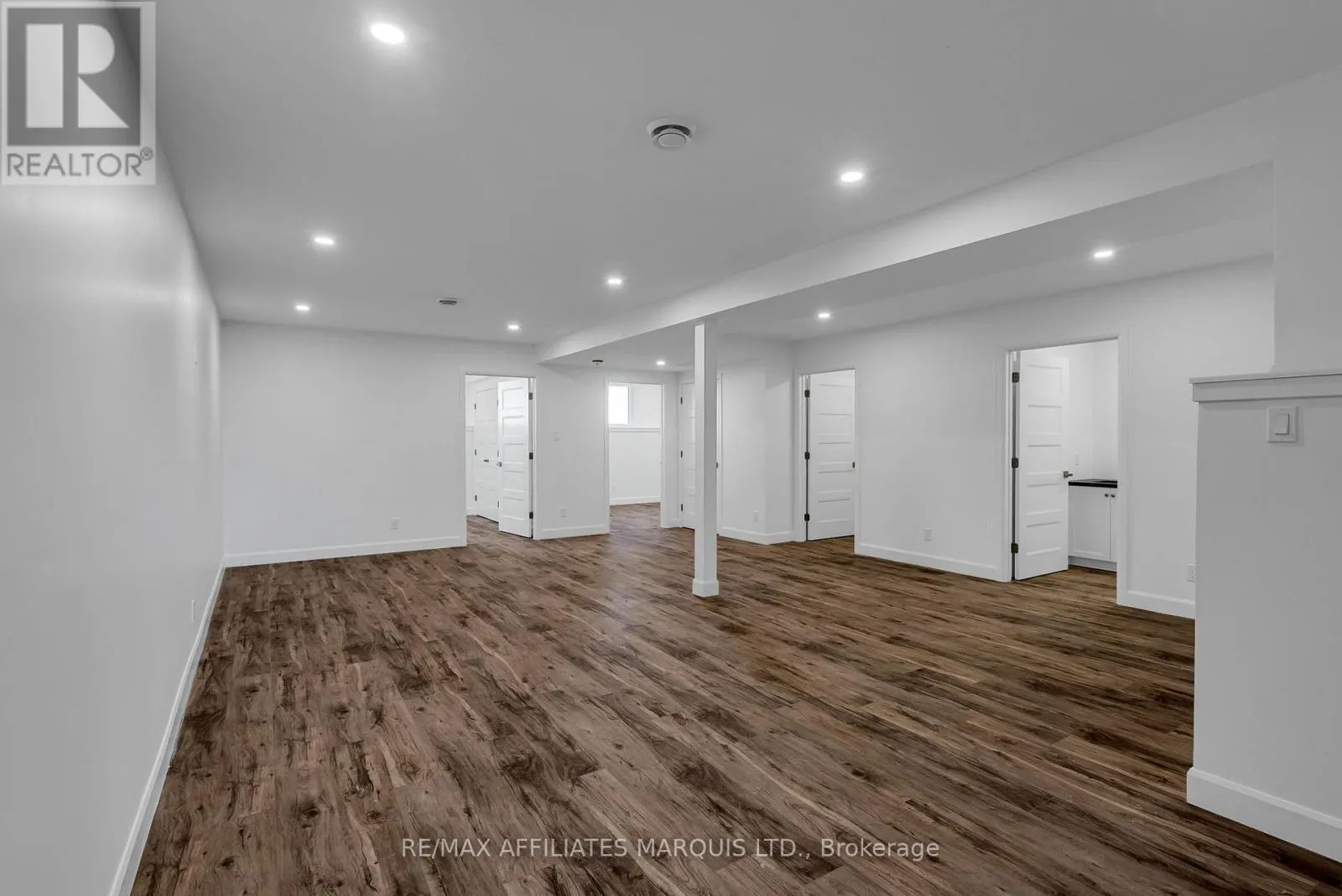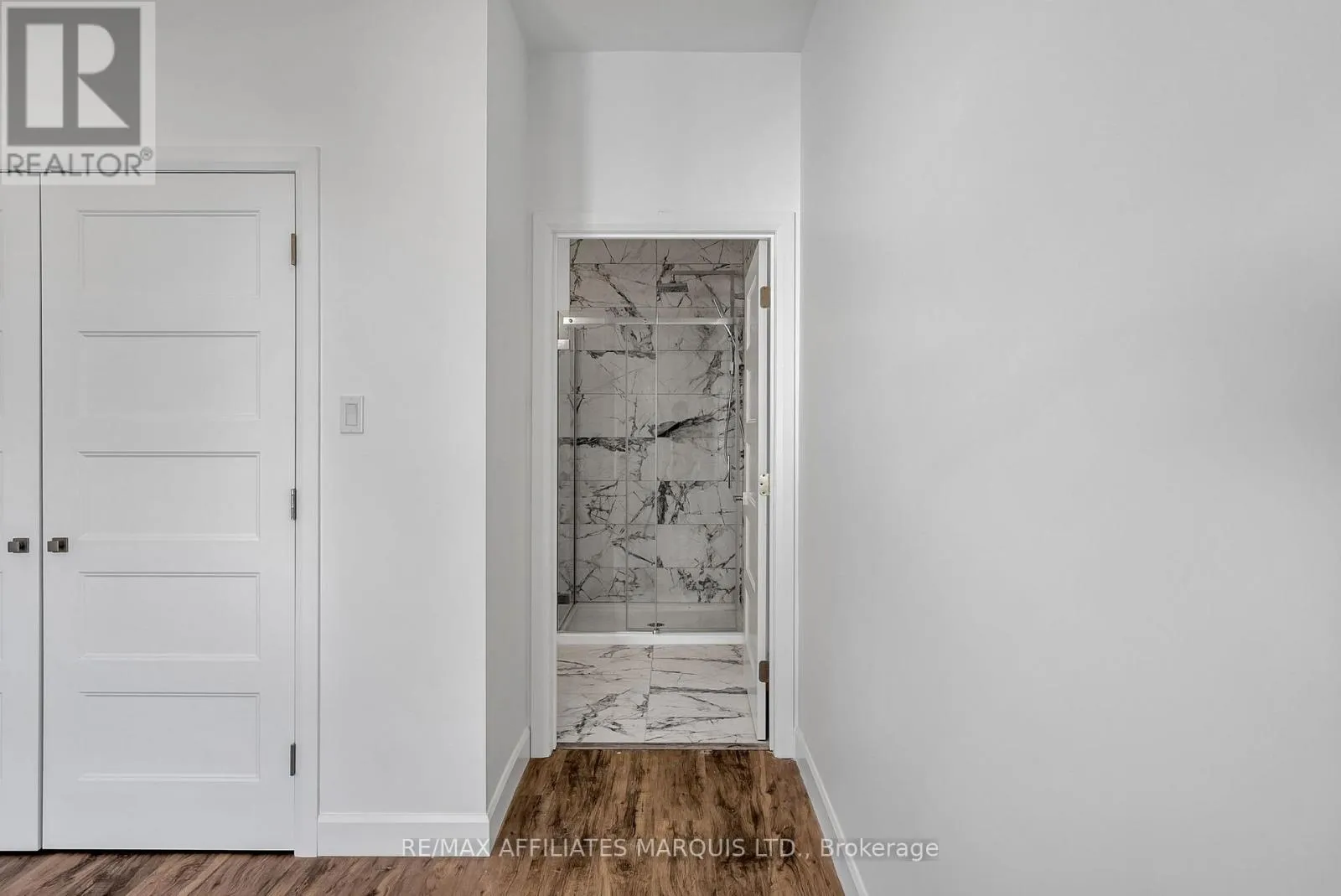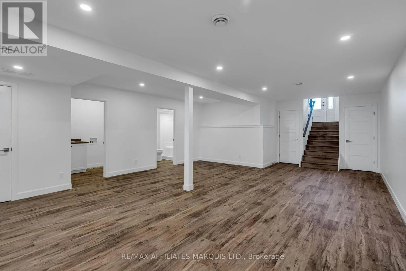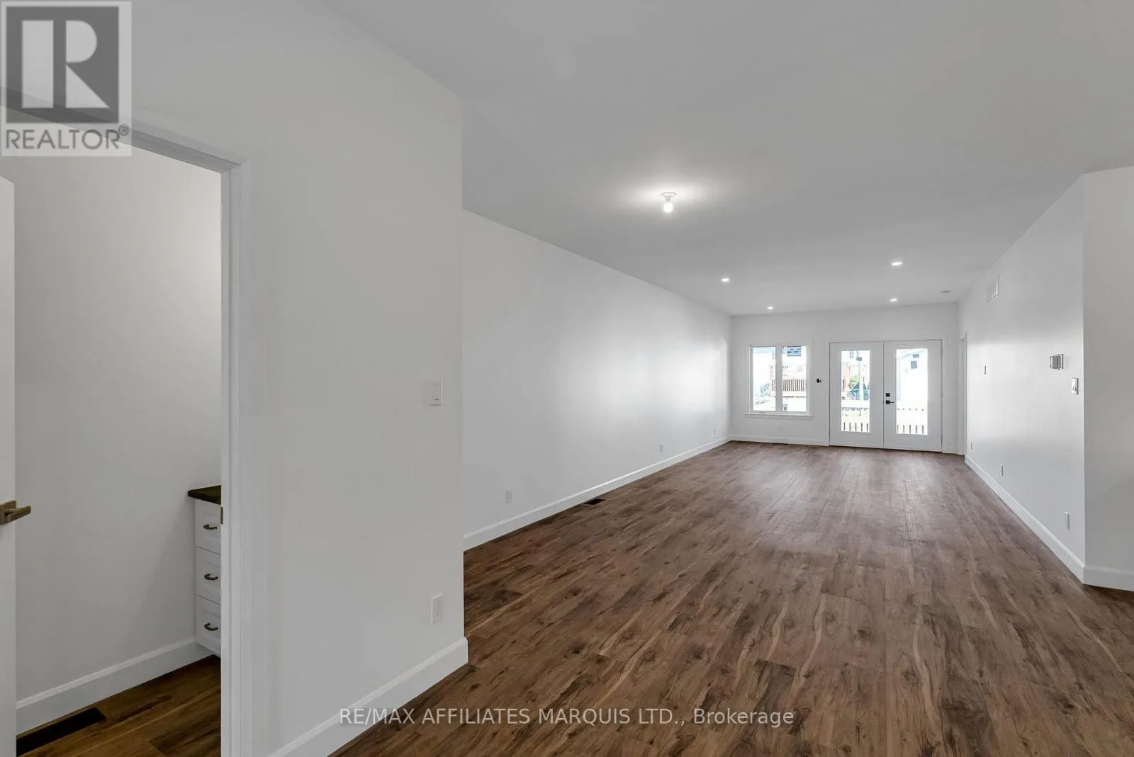 Cross Streets: KINCARDINE AND DOMINIION. ** Directions: From Main Street go East on Kincardine then North on Dominion. NEWLY BUILT and ready for immediate possession. This 3-bedroom townhome has 2100 square feet of living space and an attached garage. Located in the North end of Alexandria it is within walking distance to Glengarry District & Le Relais High Schools, arena, & curling club. A seamless flow in the open concept main living area boasts natural lighting and hardwood throughout. Patio doors off of the living room give you access to a nice sized back deck. A peninsula styled kitchen features shaker styled cabinetry and quartzite countertops. The primary bedroom located on the main floor features a 5pc ensuite and large closet. Two additional bedrooms, laundry room, large rec-room with plenty of storage space round out the fully finished lower level. Flooring: Ceramic, Flooring: Laminate. PLEASE NOTE THE KITCHEN IS NOT THAT COLOUR. (id:27476)