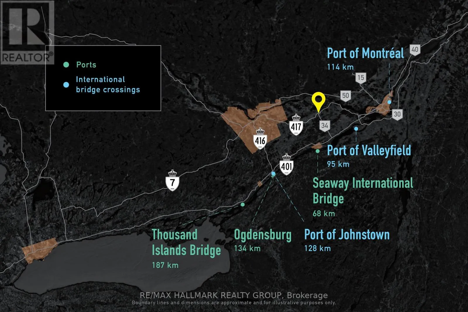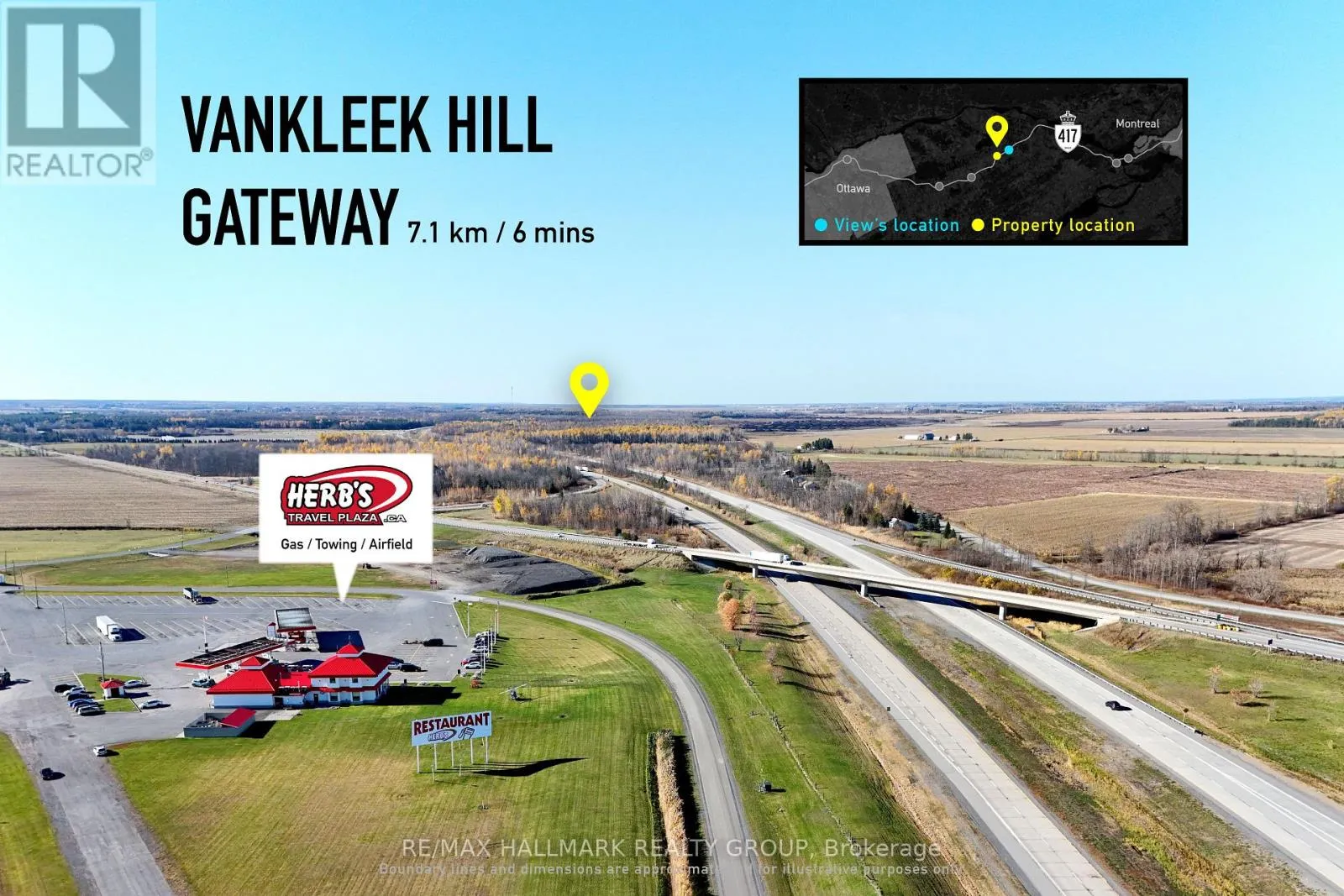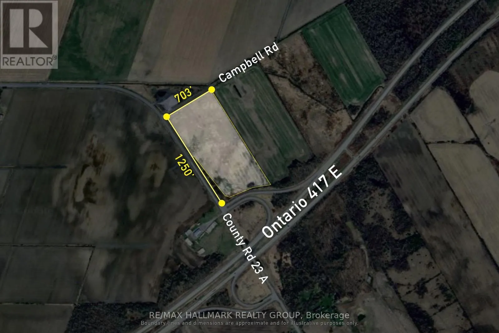 Cross Streets: County Rd 34. ** Directions: Head southwest on Trans - Canada Hwy/ON-417 W. Take the Regional Road 23 exit toward Chemin McCrimmon Rd/St Bernardin. Turn left onto Stormont, Dundas, And Glengarry County Rd 23a/County Rd 23A. Located at 00 County Rd 23A in Dunvegan (North Glengarry), this 20-acre industrial parcel is fully cleared raw land with broad frontage and direct exposure abutting the Hwy 417 off-ramp-delivering exceptional visibility and immediate access to the Ottawa-Montréal trunk. A clean, level canvas for yard-intensive operations, trailer staging, and phased build-to-suit shop development (subject to approvals), offering regional connectivity without metro overhead. Ideal for contractors, logistics operators, and service-industrial users seeking scalable outdoor capacity with highway-front profile. (id:27476)