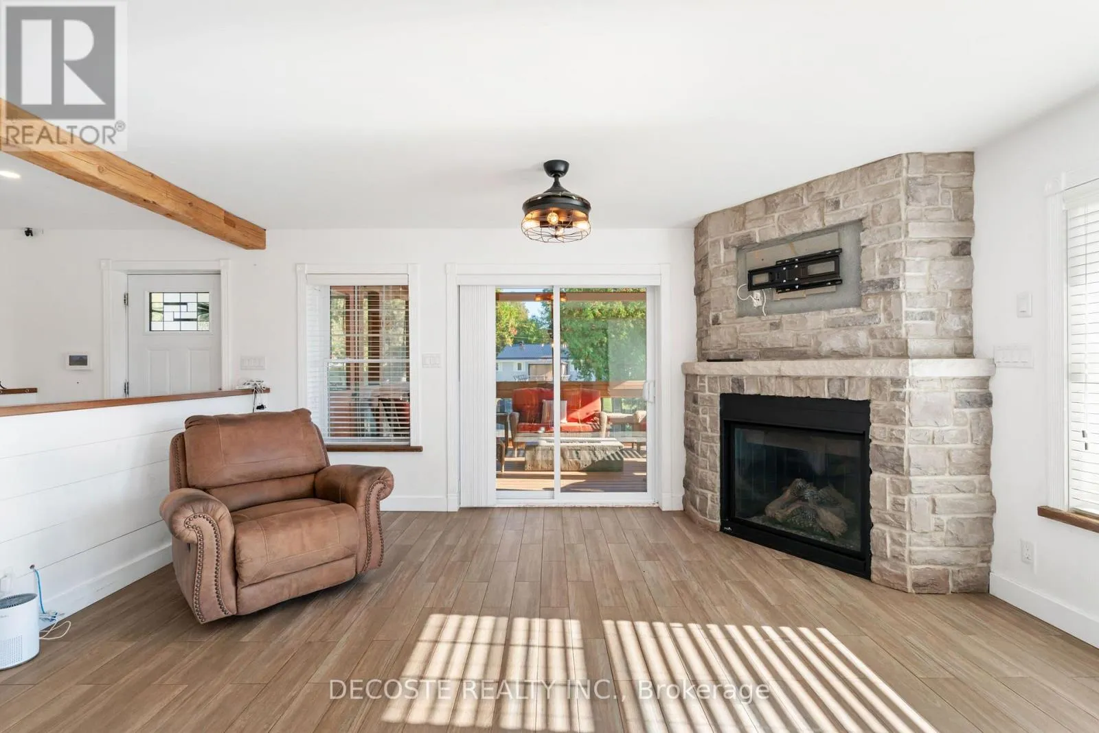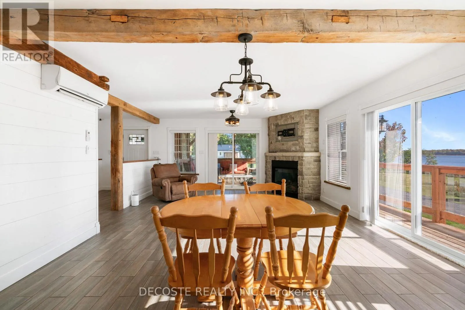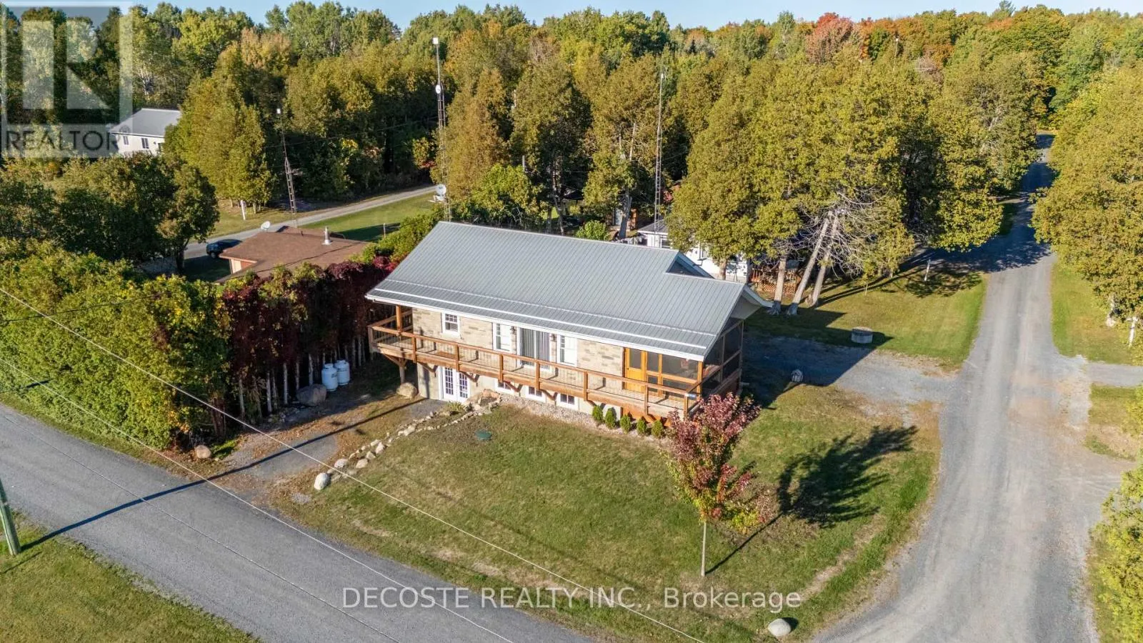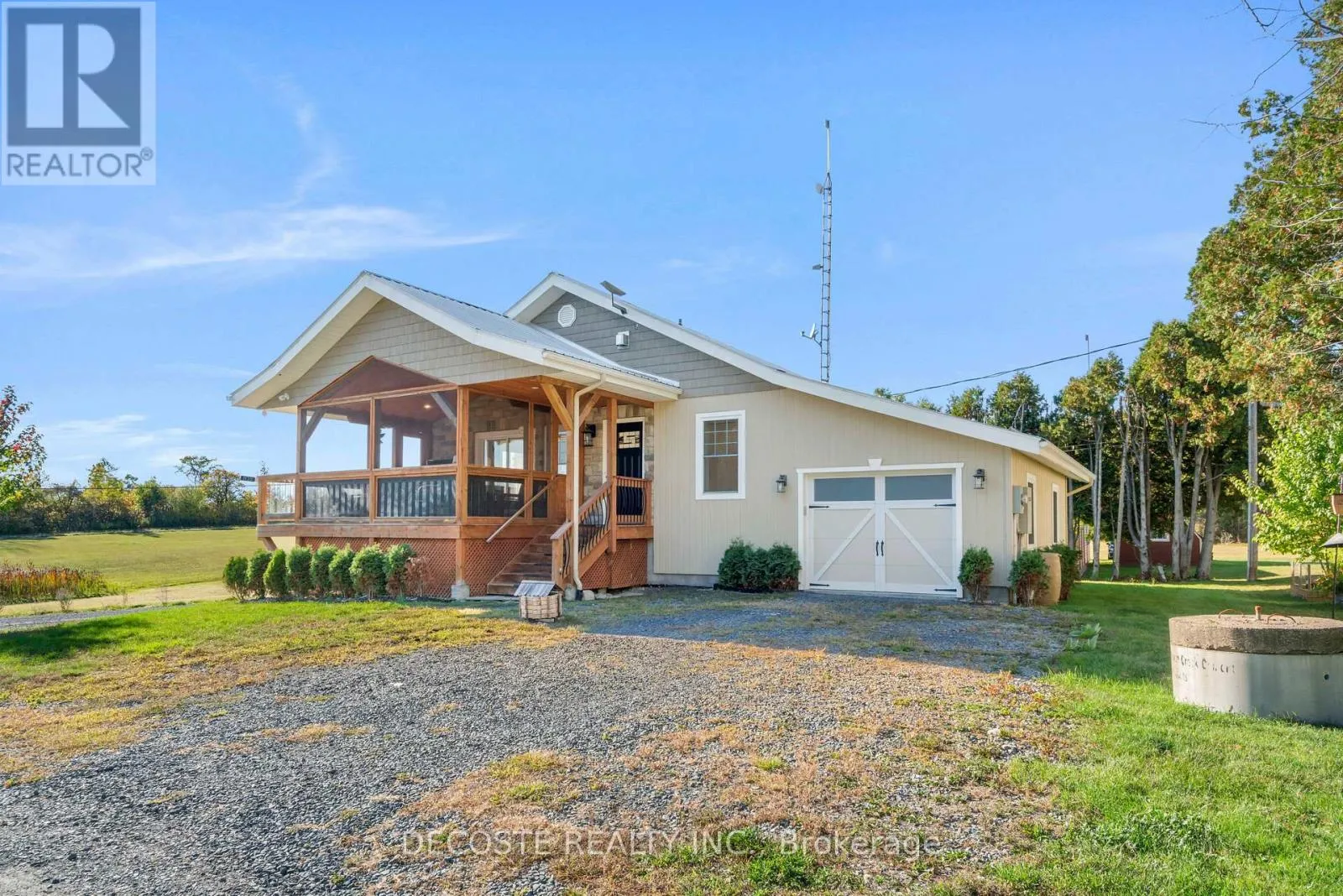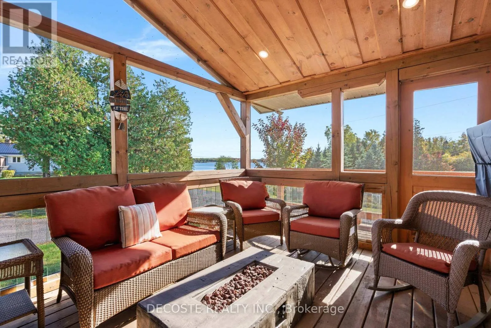 Cross Streets: Masterson Rd & Second St. ** Directions: Take County Rd 43 from County Rd 34, turn left on Loch Garry Rd and left on Masterson Rd to property at the corner of Masterson Rd and Second St. Spectacular Home with a Magnificent View of Loch Garry Lake! Built in 2017 with quality craftsmanship, this raised bungalow offers stunning lake views and modern comfort. The stone exterior and two-sided wraparound deck set the tone for relaxed lakeside living. Enjoy the enclosed 3-season porch featuring a built-in propane fireplace and TV area - the perfect spot to unwind year-round. Additional highlights include an attached single-car garage, a walk-out basement with potential for an in-law suite, and radiant floor heating throughout for cozy winters, complemented by a heat pump for efficient air conditioning in summer. The main floor showcases exposed barn beams, a bright modern kitchen with a farmhouse sink, quartz countertops, built-in oven and stove, and stainless steel appliances. Ceramic flooring, ceiling fans, and two sets of patio doors leading to the deck and covered porch add to the homes charm and functionality. With direct access to Loch Garry and a beautiful sandy beach, this property offers more than just a home its a retreat where you can truly relax and enjoy life by the water. (id:27476)