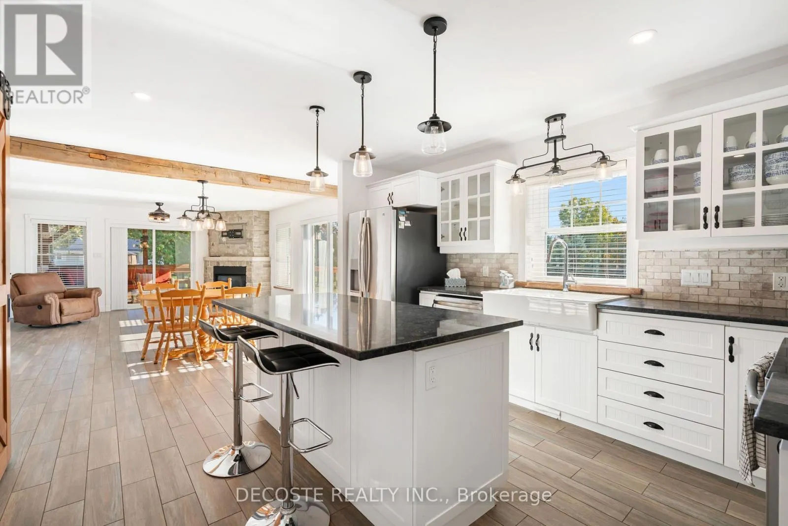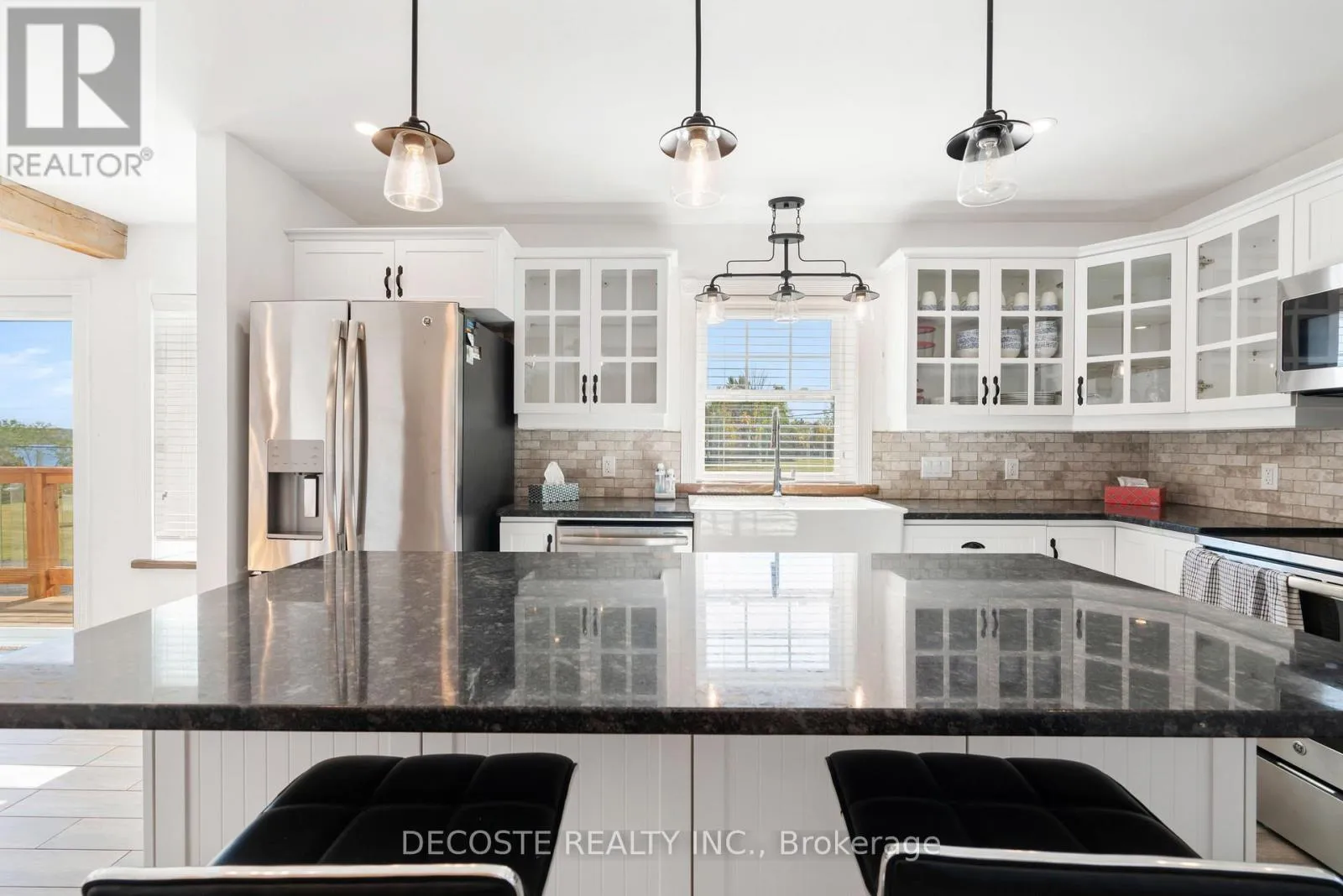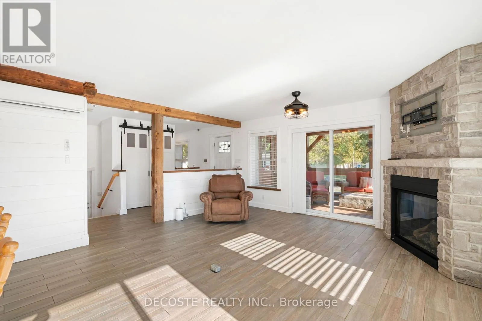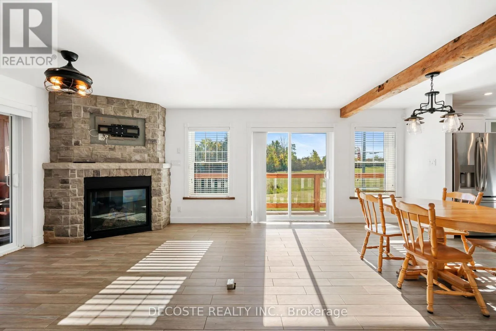 Cross Streets: Masterson Rd & Second St. ** Directions: Take County Rd 43 from County Rd 34, turn left on Loch Garry Rd and left on Masterson Rd to property at the corner of Masterson Rd and Second St. Spectacular Home with a Magnificent View of Loch Garry Lake! Built in 2017 with quality craftsmanship, this raised bungalow offers stunning lake views and modern comfort. The stone exterior and two-sided wraparound deck set the tone for relaxed lakeside living. Enjoy the enclosed 3-season porch featuring a built-in propane fireplace and TV area - the perfect spot to unwind year-round. Additional highlights include an attached single-car garage, a walk-out basement with potential for an in-law suite, and radiant floor heating throughout for cozy winters, complemented by a heat pump for efficient air conditioning in summer. The main floor showcases exposed barn beams, a bright modern kitchen with a farmhouse sink, quartz countertops, built-in oven and stove, and stainless steel appliances. Ceramic flooring, ceiling fans, and two sets of patio doors leading to the deck and covered porch add to the homes charm and functionality. With direct access to Loch Garry and a beautiful sandy beach, this property offers more than just a home its a retreat where you can truly relax and enjoy life by the water. (id:27476)