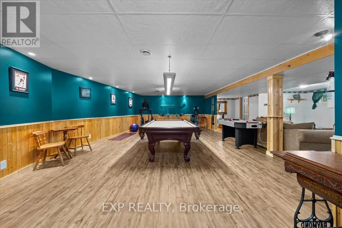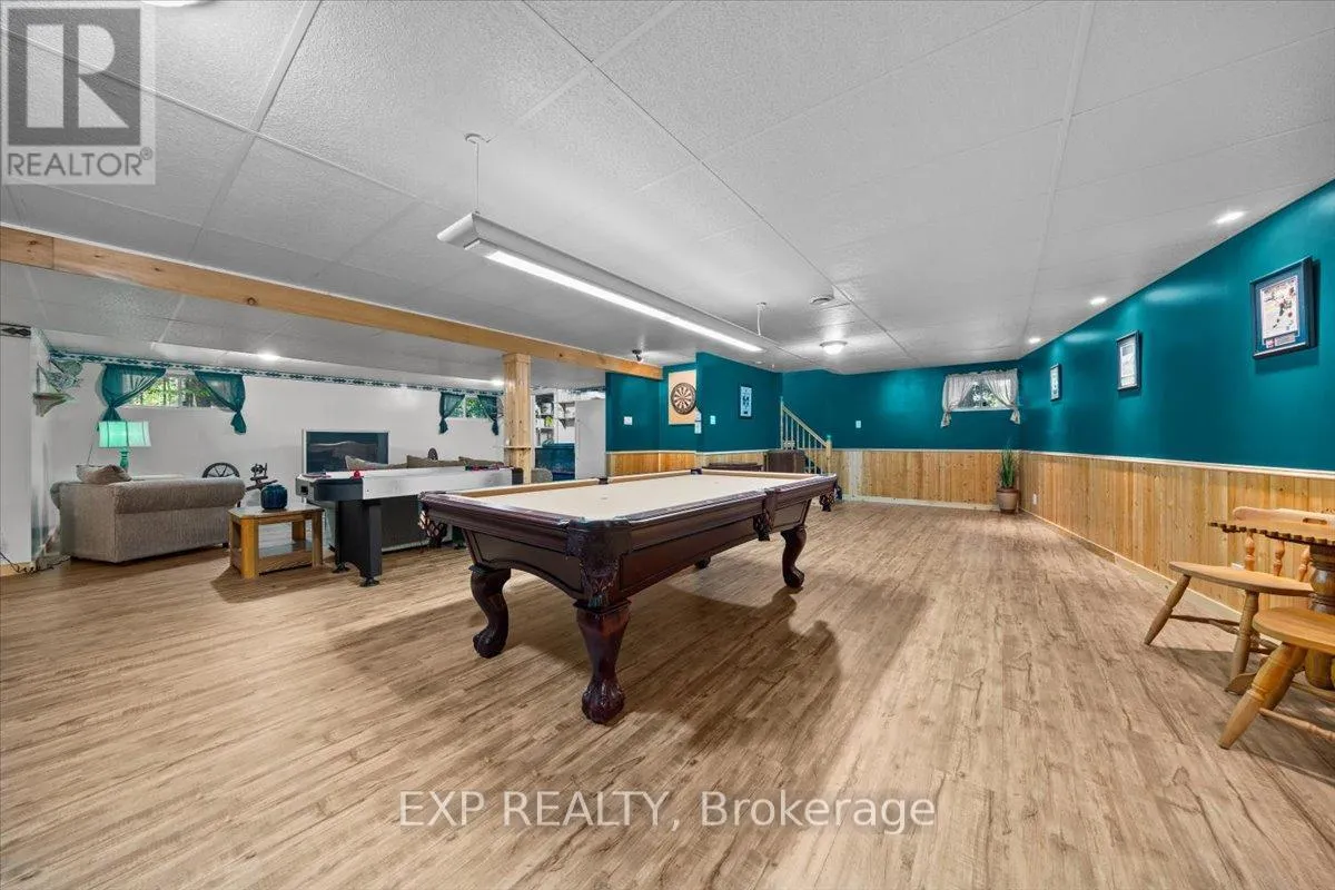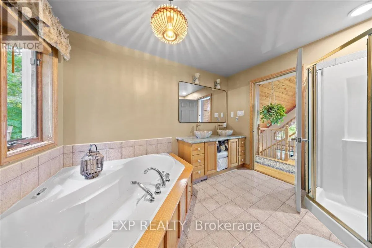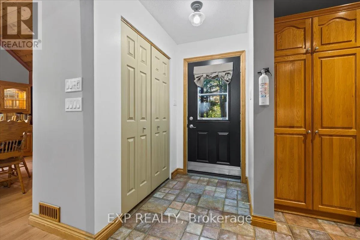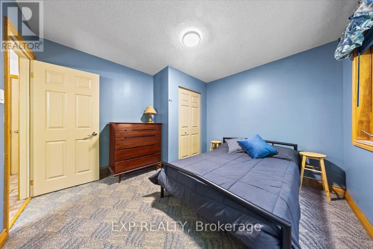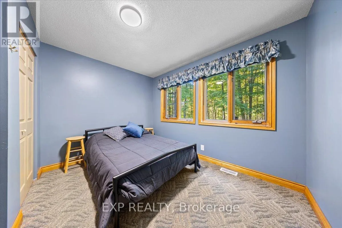 Take Highway 43 east from Merrickville, Turn onto Burritt's Rapids Road, Turn left onto Haskins Road. Welcome to your dream home! This stunning custom-built residence, clad in Western Red Cedar board & batten, is set on 6.27 acres of beautifully maintained, wooded land with a private driveway offering serene seclusion and natural beauty. The home features an energy-efficient geothermal heating and cooling system, a Vermont Castings wood stove, and top-tier insulation throughout both the house and garage for year-round comfort. Step inside to find a freshly painted main level with brand new carpeting and a thoughtfully designed layout featuring a full 3-piece bathroom, laundry room, bedroom, and a dramatic 26' vaulted ceiling with wall-to-wall windows that flood the space with natural light. The remodeled kitchen includes stainless steel appliances, granite countertops, and a convenient breakfast bar perfect for entertaining or everyday living. Upstairs, you'll find a cozy guest bedroom, a 4-piece bathroom with a luxurious therapeutic tub, and a spacious primary bedroom with a private balcony overlooking the peaceful, tree-lined surroundings. Both bathrooms have been updated with stylish new vanities, blending modern finishes with timeless charm. The finished basement offers a large recreation/exercise room, cold storage, and a utility/storage area. A pristine 5-car garage features an impeccably finished, climate-controlled workshop ideal for hobbyists or serious DIYers. Outside, enjoy a calming patio with a custom pond, a vegetable garden, a greenhouse, and ample storage buildings. Explore the scenic trails or relax beside the charming creek that runs through the property. This one-of-a-kind retreat blends comfort, functionality, and natural beauty an exceptional opportunity for those seeking privacy and connection to the outdoors. (id:27476)