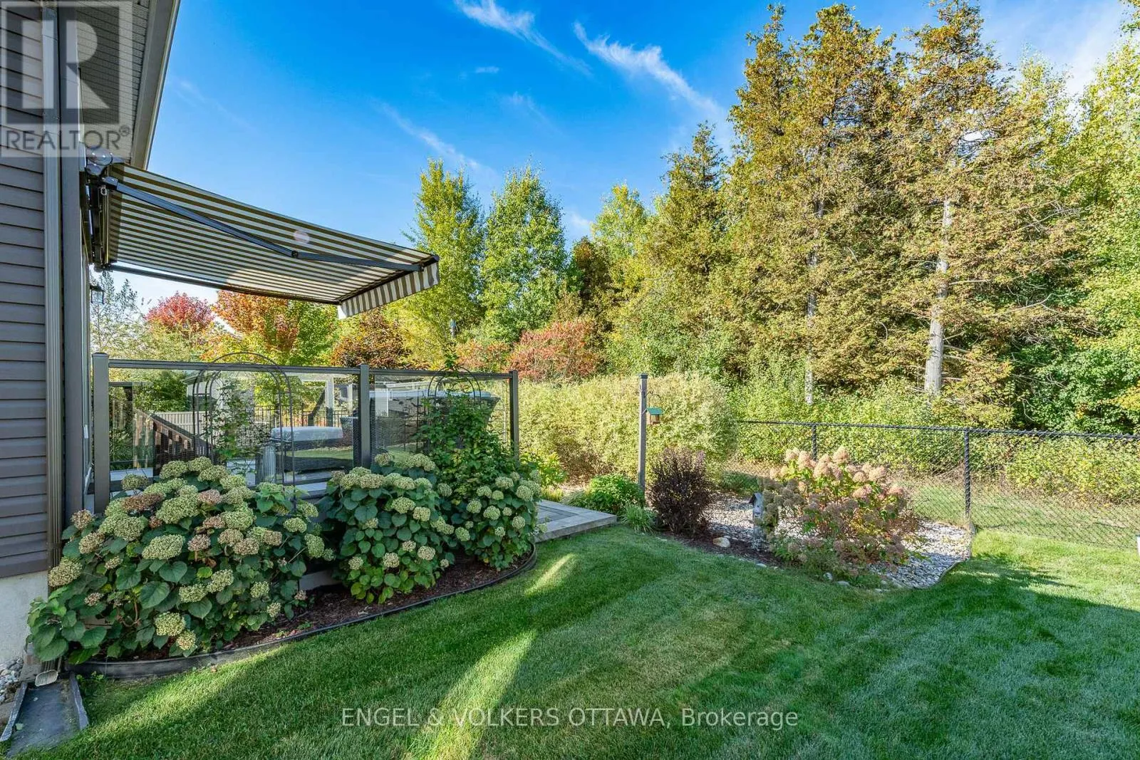 Cross Streets: Fourth Line + Merlyn Wilson Rd. Merlyn Wilson Rd + Equinelle Dr. ** Directions: From Fourth Line keep left onto Merlyn Wilson Rd. From Merlyn Wilson Rd turn right onto Equinelle Dr. Home is on the right. Welcome to 303 Equinelle Dr. Firestone model by Equinelle. Discover comfort, style, and privacy in this exceptional 2-bedroom + den bungalow, perfectly situated on a larger premium lot (UPGRADE) with no rear neighbours, backing onto the tranquility of the golf course. Whether you're enjoying the peaceful views from your sunroom (UPGRADE) or relaxing on your composite back deck (UPGRADE), you'll love the serenity and space this home offers. Step inside to find thoughtful upgrades throughout, including elegant wallpaper, crown molding, and a stunning upgraded bay window that floods the living space with natural light. The landscaped front and back yards feature a custom front patio and a spacious back patio complete with an automated awning, perfect for outdoor entertaining. Added for anyone in need of extra storage, the extended garage is a standout feature widened by 3 feet, fully drywalled and insulated for year-round use. Inside, the home is equipped with a central vac rough-in, water softener, on-demand hot water, and A/C, providing modern comfort and convenience. This is a rare opportunity to own a beautifully maintained bungalow in a sought-after location, offering both luxurious upgrades and peaceful golf course living. (id:27476)
