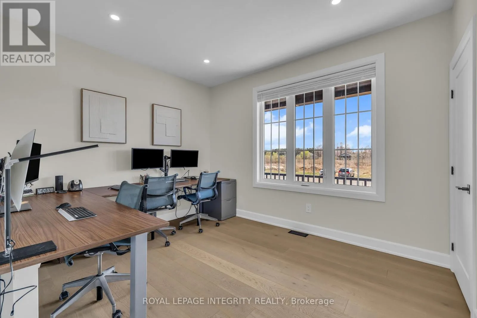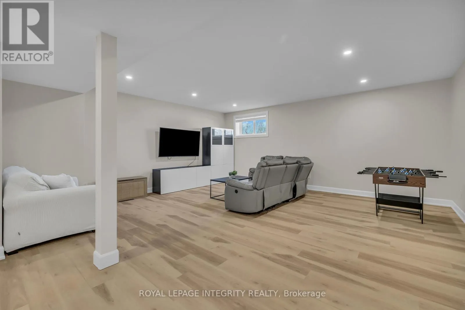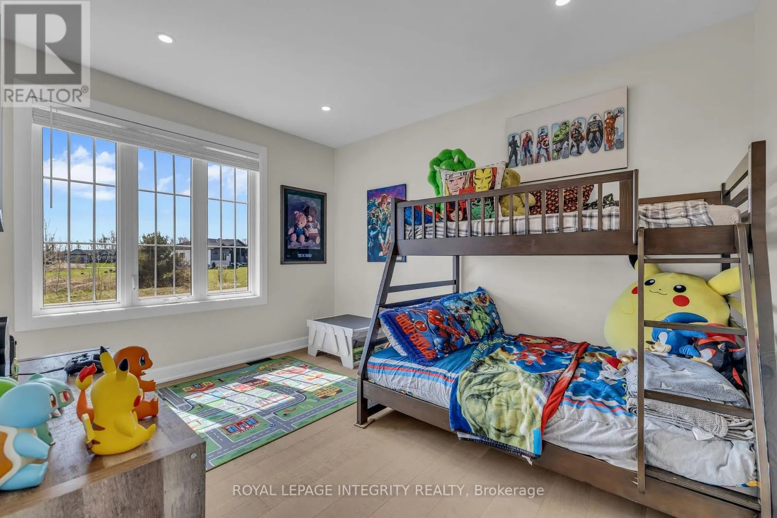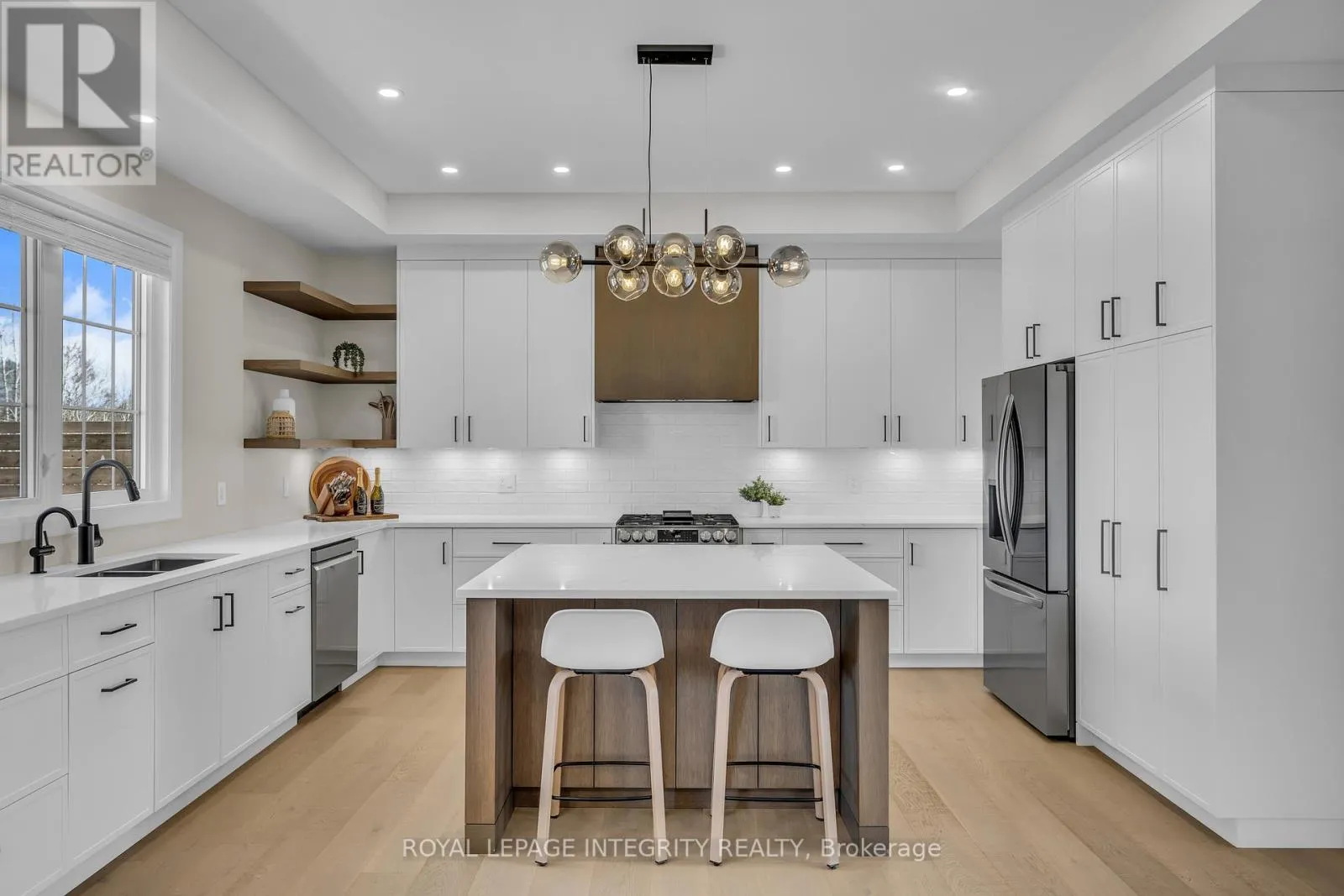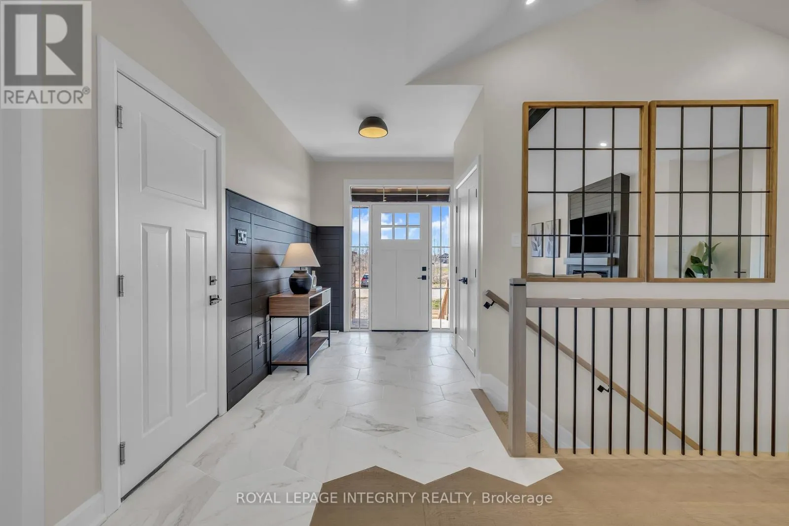 Cross Streets: Hwy 43 and Maplestone Drive. ** Directions: Exit Hwy 416 for Kemptville. Proceed east on Hwy 43 for approximately 4km. Turn right on Maplestone Drive. Welcome to 106 Maplestone Drive a beautifully crafted, newly built bungalow offering 5 bedrooms (3A/G +2) and 3 bathrooms, set on just over an acre of land & only 30 minutes to Ottawa. From the moment you arrive, the inviting covered seating area sets the tone for the exceptional craftsmanship found throughout. Step inside to a spacious, light-filled foyer with striking black accent walls and elegant marble tile. White oak hardwood flooring flows seamlessly throughout the open-concept main level, leading into a stunning chefs kitchen designed for both function and style.This thoughtfully curated space features quartz countertops, a gas range with a custom wood hood, stainless steel appliances, open shelving, an oversized island with seating, and ample cabinetry AND the window above the sink frames the private backyard, adding a perfect finishing touch! The kitchen flows into a bright dining area & airy living room with vaulted ceilings and a show stopping fireplace set into a custom accent wall. Down the hall, you'll find three generously sized bedrooms, including a primary suite with walk-in closet and a spa-inspired ensuite boasting dual vanities and beautiful tile work. A full main bathroom and convenient main floor laundry complete this level. The fully finished lower level offers exceptional bonus space with large windows that make it feel bright and above grade. It features a sprawling rec room, two additional bedrooms, a third full bath with double sinks, and plenty of storage. Both the basement and attached garage include insulated, radiant-ready slabs. The garage is fully spray-foamed, drywalled, and versatile enough to serve as a home gym, workshop, or studio. Additional features include full spray foam insulation throughout and a water treatment system with reverse osmosis to the kitchen and fridge. Hot water on demand is roughed in and can be changed before close. (id:27476)