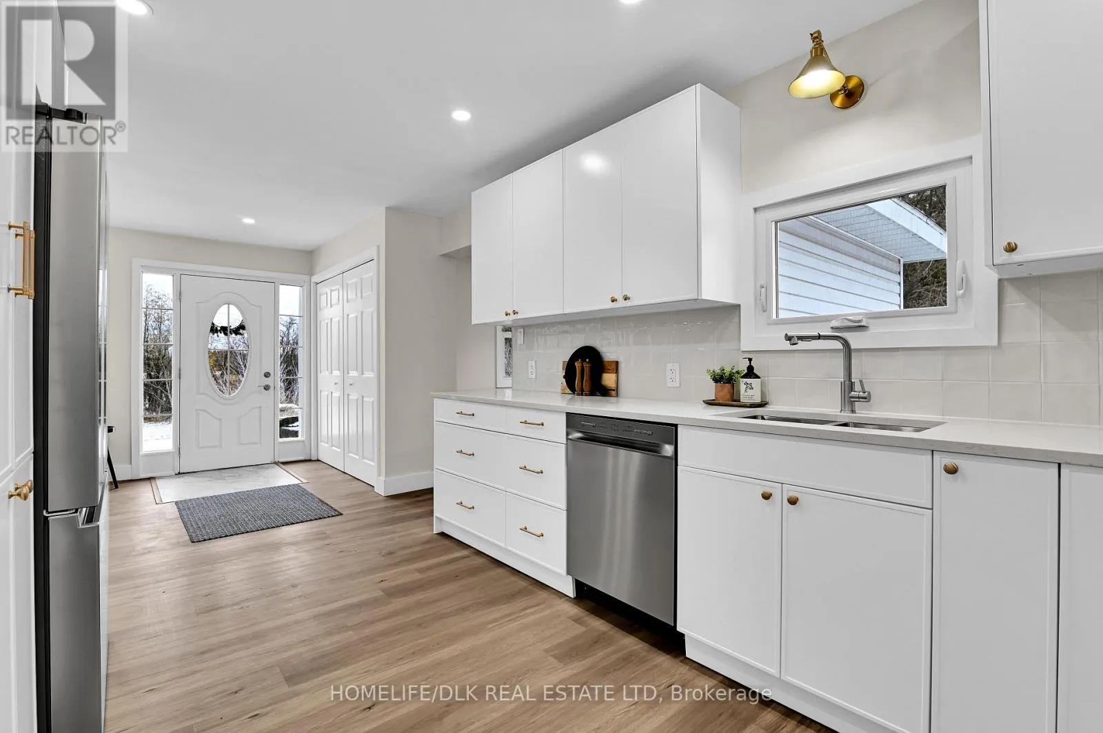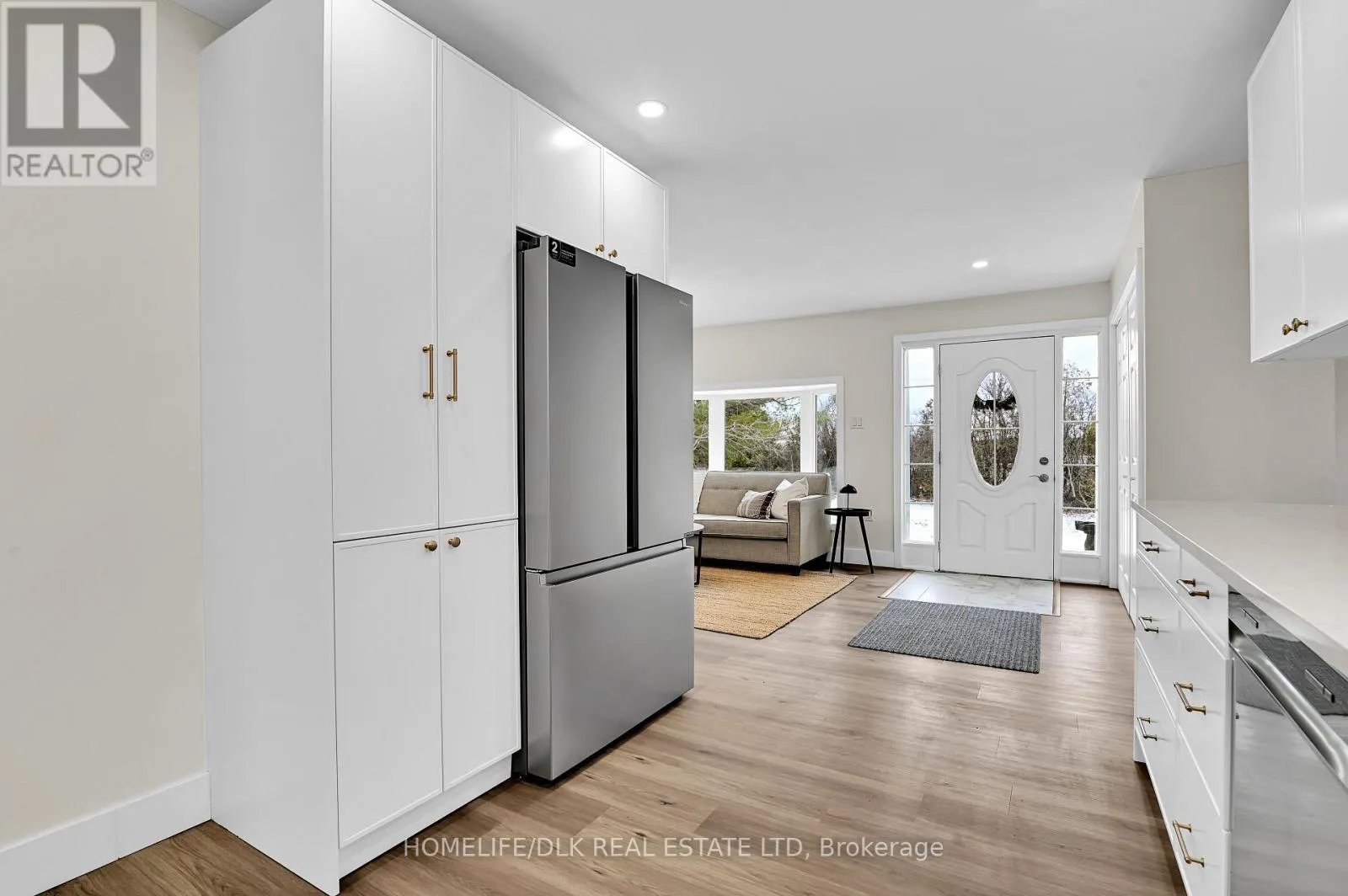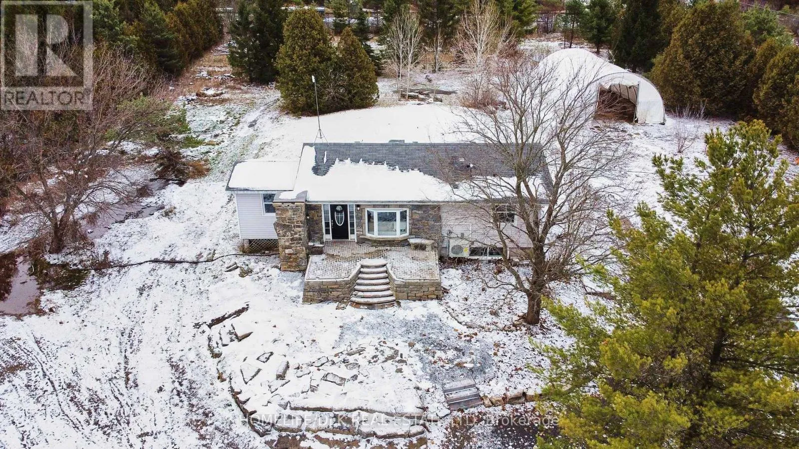 Cross Streets: Donoghue Rd and County Road 43. ** Directions: From County Rd 43, turn onto Donoghue Road. Continue to the end and turn left onto Scotch Line Road W. Property will be further down, on the corner of Scotch Line Road W and the continuation of Donoghue Road before the train tracks. This fully renovated country bungalow in Oxford Mills is a must-see!! Nestled on a private 1.63 acres, this home is the definition of move-in ready with every detail thoughtfully designed. A truly turn-key experience for its new owners. Enjoy peace of mind with brand new essentials, including new windows, electrical, plumbing, heating, air conditioning, hot water tank, and water treatment system complete with a UV filter for the cleanest water possible. The beautiful curb appeal, featuring a stone walkway, stonewall features, and ample front garden beds, welcomes you inside. The main floor immediately impresses, opening into a nice and bright living room framed by a charming bay window and equipped with a wall of closets in the entryway. This flows seamlessly into a gorgeous custom kitchen, which includes quartz countertops and all brand-new stainless steel appliances. Upstairs also features a spacious dining room (or bonus room) with a stylish feature wall, 3 generous bedrooms with large closets, a full 4pc bathroom, and a practical mudroom at the back with a private entrance to the backyard and the light-filled basement. This lower level has plenty of headroom and presents an incredible opportunity for an in-law suite. Featuring an additional living room, 4th bedroom, 3pc bathroom, and a large laundry room with plenty of storage. Comfort is guaranteed year-round with individual heat controls via brand-new baseboard heaters, plus an efficient dual heat pump that provides air conditioning and supplemental heating. Outside, the large, private lot offers plenty of parking on the freshly gravelled driveway and includes a large carport garage, all surrounded by mature trees. There is nothing left to do but move in! This location provides an easy commute to: Kemptville or Merrickville (10 mins), Smiths Falls (20 mins), and Brockville or Ottawa (45 mins). This is an exceptional opportunity to own a beautiful home in a desirable country setting. (id:27476)