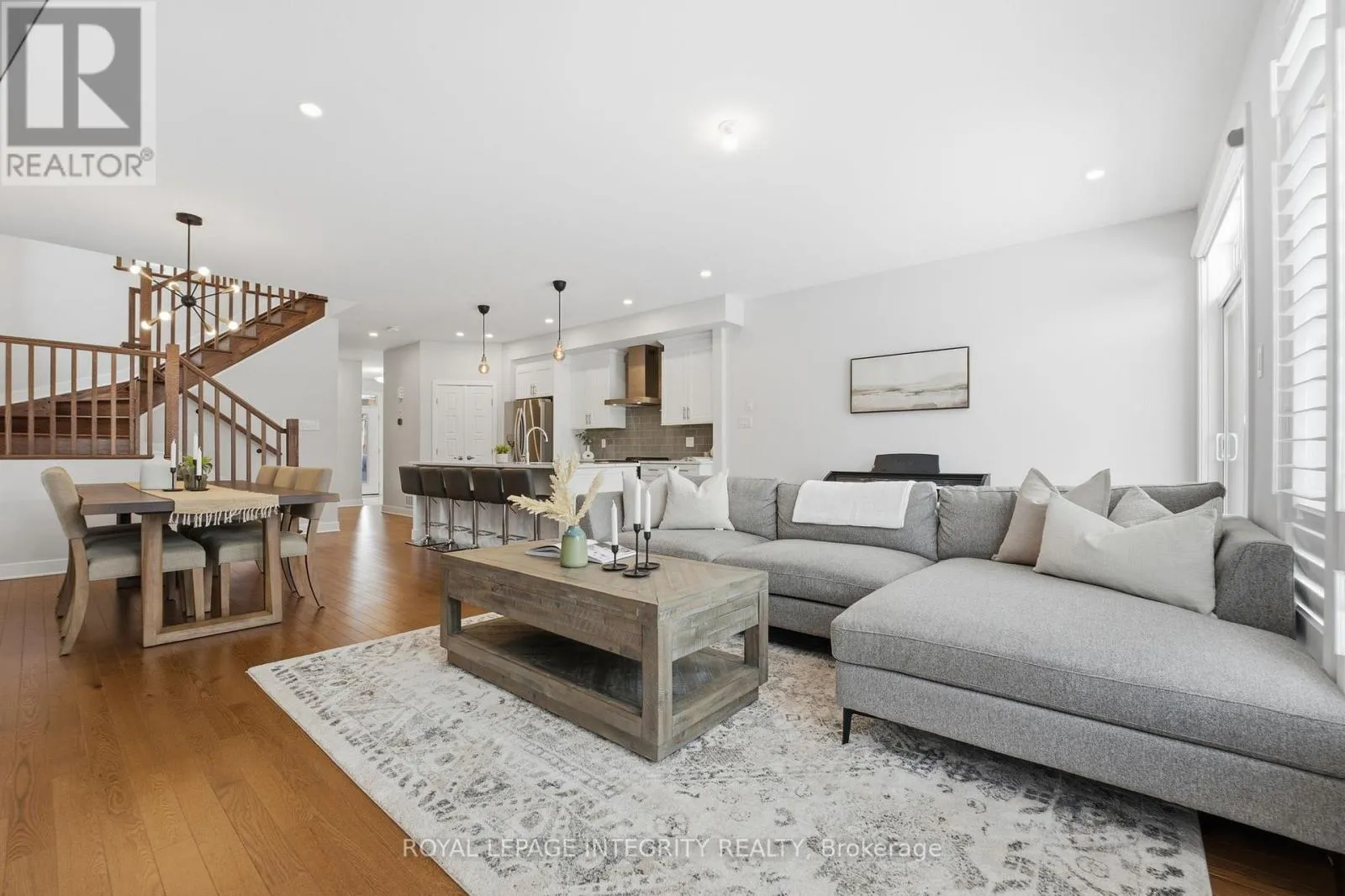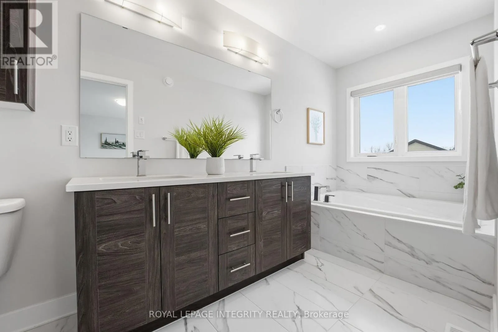 Cross Streets: Bristol Cres & Rideau River Rd. ** Directions: South on the 416, Take exit 34 onto County Road 43 W toward Kemptville, at the first roundabout, right at the second roundabout, left onto Bristol Crescent, Right onto Whitham crescent. Welcome to this impeccably designed two-storey single-family home, built by Urbandale in 2023, offering refined style, generous space, and modern comfort just 30 minutes from Ottawa in the growing town of Kemptville. From the moment you arrive, the home impresses with its double driveway, oversized two-car garage, and welcoming front entrance. Step inside to a spacious foyer that opens into a thoughtfully designed open-concept main level, ideal for both everyday living and elegant entertaining. The chef-inspired kitchen is a true centrepiece, showcasing quartz countertops, stainless steel appliances, upgraded cabinetry, and a walk-in pantry for exceptional storage. The kitchen flows seamlessly into the sun-filled living and dining areas, highlighted by gleaming hardwood floors, custom California shutters, and stylish pot lights and upgraded light fixtures throughout. Upstairs, the home offers four generously sized bedrooms and two full bathrooms. The luxurious primary suite is accessed through double doors and serves as a private retreat, complete with a spa-like five-piece ensuite featuring a soaker tub, glass walk-in shower, and double vanity. Three additional bedrooms, a well-appointed four-piece main bath, and a convenient upper-level laundry room and custom blinds in every room complete the second floor. The fully finished basement provides valuable additional living space with a large recreation room and ample pot lighting-perfect for a home theatre, gym, or playroom. Outside, the partially fenced backyard offers green space ready to be customized for relaxing, entertaining, or family enjoyment. A perfect blend of modern design, quality craftsmanship, and functionality, this move-in-ready home is ideal for families seeking comfort, style, and long-term value. (id:27476)