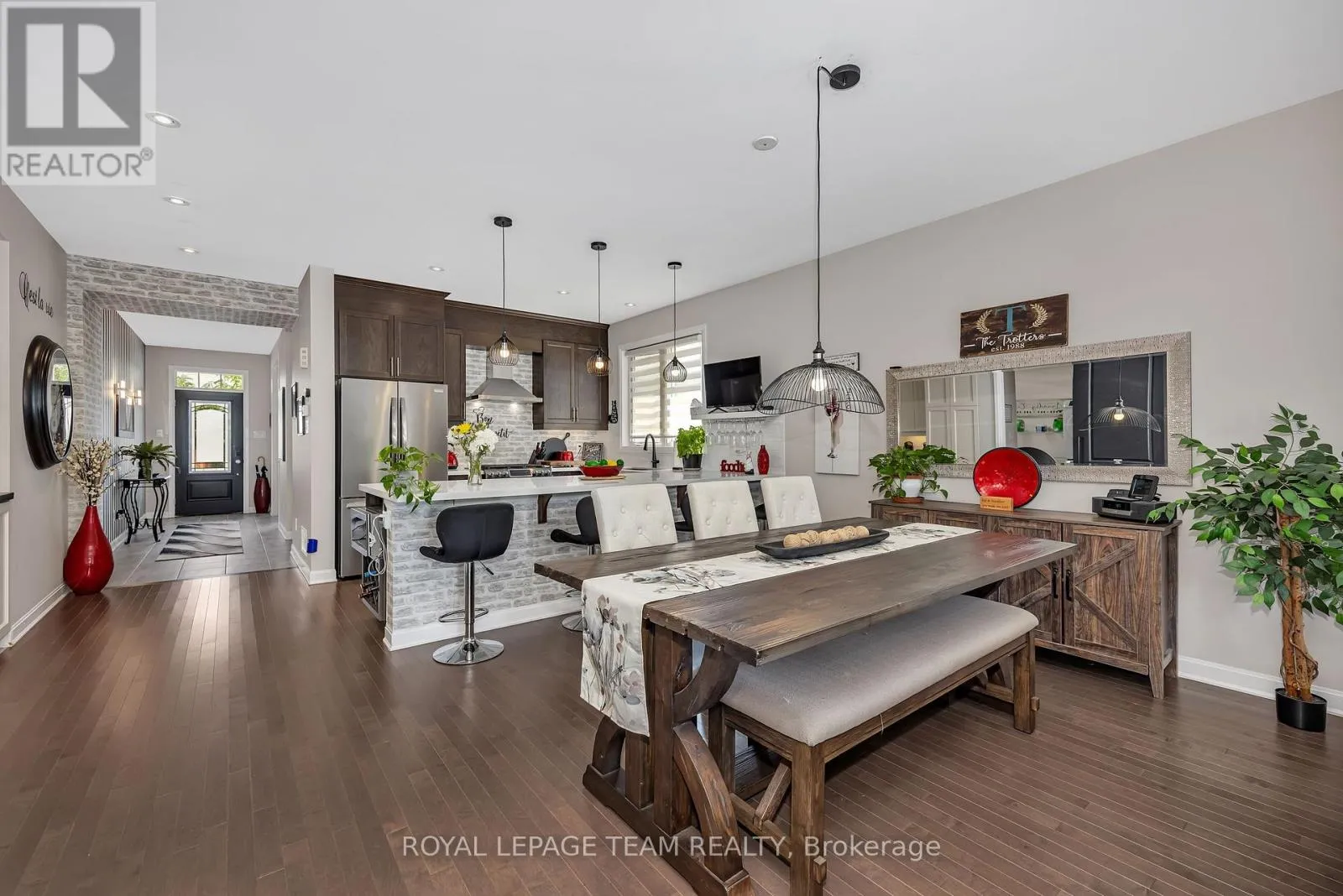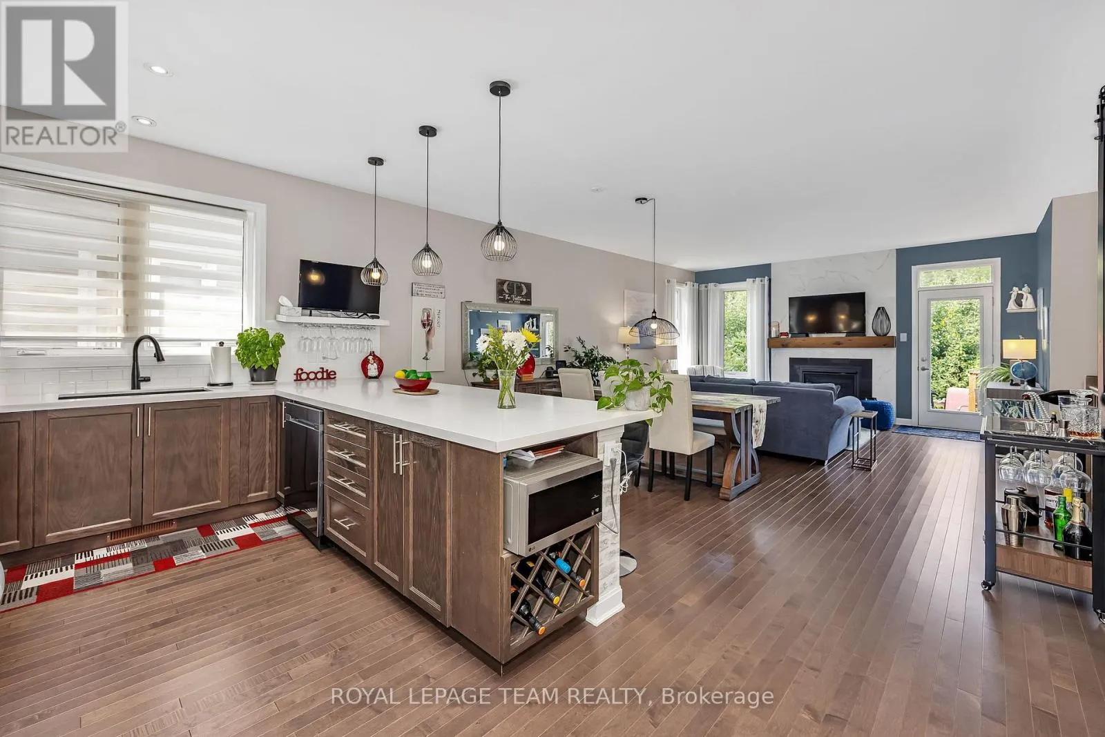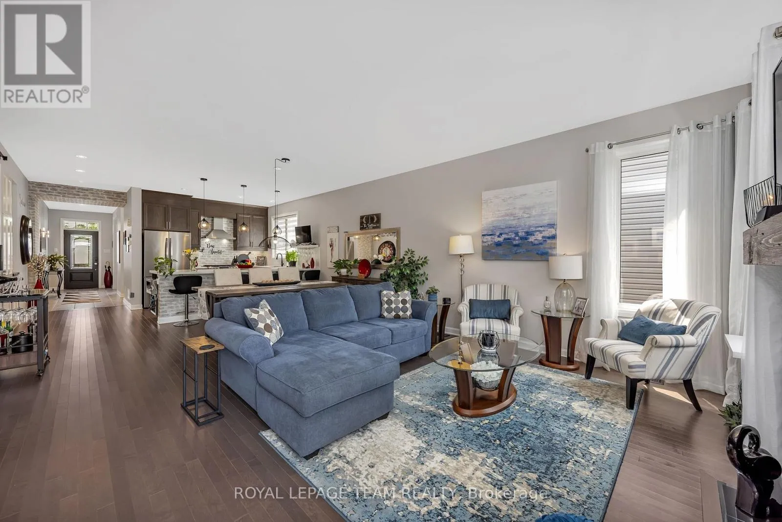 Cross Streets: De Pencier (Depencier). ** Directions: From Hwy #416 South take Dilworth Exit. Turn Right & follow the signs to Equinelle. Just past Equinelle turn Right on Depencier (corner of Depencier & the Municipal Centre). Then Right on Harvester Crescent. Property is on your Right. WELCOME HOME. This STUNNING Serenade Model Home built in 2018 is a True Bungalow boasting approx. 2,294 sq. ft. of luxurious living space as per the builders plan. This home has all the bells & whistles. FULL of Upgrades. Pride in ownership is evidenced throughout the home & grounds. The inviting front covered porch entices you in to your front foyer featuring ceramic flooring & a spacious clothes closet. The main floor den is big & bright w/a picture window & glass french doors. This room can easily be doubled as an additional bedroom. The open concept floor plan is sure to please featuring a chef's kitchen w/ upgraded cabinetry, granite countertops, a breakfast island that easily seats 4, pot lights, pendant lights & high end stainless steel appliances. There is a lovely undermount composite sink & matching faucet & even a mounted water pot filler! You will also enjoy a custom built in pantry & coffee bar. The formal dining area is open to the great room where you will find a cozy gas fireplace, picture windows, gleaming hardwood flooring & patio doors that lead to your backyard oasis where you will enjoy a two tiered deck & lower patio w/ gazebo. NO REAR NEIGHBORS. Only views of the forest beyond! The main floor primary suite includes a spacous bedroom, a large walk in closet featuring a custom closet organizer & a 5 piece executive ensuite bath. The two piece powder room & laundry room complete the main floor. The lower level staircase w/spindles brings you to your spacious family room w/ huge windows streaming in natural light, flat ceilings w/ pot lights & a ledge-stone feature wall with electric fireplace! There are two additional, generously sized bedrooms on this level as well as a full 3 piece bathroom. Located in a fabulous neighborhood in Kemptville on a quiet street, walking distance to shops, trails, activity centres, golf, Kemptville hospital & SO much more! Minutes to Hwy #416 & only 30 minutes to downtown Ottawa. (id:27476)