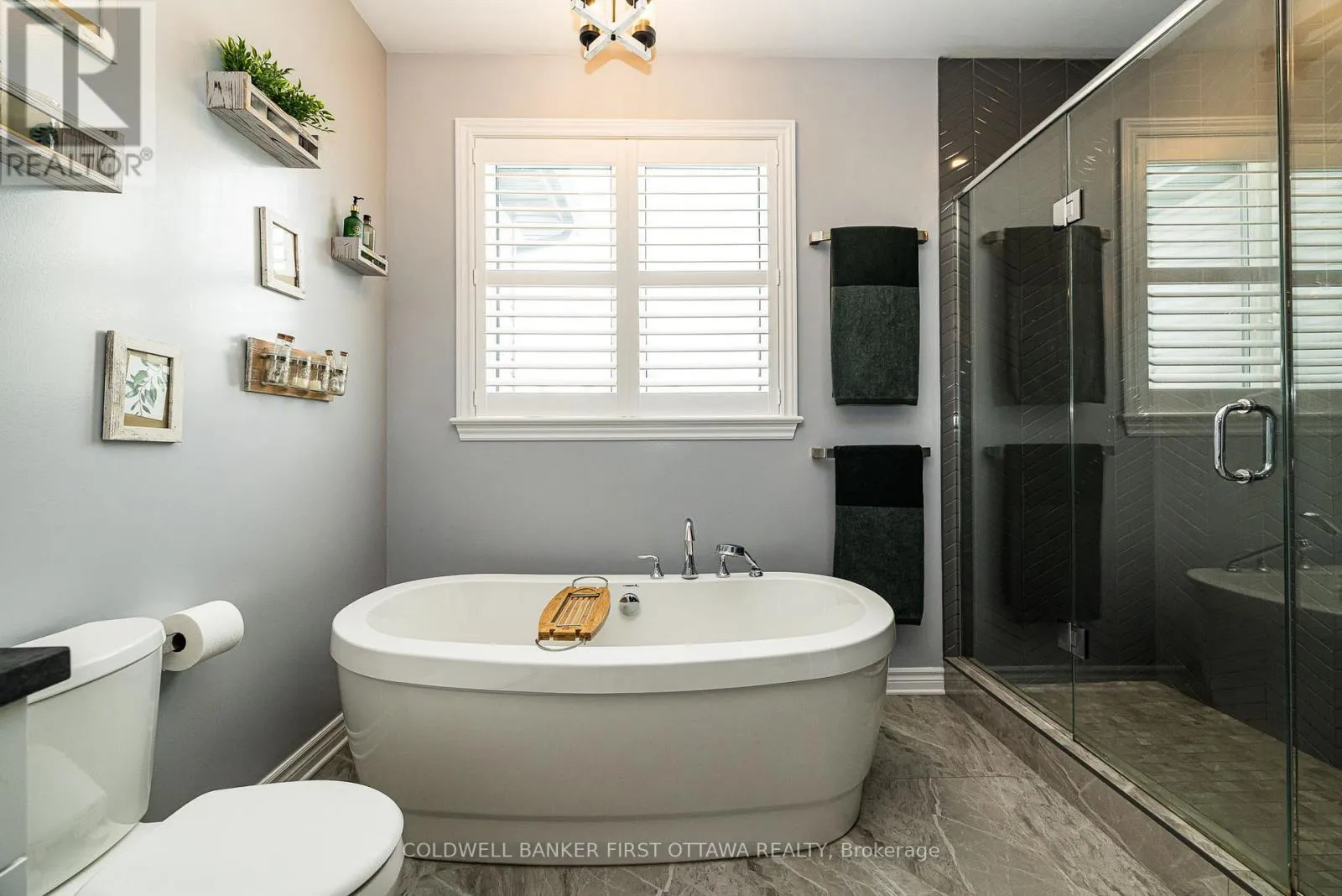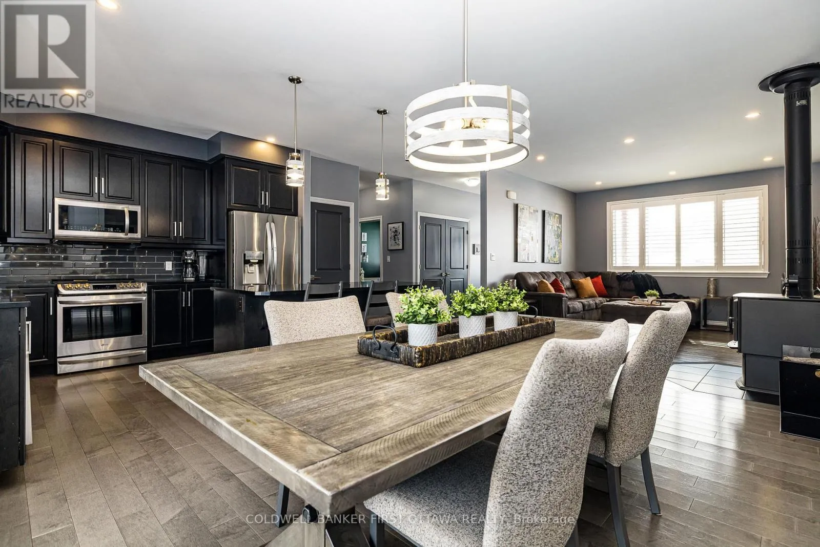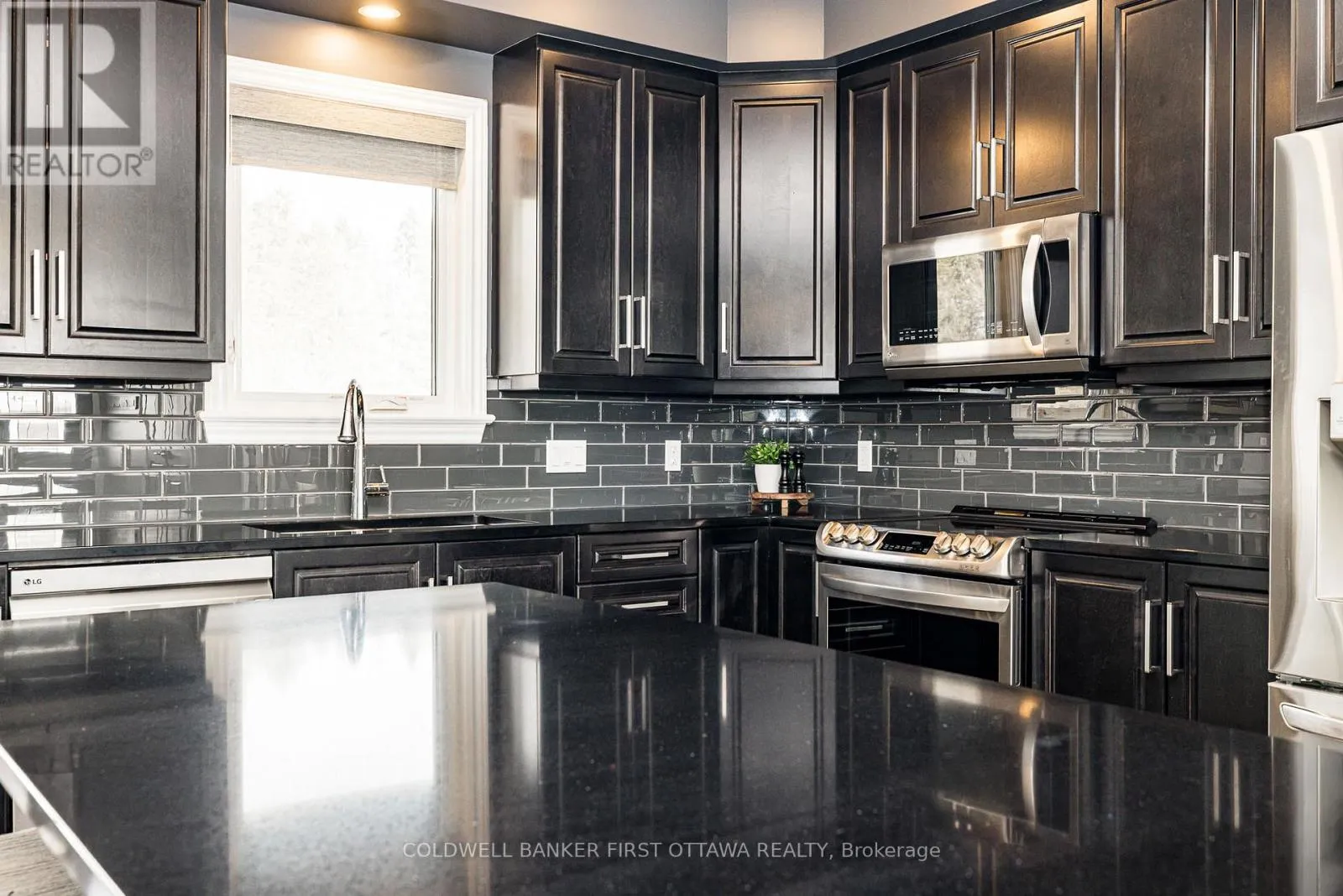 Cross Streets: McGill and South Gower Drive. ** Directions: Travelling South on South Gower Drive turn right on McGill Road then left on Stirling Crescent. Welcome to 120 Stirling Crescent - a standout property on a private, treed oversized lot in a quiet Kemptville suburb. This exceptional home offers spacious living, versatile spaces and outdoor features that make everyday life feel like a retreat. With 5 bedrooms and 3 bathrooms, this home is perfect for families needing room to grow. High-end finishes throughout the main floor include engineered hardwood, generous natural light and thoughtful design. The gourmet kitchen showcases stone countertops, stainless appliances and ample cabinet space, ideal for everyday meals and entertaining alike. A bright living room with a cozy wood stove creates a welcoming centrepiece for family gatherings. The main level also includes a convenient laundry room. The primary suite is a peaceful haven with a 4-piece ensuite bathroom featuring a soaker tub and a walk-in closet. Two additional bedrooms and a full family bathroom complete the main floor layout.The finished basement expands your living space even further with a large rec room perfect for games, media, or a second living area, plus two additional bedrooms, full bathroom and a generous storage area currently set up as a gym - plus plenty of space for seasonal gear and extras. Step outside to enjoy the expansive deck overlooking the fenced backyard, complete with an above-ground pool, pool deck and shed - perfect for summer fun and outdoor entertaining. (id:27476)