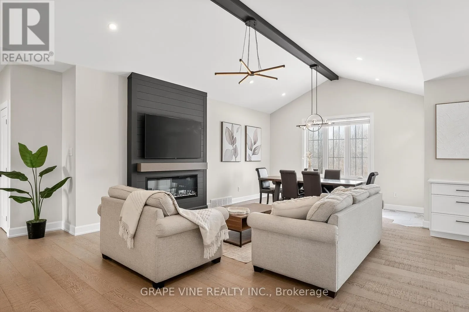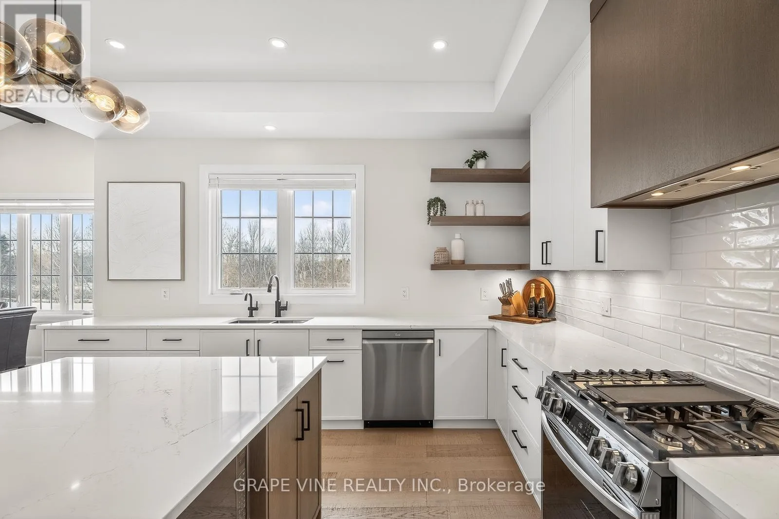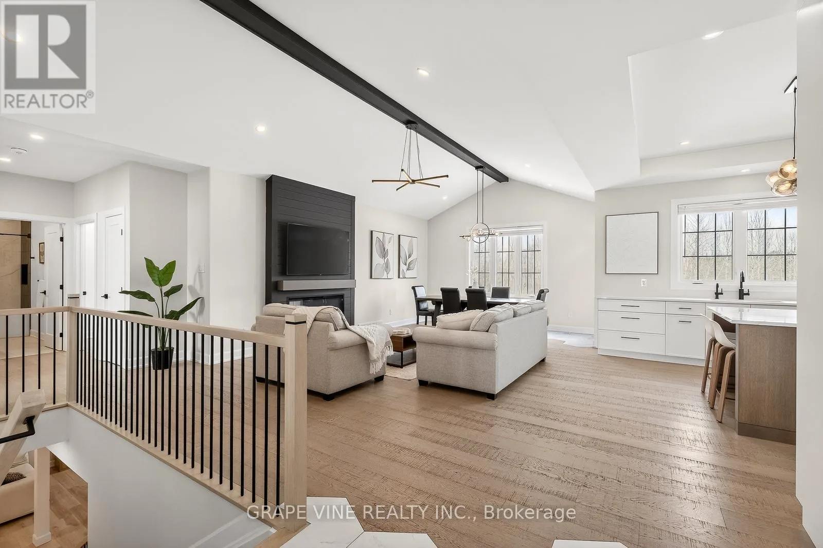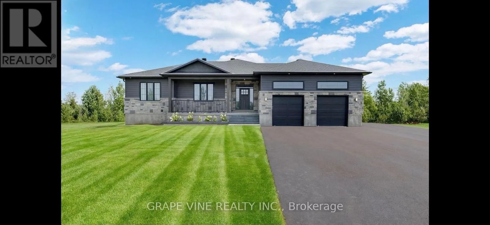 Cross Streets: Hwy. 43. ** Directions: Exit highway 416 at highway 43. Head east, pass South Gower Dr. and Maplestone Dr. will be on your right. Welcome to 106 Maplestone, nestled in the highly sought-after Maplestone Estates. This nearly new, custom-built 5-bedroom, 3-bathroom bungalow truly checks all the boxes. Set on 1.09 acres of pure serenity, backing onto a forest. This property offers the perfect blend of privacy and community feel. Step inside to a bright, open-concept main level with beautiful cathedral ceilings designed for both everyday living and effortless entertaining. The modern kitchen features an oversized island that's perfect for gathering with friends and family, while expansive windows throughout the home flood the space with beautiful natural light. The spacious primary suite offers a luxurious ensuite - your own private retreat for relaxation and self-care. The lower level boast large windows and high ceilings, 2 bright bedrooms and a perfectly designed bathroom offering a water room and double vanity. Built with quality in mind and no corners cut, this home is packed with thoughtful upgrades, including radiant-ready floors in the basement and garage, spray-foam insulation throughout the entire home, and a comprehensive water treatment system complete with a reverse osmosis drinking unit. Custom accent walls with thoughtful design added throughout. The fully finished, oversized two-car garage is insulated and ready for year-round use. If you're looking for modern comfort, privacy, and custom finishes - 106 Maplestone delivers. (id:27476)