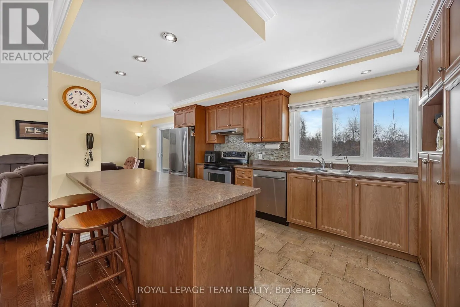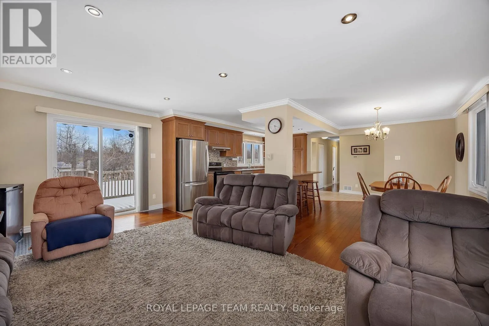 Cross Streets: County #44 and DePencier Drive. ** Directions: From County #43 turn North on County #44 and the subject property is on the west side of County #44 - across from the Municipal Centre. ~WELCOME HOME~. SO many uses for this presently zoned R1 property with such great visibility in the heart of Kemptville. The beautifully upgraded, 4 bedroom, 2 bathroom bungalow w/ finished basement sits on a large (almost half acre) treed & private lot across from the Municipality. NO REAR NEIGHBORS! Entering the foyer you will find gleaming hardwood & tile flooring on the main level. The open concept gourmet kitchen offers numerous counters & cupboards, crown moldings, flat ceilings, pot lights, a large island w/additional cupboards, stainless steel appliances, double sinks w/reverse osmosis water, & a large picture window overlooking your private, treed, backyard. Open to the dining area & living room which boasts a cozy gas fireplace & patio doors to your back deck! The primary bedroom as well as 2 additional bedrooms on this level are generously sized. The main floor 4 piece 'spa like' bathroom includes a soaker tub, walk in shower w/ built-in seat, large vanity & dual flush toilet. There is a back door which leads to your backyard and also provides a secondary entrance to your professionally finished basement which includes a very spacious family room, 4th bedroom, 2 piece bathroom, laundry room and plenty of storage space! The attached single car garage (approx. 19'7" x 19''10") has an auto garage door opener & Keypad with access to the backyard. The paved driveway accommodates an additional 5 vehicles. Perfect property for a home based business, an AirB&B, and also municipal sanctioned COMMERCIAL USE! Possibilities Galore! NUMEROUS UPGRADES include: Furnace approx. 2024, Natural Gas HWT approx. 2024, Central A/C approx. 6 years ago, Water Treatment approx. 2024, New Septic System approx. 8-10 years old (Municipal Sewer Hook Up Possible at a Minimal Cost), Rear Shingles approx. 1-2 years ago, Front Shingles approx. 8-10 years ago, Home alarm system is owned & monitored. RENTAL FEES (approx.) Hot Water Tank $38.46/month, Water Softener $25.99, Iron Filter $36.9 (id:27476)
