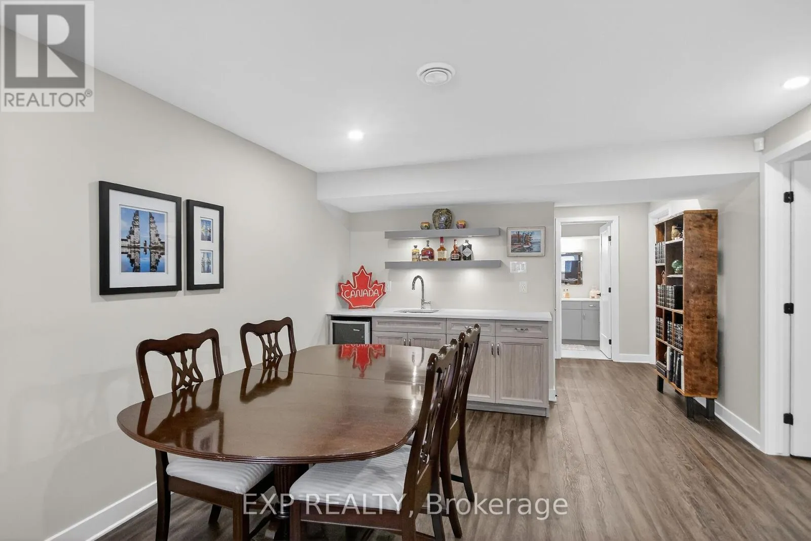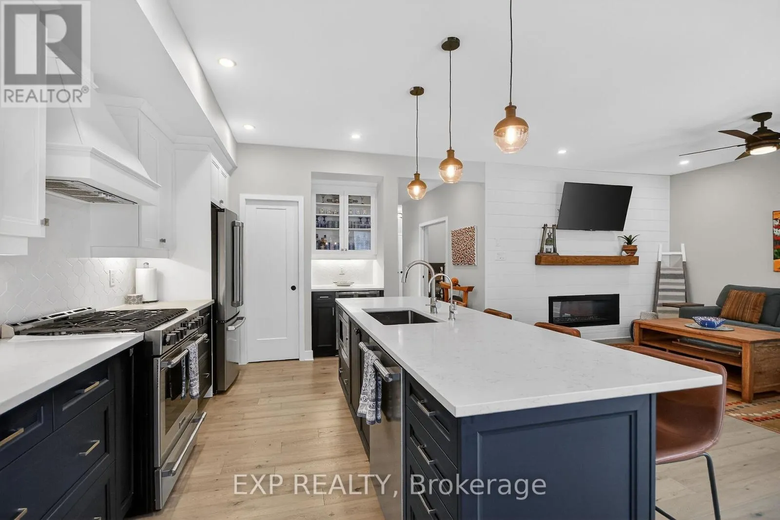 Cross Streets: Rideau River Rd. and Bristol. ** Directions: Rideau River Rd. to Bristol. Welcome to this better than new, stunning 4 bedroom, 4 bathroom, double garage, fully upgraded, Urbandale Home! Plenty of space to park vehicles on the nicely paved/sloped driveway and in the Epoxy finished garage. Notice the classic red brick as you walk up the interlock walkway (2024), onto the non-slip, epoxy finished porch (2024). Enter into a large foyer with classy powder bathroom. Mud room (2023) with garage inside access. Spacious office has floor to ceiling windows, custom built-in shelving and a double-sided fireplace. Beautiful hardwood flooring throughout. The spacious living room is open to the dining area and the show-stopper kitchen! Large pantry with separate bar area and beverage fridge, lots of drawers, and cupboards to the ceiling, massive island with quartz counter top, high-end appliances - including Cafe fridge, Frigidaire Professional gas range and dishwasher as well as a built-in microwave. Sliding doors to the BBQ area deck (2023) allow tons of light. 2nd level huge primary bedroom has an amazing, custom walk-in closet (2023) and a gorgeous 5pc en-suite. 2nd bedroom has large windows and a walk-in closet, good sized 3rd bedroom, large upgraded laundry room with washer and dryer (2024) and ample storage. Enjoy the professionally finished basement that includes a 4th bedroom, 3pc bathroom, great-sized rec room with wet bar, and plenty of storage space. Fully fenced yard (2023), central vacuum, upgraded lighting and tiling throughout - The pride of ownership is evident in this meticulous, must-see home! Great Location in Kemptville, minutes from walking trails, shopping, and easy access to the 416. (id:27476)
