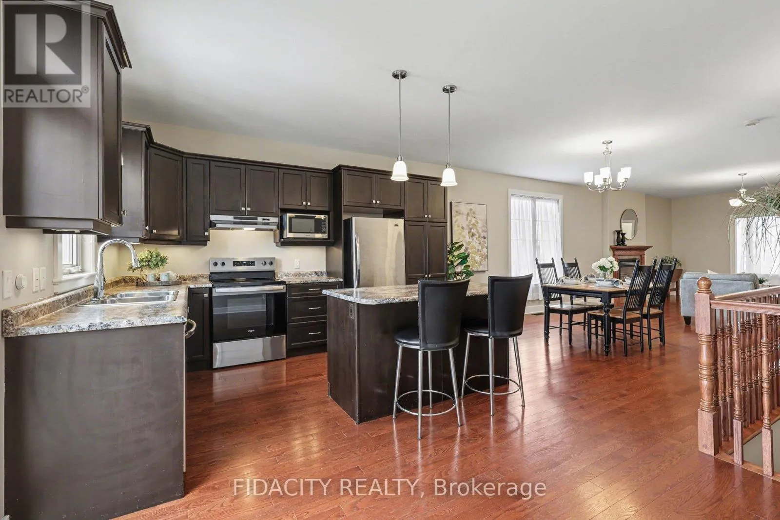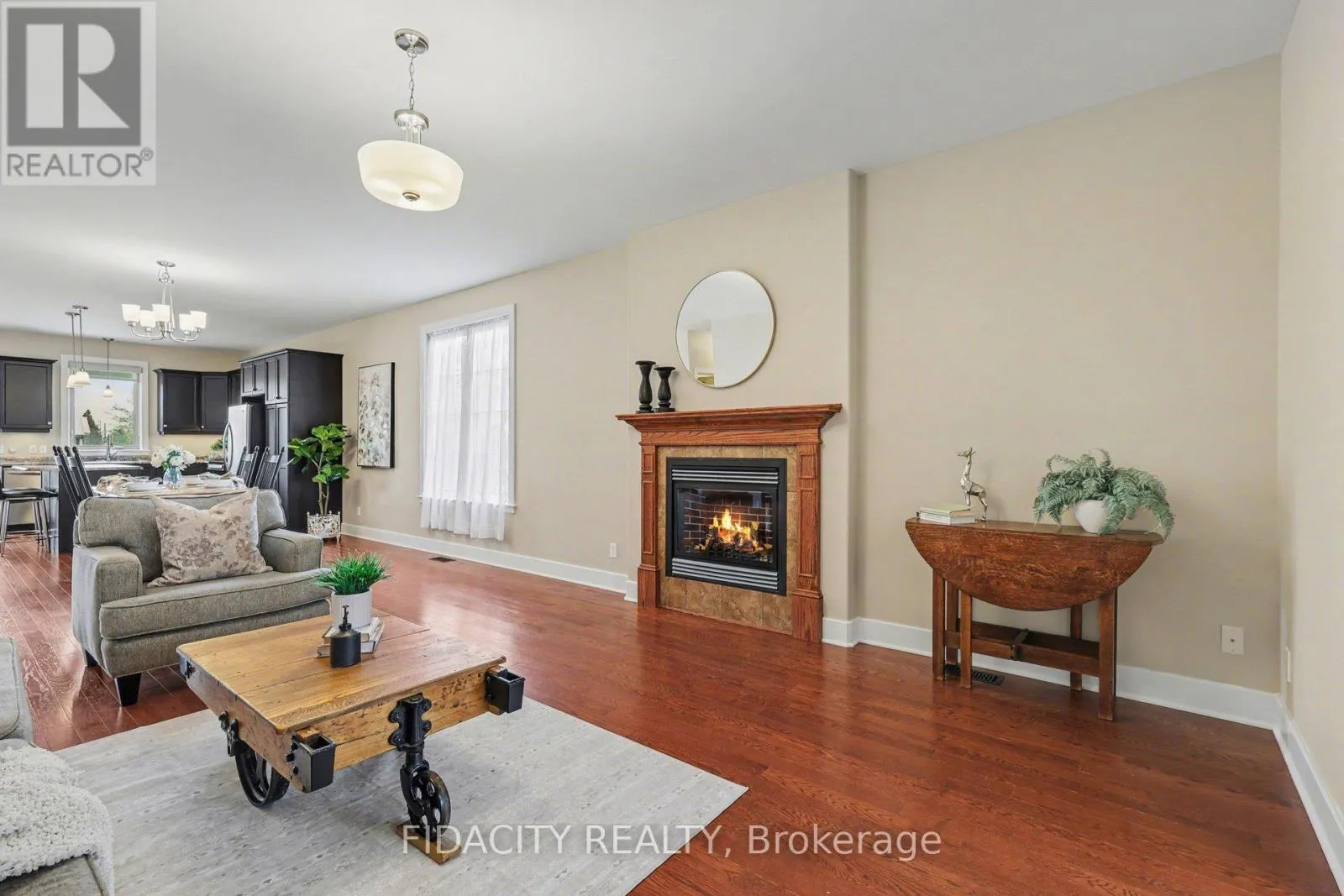 Cross Streets: Clothier St W. ** Directions: South on Clothier St W, right onto Galens Way. Tucked away on a quiet, cul-de-sac, this home offers a calm setting just steps from Kemptville's downtown amenities and schools. The front porch is a great spot to sit and unwind at the end of the day.Inside, the main floor is bright and open, with large windows pulling in tons of natural light. This accessible bungalow is thoughtfully designed for ease of movement, with everything you need conveniently located on one level. The layout flows easily between the kitchen, dining, and living areas, making it ideal for hosting or just everyday life. A gas fireplace adds a cozy focal point to the living space, while the kitchen features a breakfast bar, rich cabinetry, and access to the backyard.You will find 2 bedrooms on the main level, including a spacious primary with a beautifully updated ensuite and walk-in closet. The laundry room is conveniently located on the main floor with direct access to the garage.Downstairs offers even more flexibility, with a 3rd bedroom, additional finished space that can be used however you need (family room, office, or extra bedroom), a powder room, and plenty of storage.Backing directly onto a school, there are no direct rear neighbours, and lots of mature trees. Bonus features include a Generac backup generator and on-demand hot water for added comfort and peace of mind.Bright, functional, accessible and set in a great location! (Quality Lockwood Brothers build) This bungalow checks all the boxes. (id:27476)