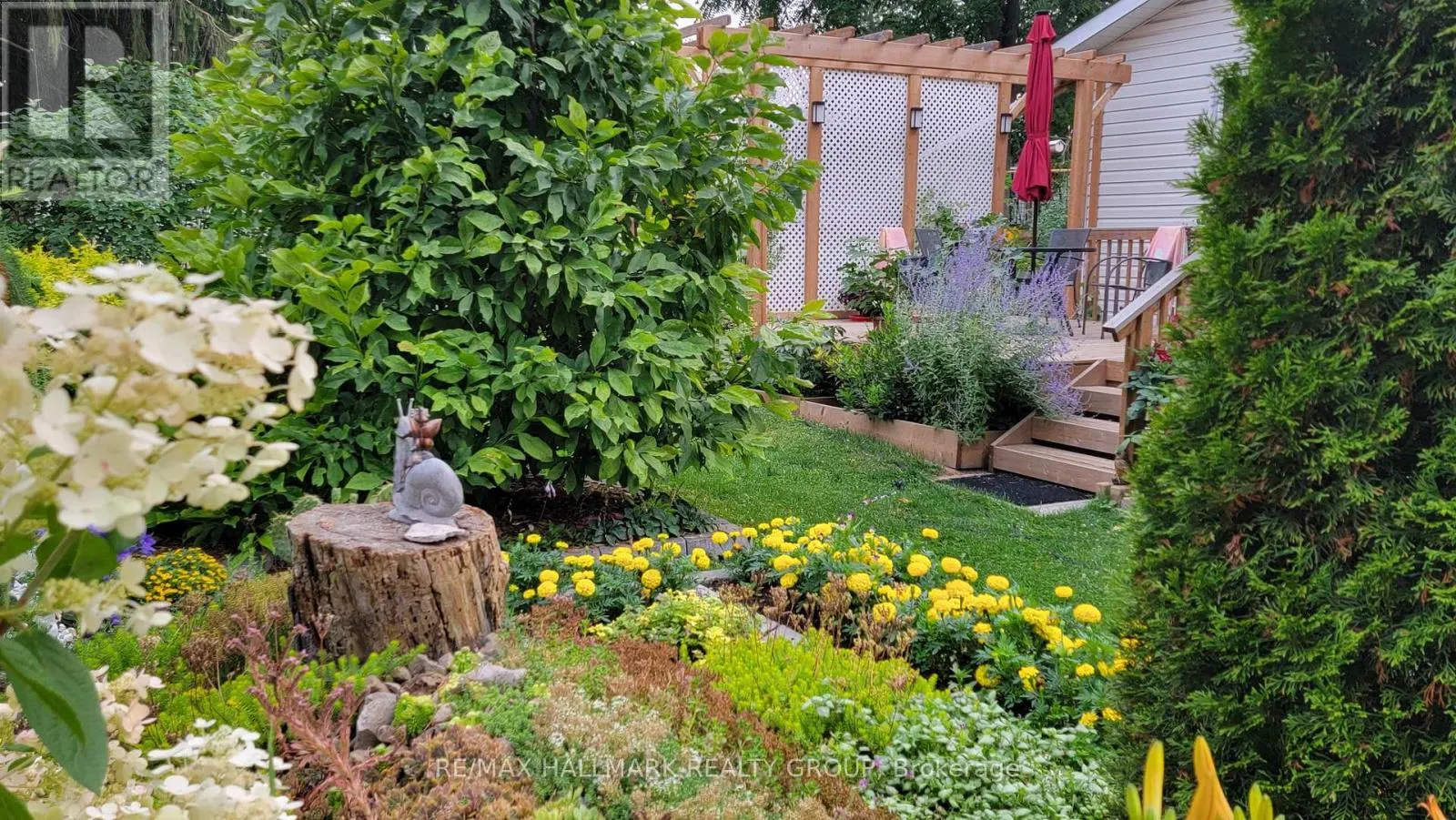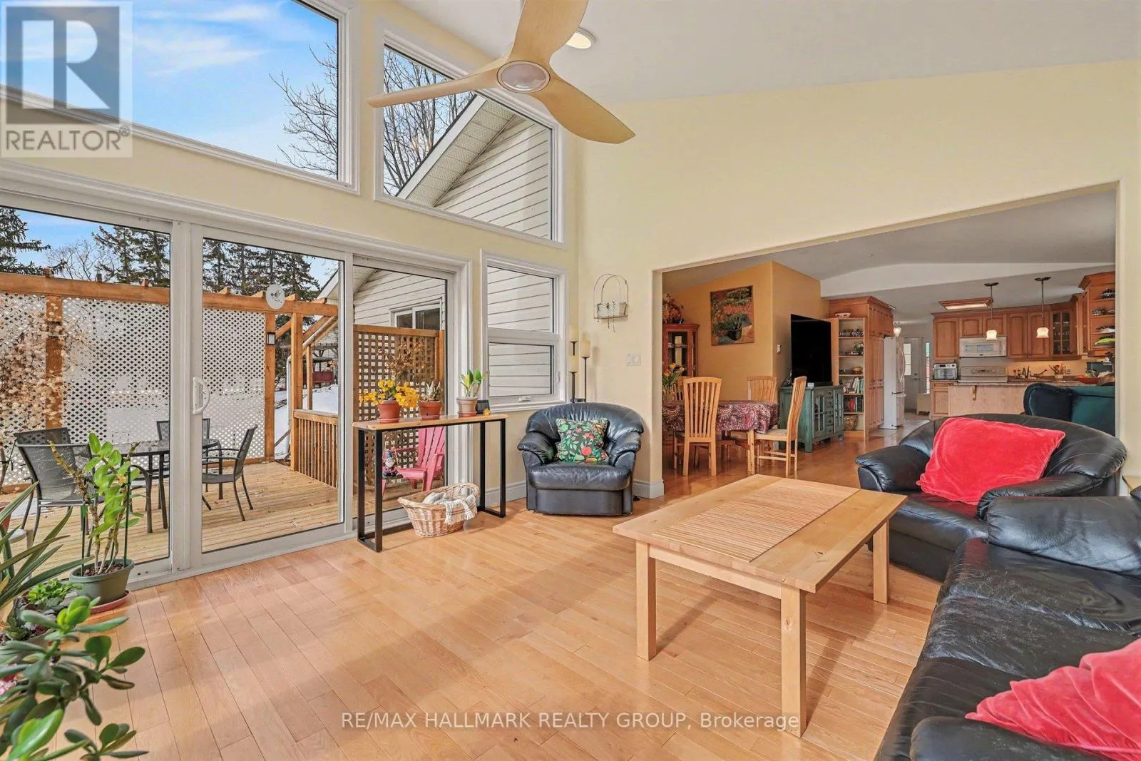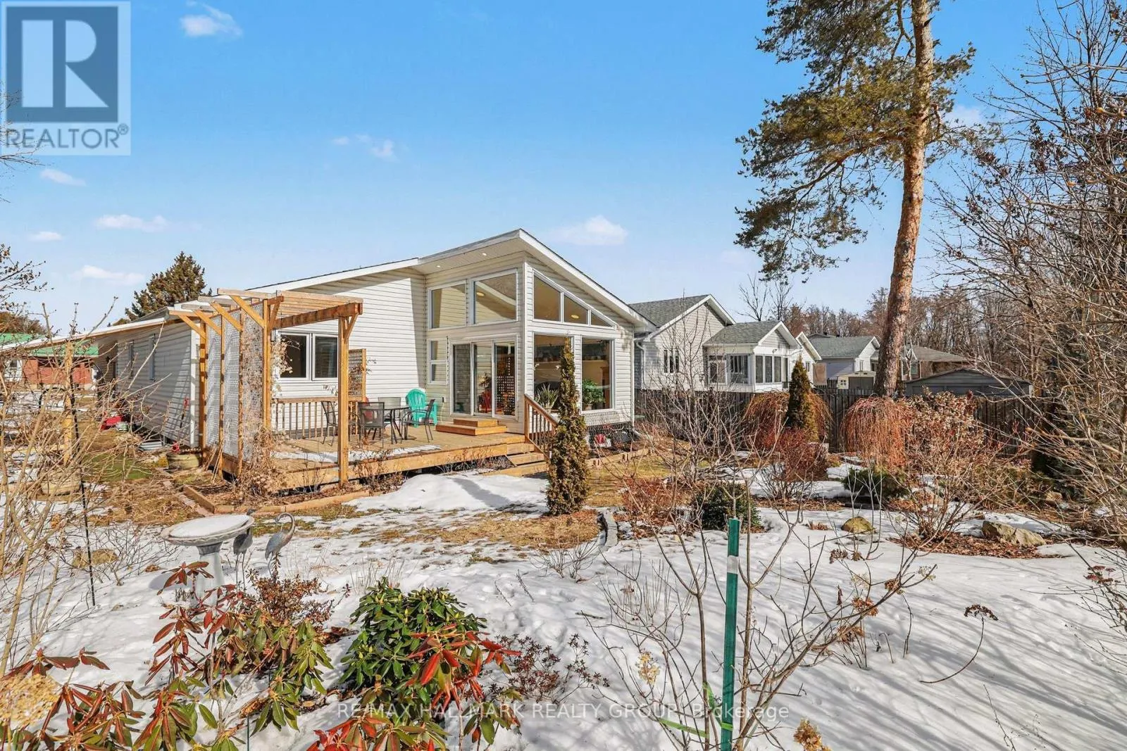 Cross Streets: Bridge St N. ** Directions: 416 - exit Hwy 43, left on Anniversary Way, left on Bridge St N, left on Clothier. A true gardener's paradise - this bungalow offers comfort, functionality, and charm in a family-friendly neighbourhood. The entrance foyer features tile flooring and convenient inside access to the attached double garage and the main floor office / den overlooking the front yard, providing the perfect space for working from home, a quiet retreat, or an orchid room :) The open-concept main level is thoughtfully designed with seamless sightlines from the kitchen through the living / dining areas and into the stunning family room addition. This sun-filled space is a true highlight, featuring vaulted ceilings, walls of windows, a cozy gas fireplace, and patio doors leading to a private deck-perfect for entertaining or relaxing while enjoying the backyard. The main floor offers two spacious bedrooms, including a large primary suite complete with a walk-in closet and 3-piece ensuite bath. A convenient main floor laundry room adds to the home's practical layout. Downstairs, the partially finished basement provides excellent additional living space with a third bedroom, a rec-room area, a 2-piece bathroom, and ample storage in the utility room. Comfort is ensured year-round with a natural gas furnace, central air conditioning, and radiant in-floor heating in the basement. When you step outside you'll discover a true gardener's paradise. The beautifully landscaped yard is filled with mature plants and vibrant perennials that bloom throughout the seasons, offering an ever-changing backdrop of colour and tranquility. Additional features include a newer roof (2018), on-demand hot water system, and a natural gas BBQ hook-up. Ideally located close to all of Kemptville's amenities, the Waterfront Trail, local cafés, and quick access to the 416, this home offers the perfect blend of small-town charm and commuter convenience. A wonderful opportunity to enjoy comfortable living in a picturesque setting. (id:27476)