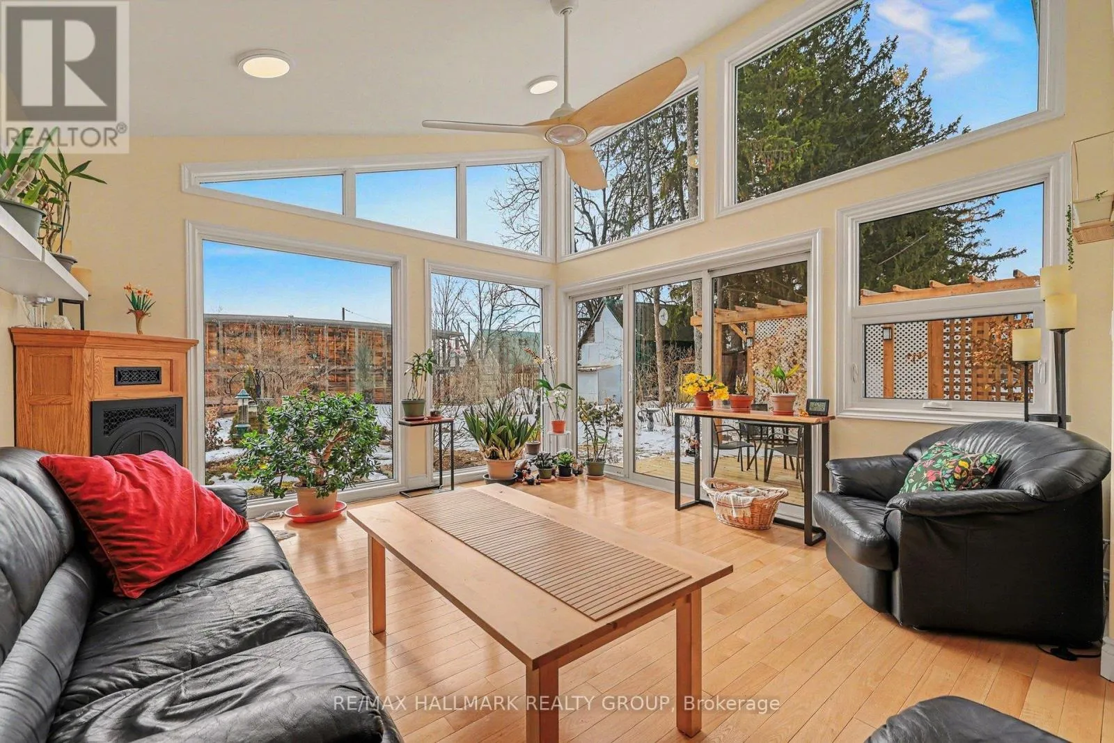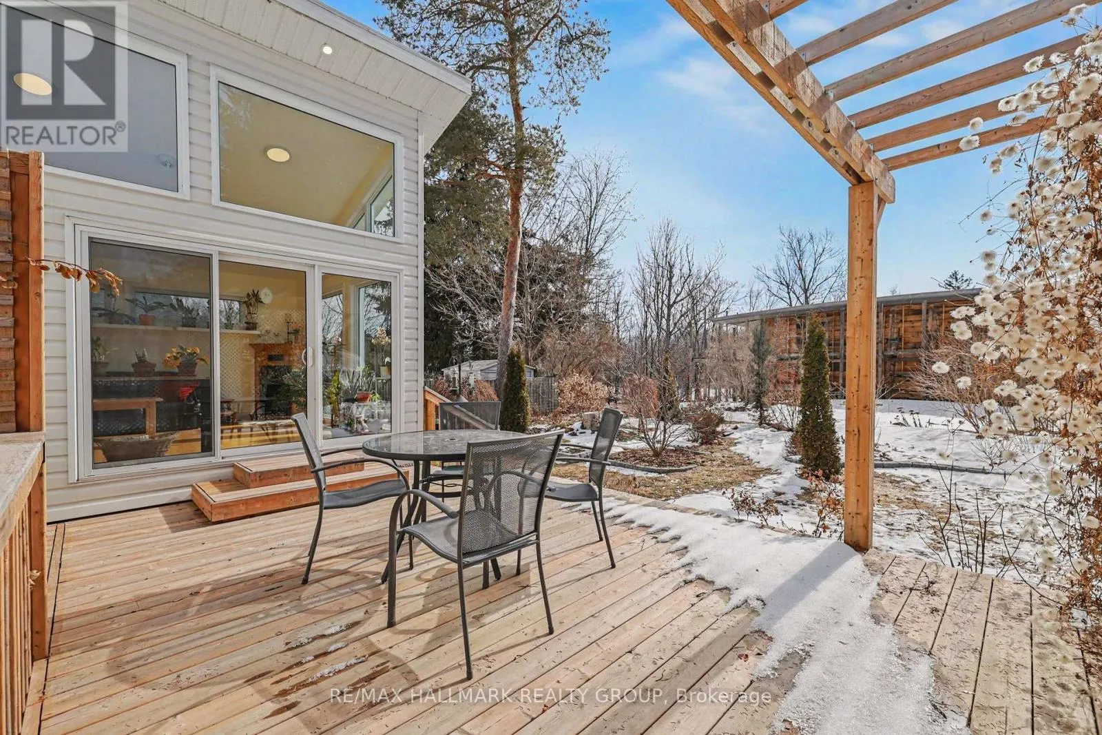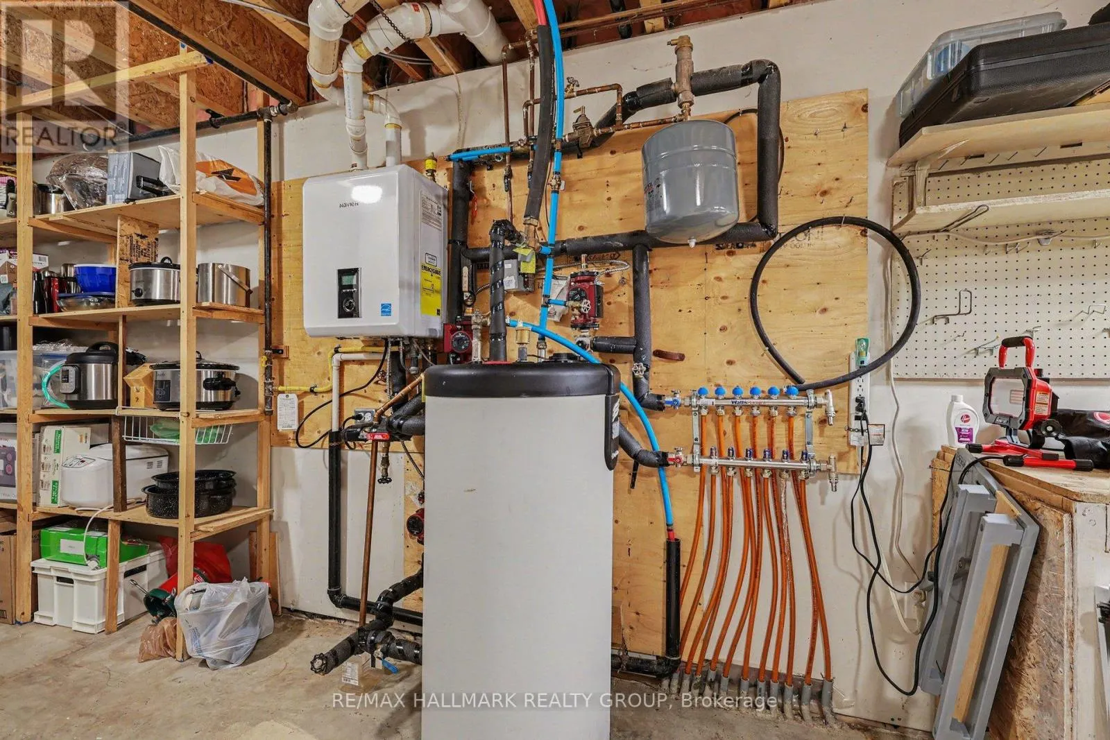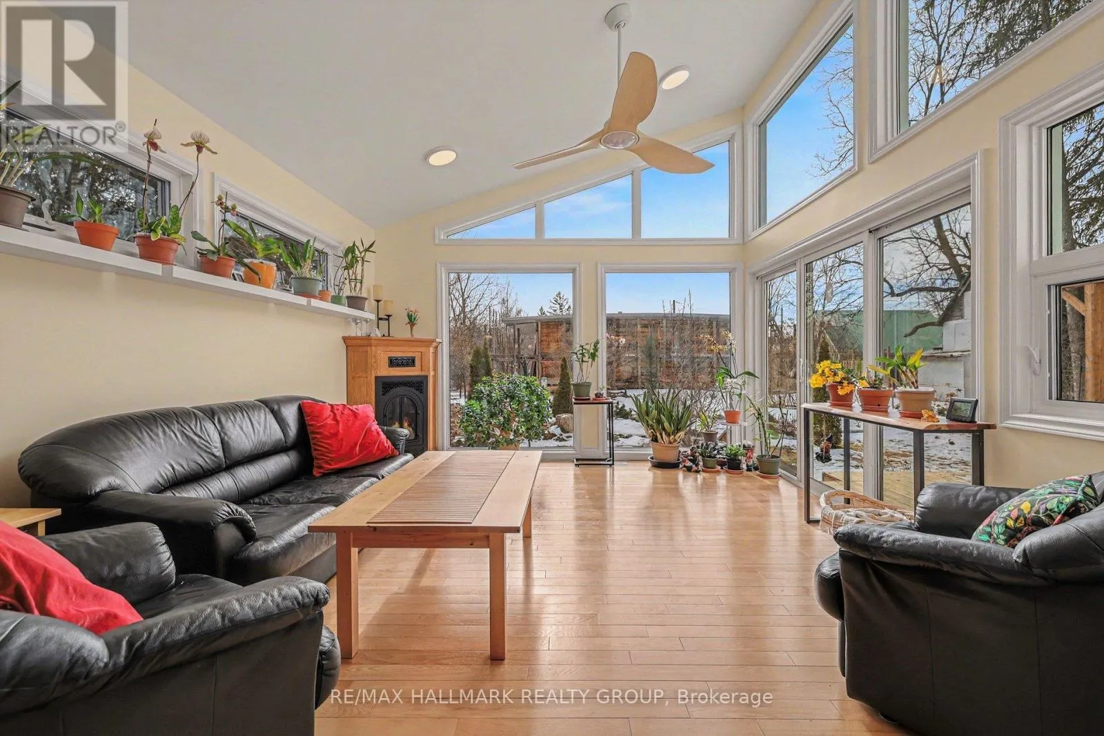 Cross Streets: Bridge St N. ** Directions: 416 - exit Hwy 43, left on Anniversary Way, left on Bridge St N, left on Clothier. A true gardener's paradise - this bungalow offers comfort, functionality, and charm in a family-friendly neighbourhood. The entrance foyer features tile flooring and convenient inside access to the attached double garage and the main floor office / den overlooking the front yard, providing the perfect space for working from home, a quiet retreat, or an orchid room :) The open-concept main level is thoughtfully designed with seamless sightlines from the kitchen through the living / dining areas and into the stunning family room addition. This sun-filled space is a true highlight, featuring vaulted ceilings, walls of windows, a cozy gas fireplace, and patio doors leading to a private deck-perfect for entertaining or relaxing while enjoying the backyard. The main floor offers two spacious bedrooms, including a large primary suite complete with a walk-in closet and 3-piece ensuite bath. A convenient main floor laundry room adds to the home's practical layout. Downstairs, the partially finished basement provides excellent additional living space with a third bedroom, a rec-room area, a 2-piece bathroom, and ample storage in the utility room. Comfort is ensured year-round with a natural gas furnace, central air conditioning, and radiant in-floor heating in the basement. When you step outside you'll discover a true gardener's paradise. The beautifully landscaped yard is filled with mature plants and vibrant perennials that bloom throughout the seasons, offering an ever-changing backdrop of colour and tranquility. Additional features include a newer roof (2018), on-demand hot water system, and a natural gas BBQ hook-up. Ideally located close to all of Kemptville's amenities, the Waterfront Trail, local cafés, and quick access to the 416, this home offers the perfect blend of small-town charm and commuter convenience. A wonderful opportunity to enjoy comfortable living in a picturesque setting. (id:27476)