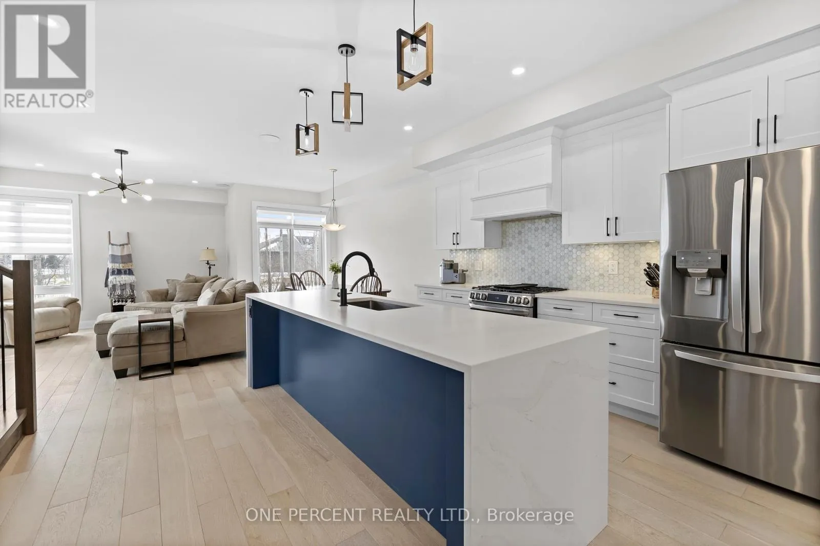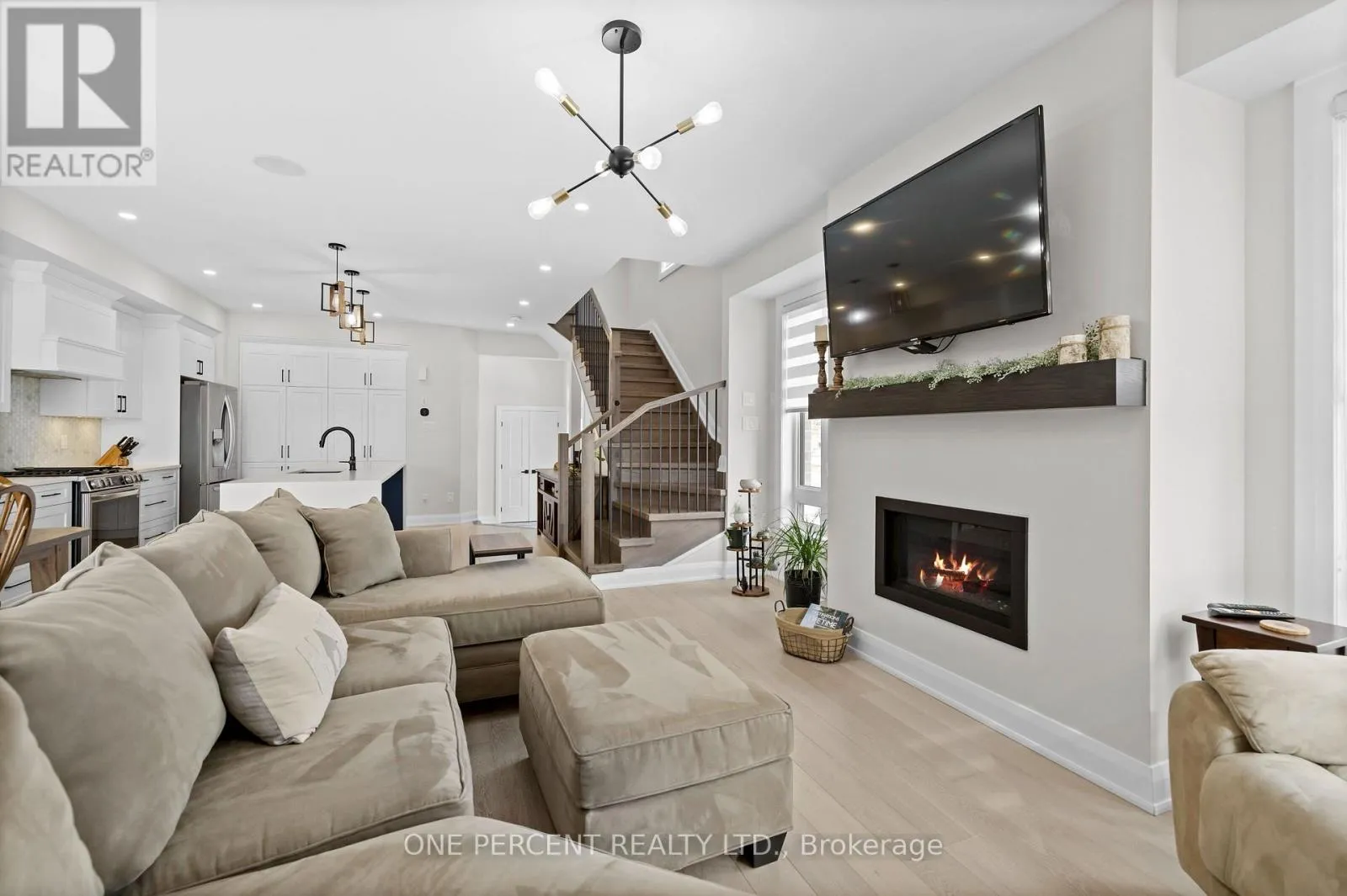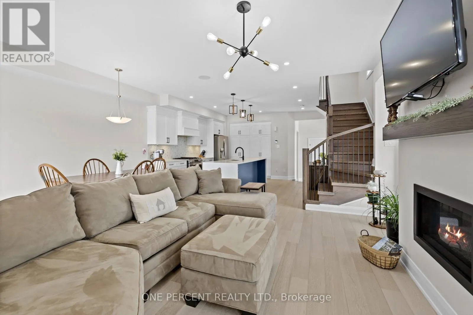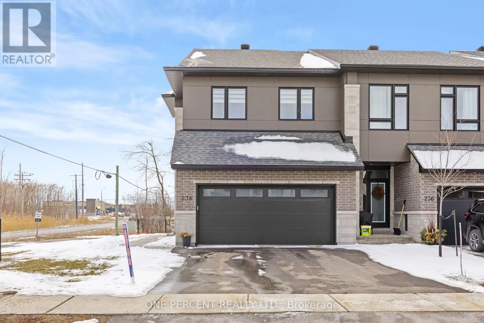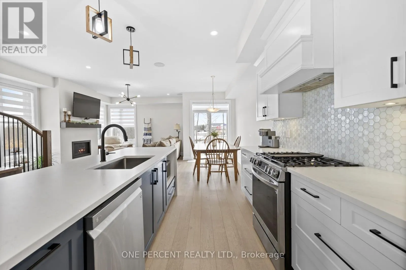 Cross Streets: Rideau River Rd & Bristol Crescent. ** Directions: 416 to Exit 43/Kemptville. West onto 43. Right onto Rideau River. Left onto Bristol Crescent. This Urbandale Da Vinci end unit in Kemptville's The Creek community checks the boxes that are genuinely hard to find together: a premium corner lot with NO REAR NEIGHBOURS, a double garage, and over 2,066 sq. ft. of stylish living space where the finishes do the talking. The main floor opens with a spacious foyer and sitting area, beautiful hardwood, and an open-concept layout that flows from the kitchen through to the backyard. The kitchen is the centrepiece, with quartz countertops, a tile backsplash, stainless steel appliances including a gas stove, and a large waterfall island with counter seating that anchors the space for both cooking and conversation. Built-in speakers in the living area and a gas fireplace set the tone for a space that's as comfortable for a quiet evening as it is for entertaining. Patio doors to the backyard off the dining room complete the space. Upstairs, no detail was spared, as hardwood continues throughout. The primary bedroom features a walk-in closet and a five-piece ensuite with soaker tub, a glass shower with designer tile, double sinks, and quartz counters. Two more bedrooms, one with a walk-in closet, share a full bath with quartz counters. A loft area works naturally as a home office or flex space, and laundry is conveniently located on this level. The basement adds comfortable living space with high ceilings, while offering lots of storage. For families ready to move into something special, this is the home that delivers on every front, in a vibrant community minutes from shopping, restaurants, walking trails, and the Kemptville Creek, with easy access to Hwy 416 for the Ottawa commute. Explore the virtual tour and book your private showing today. (id:27476)