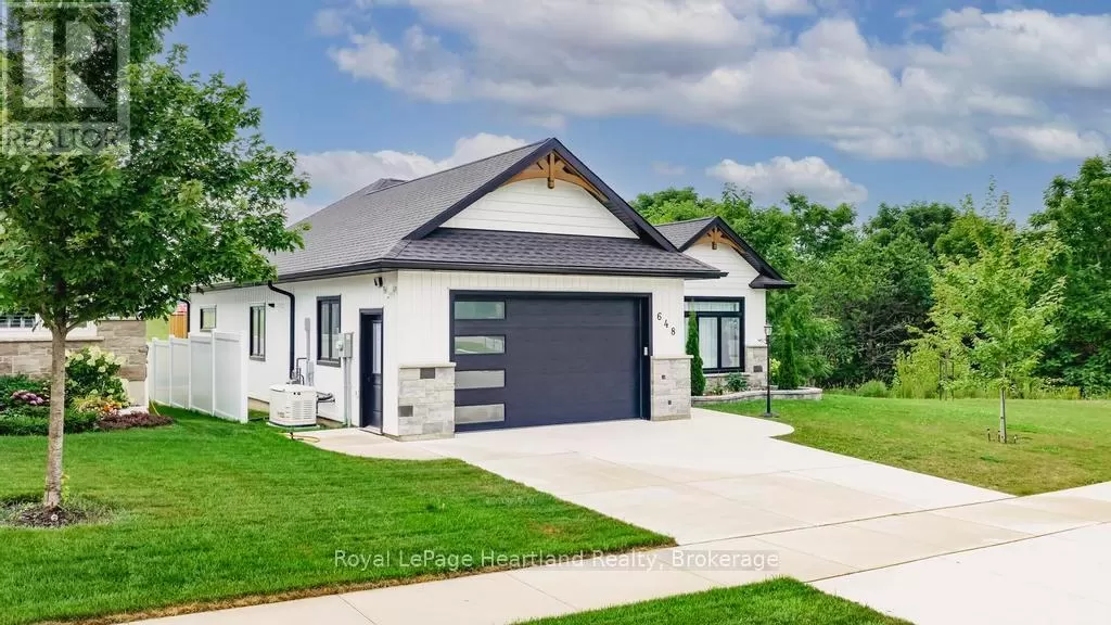 Cross Streets: Hwy 4 and North St. ** Directions: Coming in on Highway 4 into Blyth, turn East on North St., home is at the end on Gloria St. Watch for sign. Ready to downsize without compromise? Welcome to 648 Gloria Street recently built in 2021/22 , this zero-step bungalow designed for easy living, total comfort, and everyday luxury. Located on a quiet cul-de-sac in one of Blyths most desirable neighbourhoods, this home backs onto breathtaking country views, offering the peaceful, /scenic lifestyle youve worked so hard for.This thoughtfully designed 2-bedroom, 2-bath home checks all the boxes: spacious, stylish, and accessible. Youll love the open-concept layout with luxury vinyl plank flooring, tiled showers, a cozy feature fireplace, and a modern kitchen with quartz countertops and top-of-the-line stainless steel appliances perfect for hosting friends or enjoying quiet evenings in.The primary suite offers a generous walk-in closet and a private ensuite, while the second bedroom makes the ideal guest room, office, or hobby space. Main-floor laundry, no stairs anywhere, and a practical layout make daily life a breeze.But the best part? Step outside to your own private deck oasis the perfect spot to sip your morning coffee, take in sunrise views over the fields, or unwind after a day spent exploring the area.Additional features like a full-home backup generator, attached garage, and Tarion Warranty mean you can truly relax and enjoy a low-maintenance, worry-free lifestyle.Blyth is a hidden gem for retirees home to the award-winning Cowbell Brewing Co., the famous Blyth Festival Theatre, scenic walking trails, friendly neighbours, and all the charm of small-town Ontario. Plus, youre only 20 minutes from the stunning beaches of Lake Huron.Whether youre retiring, right-sizing, or simply craving a simpler, more beautiful way of life this home has it all. You won't want to miss this one! (id:27476)