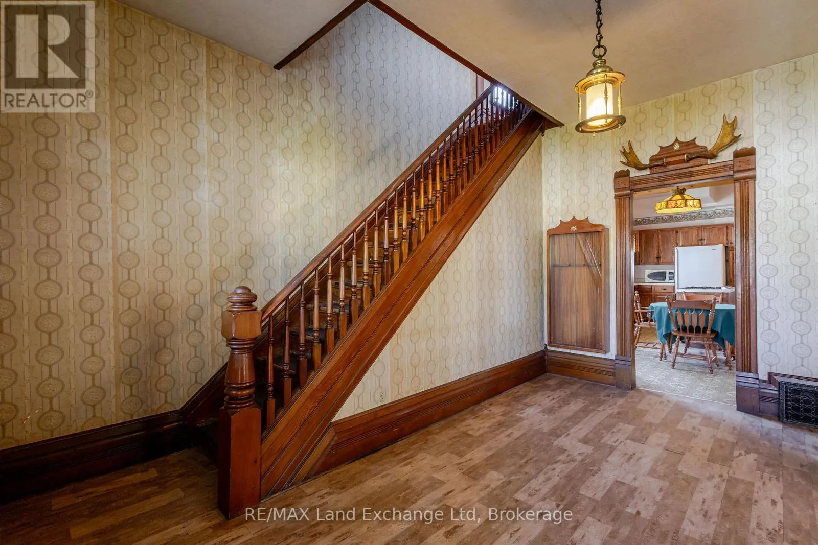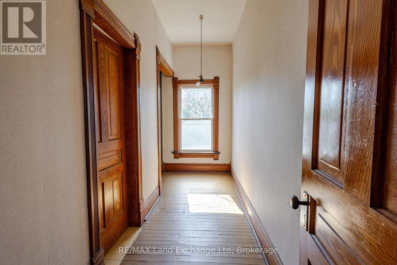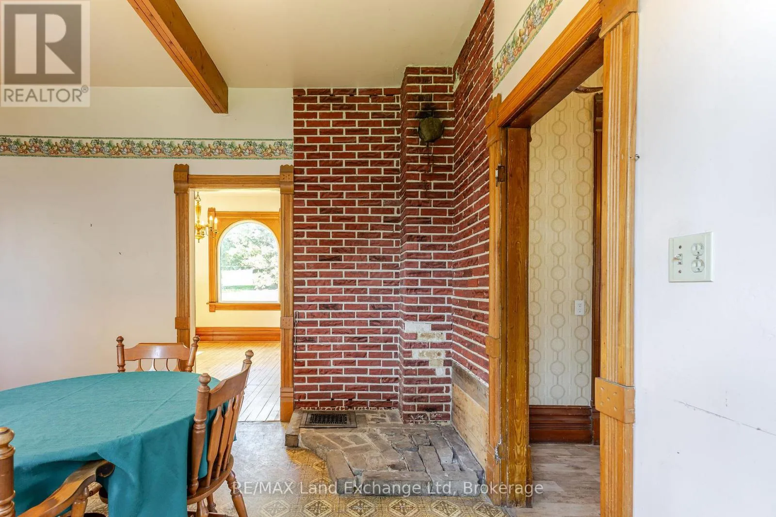 Cross Streets: Queen St and Westmoreland St. ** Directions: Main Street Blyth, on the East side. *New breaker panel and 100 amp service has been installed, August 2025.* Welcome to this enchanting 2-storey red brick home, located in the charming town of Blyth. Built roughly 100 years ago, this residence showcases remarkable woodwork that remains in pristine condition, reflecting the craftsmanship of a bygone era. Featuring 3 spacious bedrooms and 2 bathrooms, completed by impressive 9.5 ft ceilings on both levels, creating an airy and inviting atmosphere. The large front porch invites you to unwind while enjoying the serene surroundings. Recent updates include a new metal roof, newer windows in the living and dining rooms and a newer gas furnace, adding both durability and energy efficiency. While some areas of the home may benefit from modernization, this property presents an excellent opportunity to blend classic charm with your personal touch. Embrace the potential of this lovely home, where history meets opportunity in the delightful community of Blyth! (id:27476)