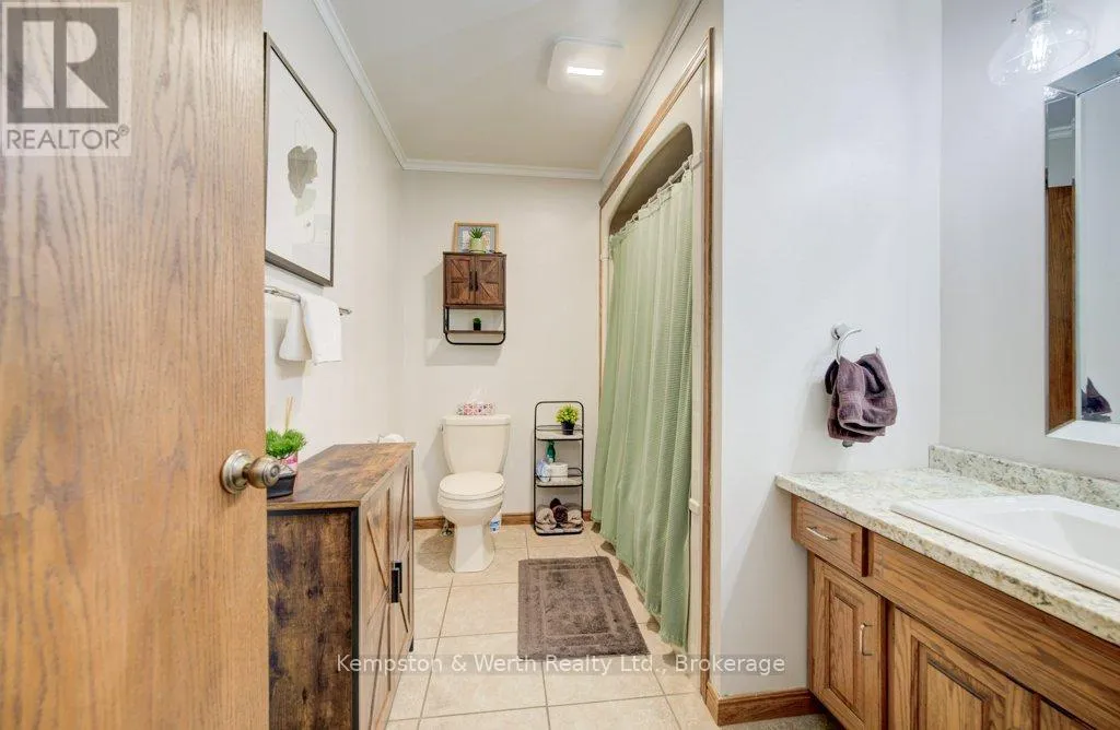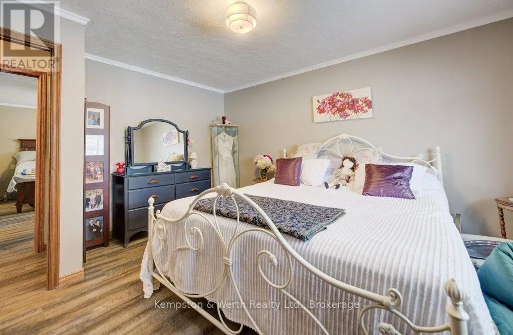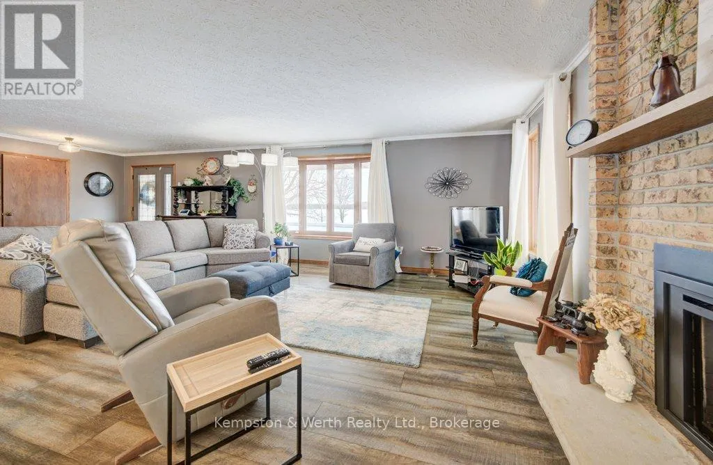 Cross Streets: London Rd & Lloyd Street. ** Directions: Lloyd Street. Welcome to 1A Crawford Street, where executive living meets peaceful country charm at the end of a quiet dead-end street just outside of Wingham. This all-brick bungalow offers privacy, space, and refined finishes while remaining minutes from town amenities, the hospital, Maitland Links Golf Course, Lake Huron, and the Blyth Festival, with easy access to London, Kitchener, Waterloo, and Cambridge. The bright open-concept main floor is ideal for everyday living and entertaining, featuring a custom kitchen with quartz countertops, built-in appliances, pantry storage, a breakfast bar island, and coffee bar, flowing into a warm living area anchored by a natural gas fireplace and beautiful brick hearth. The spacious primary bedroom includes a walk-in closet with built-in organizers and a private 4-piece ensuite, complemented by two additional bedrooms, a second main floor bathroom, and convenient main-floor laundry. The fully finished basement adds incredible versatility with a natural gas 'woodstove', expansive recreation and bar area, pool table space, a soundproof office, additional bathroom, and ample storage. Outside, enjoy a private composite deck surrounded by mature maples and sweeping farmland views, along with a covered front porch, landscaped yard, gardens, fire pit area, and oversized double garage. Thoughtfully upgraded, energy efficient, and offering a flexible closing, this exceptional home delivers comfort, functionality, and a serene setting in one impressive package. (id:27476)
