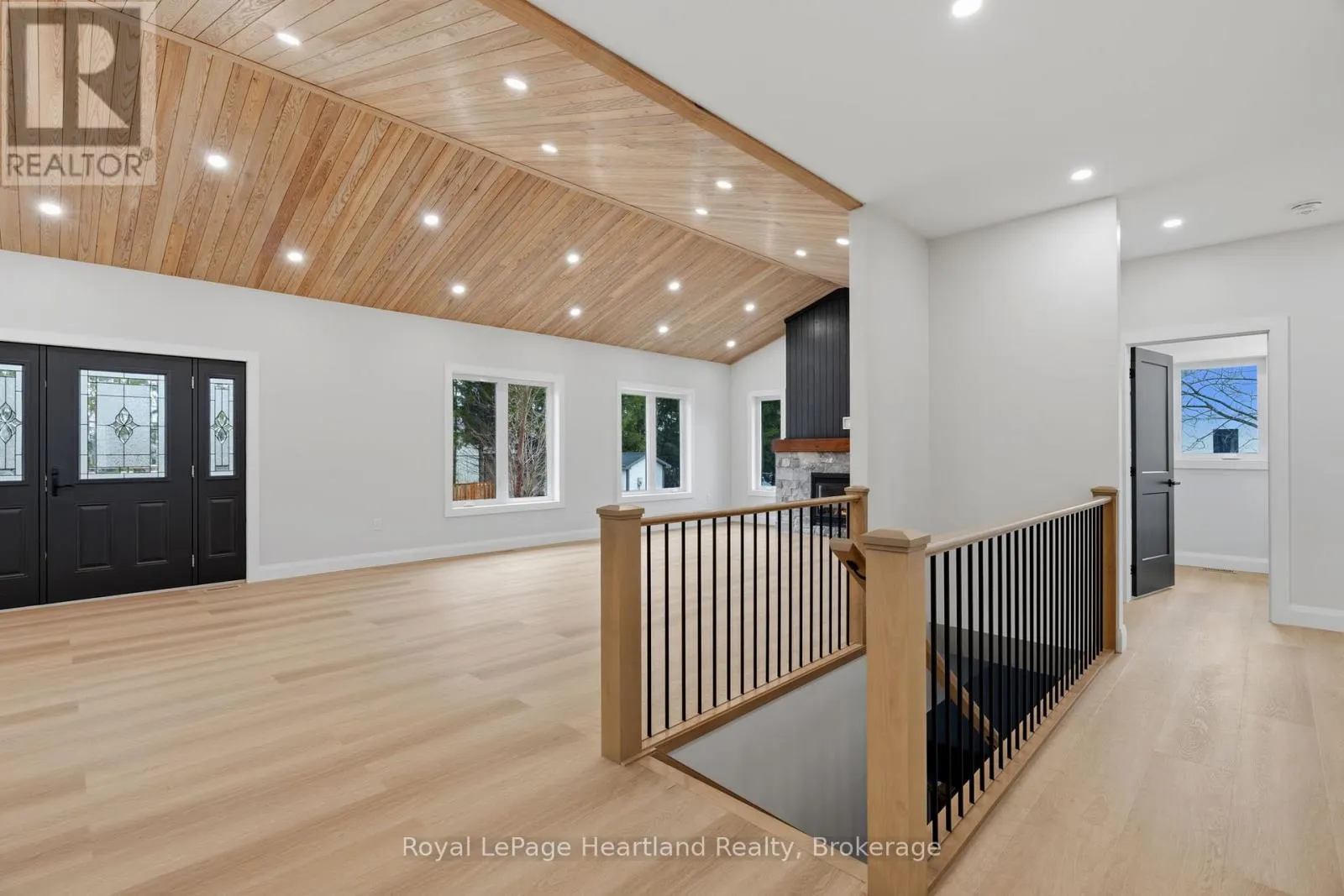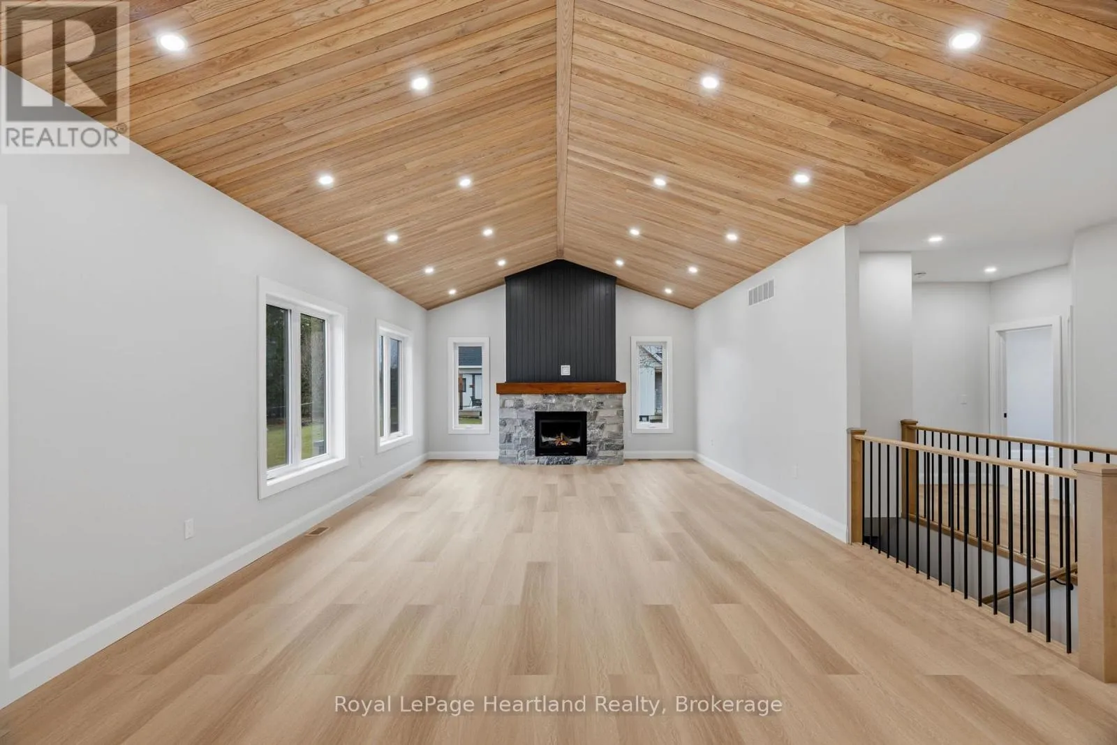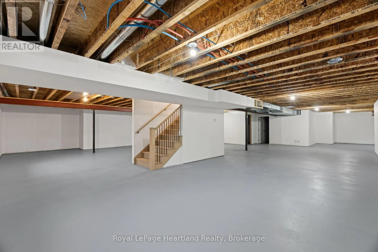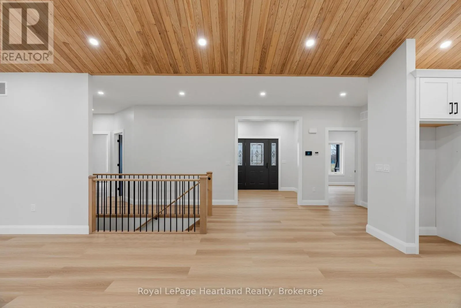Cross Streets: West. ** Directions: Take Turnberry ST to the end of Turnberry ST property on South side. Welcome to a home where exceptional craftsmanship meets everyday comfort, set in a peaceful, established neighbourhood known for its strong sense of community. Step inside to a spacious foyer leading to a stunning main living space with soaring ash cathedral ceilings and a floor-to-ceiling stone fireplace-warm, inviting, and designed to impress. Offering over 2,500 sq ft, the open-concept kitchen and living area features a custom kitchen with large island, quartz counter tops, and seamless flow-ideal for entertaining. Walk out to the covered porch.The primary suite is privately located on its own wing, offering an oversized retreat with a massive walk-in closet and a luxurious 5-piece en suite with stand-alone tub. On the opposite end, two additional bedrooms are spacious, bright, and complete with large closets. Main floor laundry is tucked away with its own door, and a versatile flex room offers space for a home office, den, or additional living area. The lower level is well underway with a wide-open layout, drywall completed, and bathroom rough-in-ready for your finishing touches and future living space. Built with efficiency and long-term performance in mind, this home features a high-end mechanical system including in-floor heating, heat pump, furnace, on-demand hot water heater, and water softener-delivering year-round comfort and peace of mind. Complete with a triple car garage with Trusscore finish, this home is built by Joe Reinhardt Construction, known for exceptional quality, thoughtful upgrades, and A1 workmanship throughout. Set on a street where neighbours know each other by name-this is more than a home, it's a lifestyle. (id:27476)