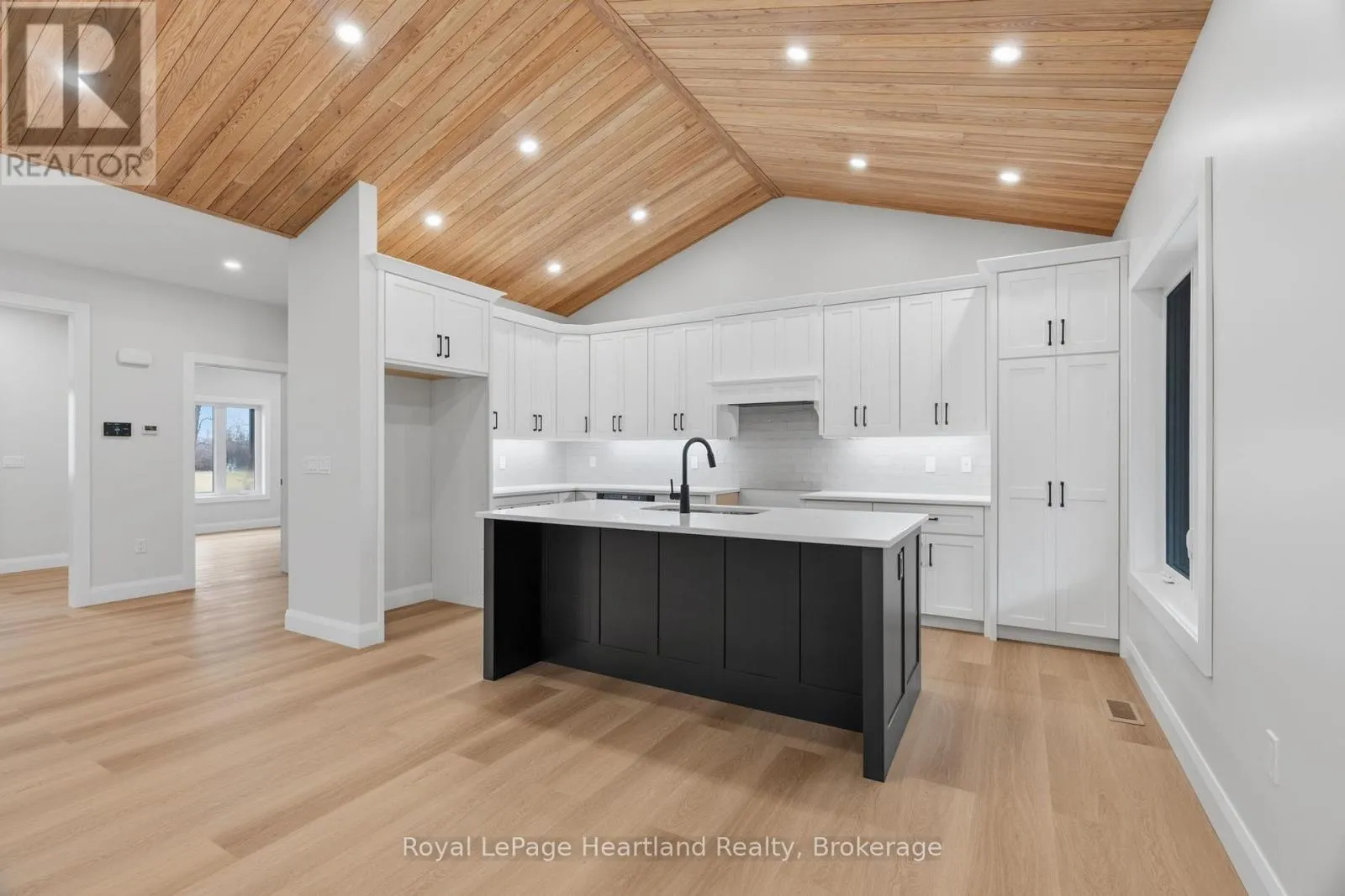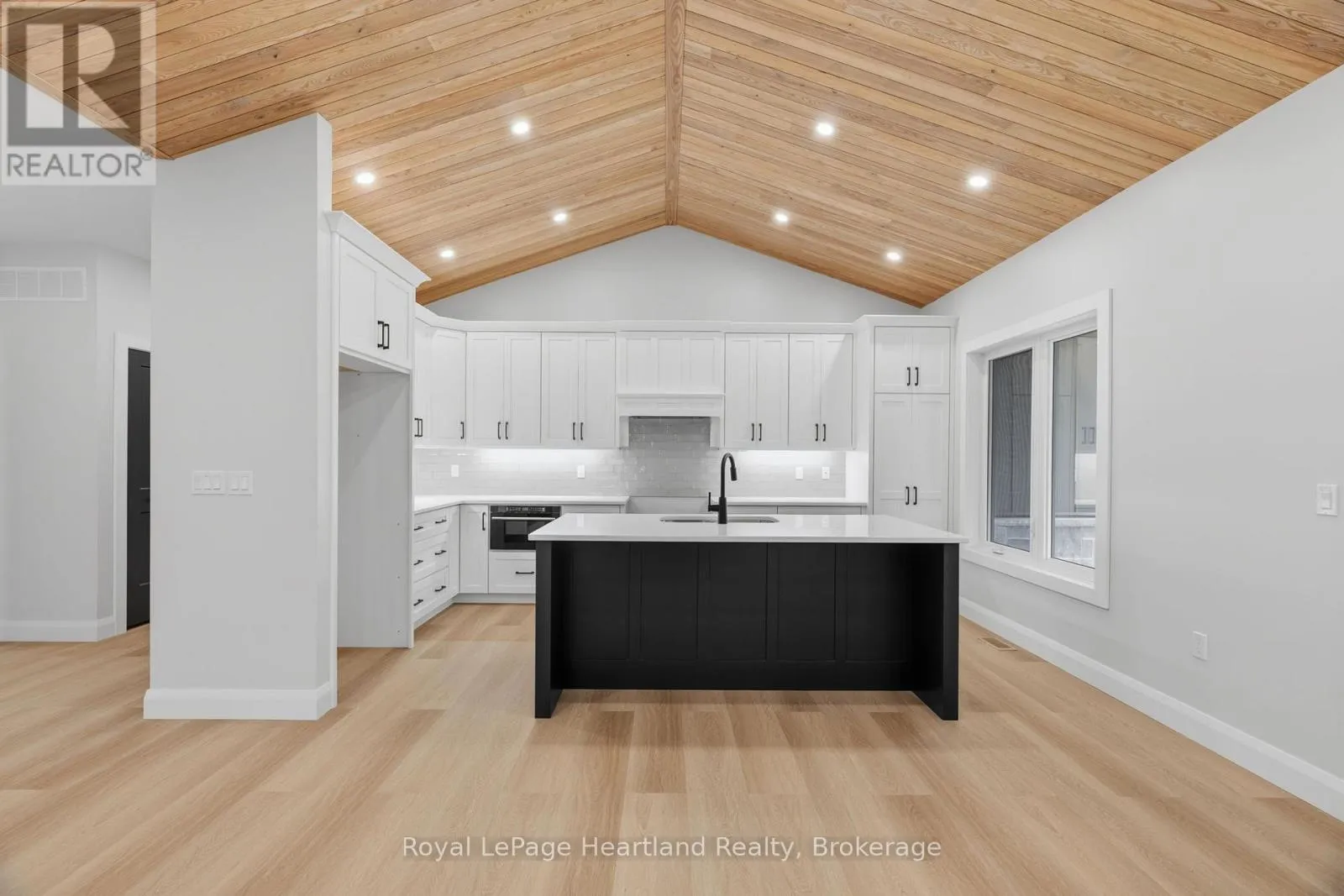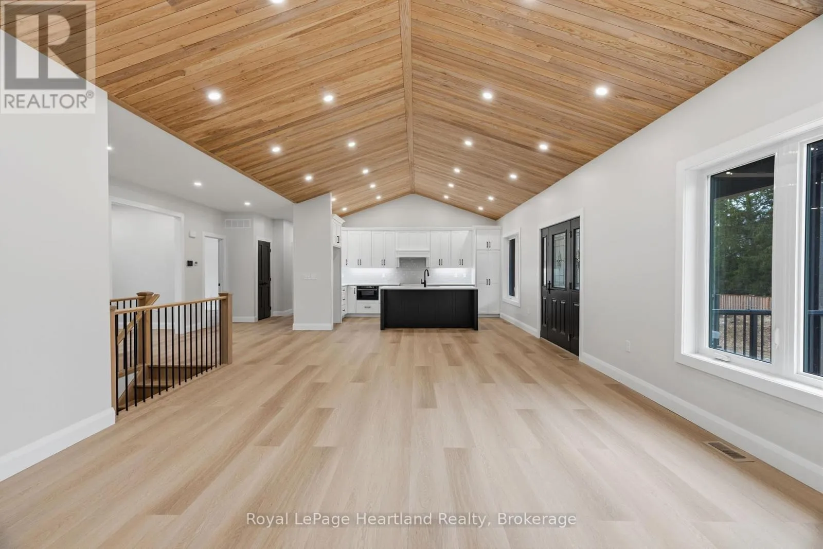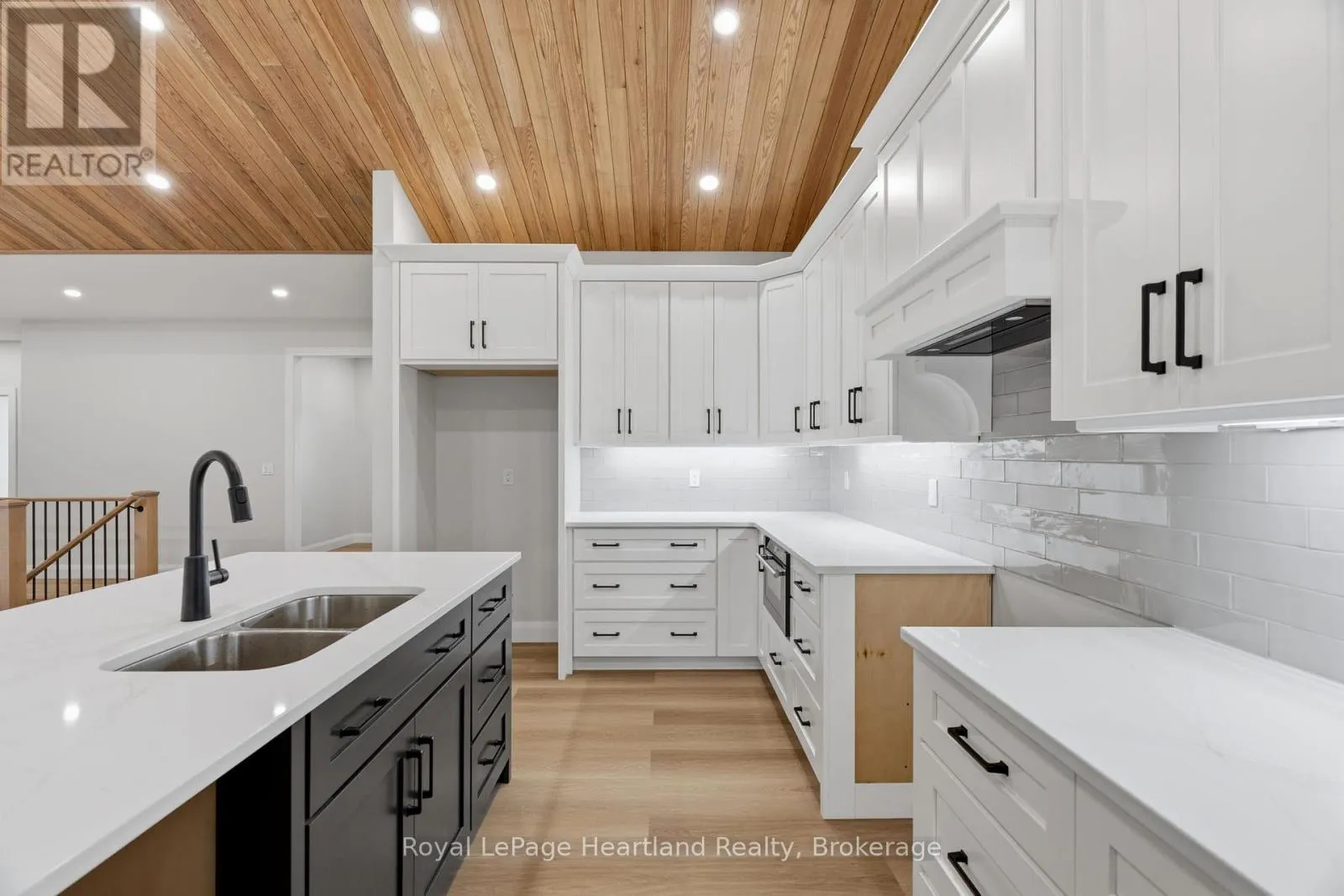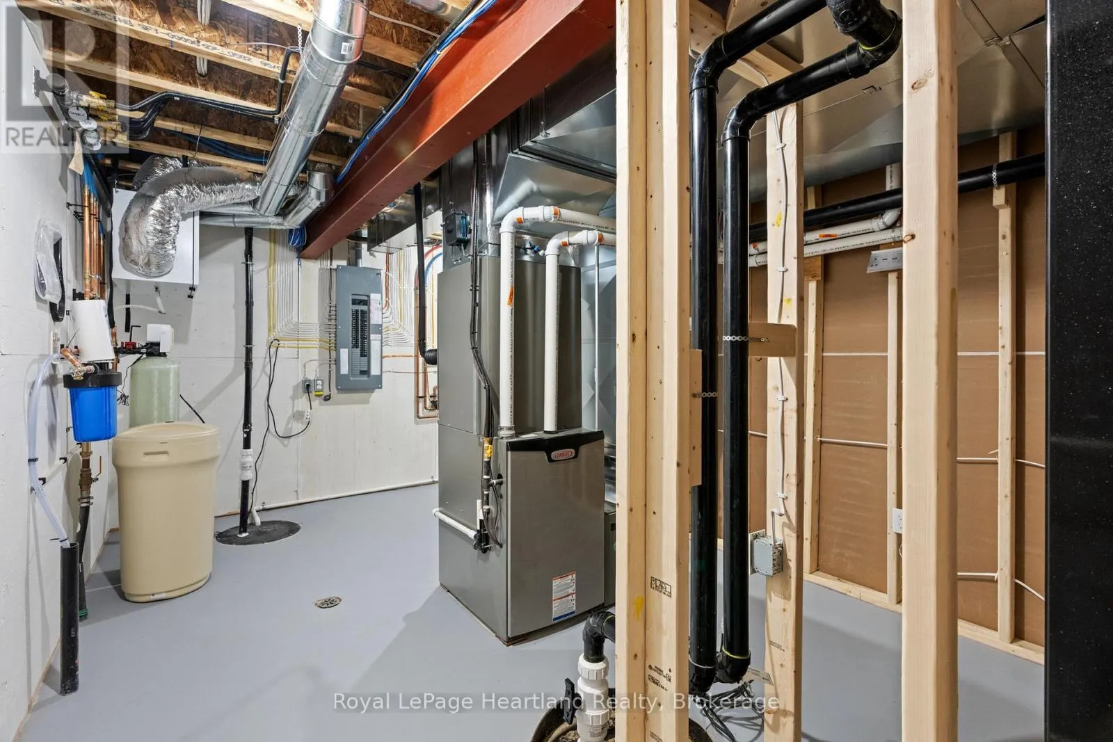 Cross Streets: West. ** Directions: Take Turnberry ST to the end of Turnberry ST property on South side. Welcome to a home where exceptional craftsmanship meets everyday comfort, set in a peaceful, established neighbourhood known for its strong sense of community. Step inside to a spacious foyer leading to a stunning main living space with soaring ash cathedral ceilings and a floor-to-ceiling stone fireplace-warm, inviting, and designed to impress. Offering over 2,500 sq ft, the open-concept kitchen and living area features a custom kitchen with large island, quartz counter tops, and seamless flow-ideal for entertaining. Walk out to the covered porch.The primary suite is privately located on its own wing, offering an oversized retreat with a massive walk-in closet and a luxurious 5-piece en suite with stand-alone tub. On the opposite end, two additional bedrooms are spacious, bright, and complete with large closets. Main floor laundry is tucked away with its own door, and a versatile flex room offers space for a home office, den, or additional living area. The lower level is well underway with a wide-open layout, drywall completed, and bathroom rough-in-ready for your finishing touches and future living space. Built with efficiency and long-term performance in mind, this home features a high-end mechanical system including in-floor heating, heat pump, furnace, on-demand hot water heater, and water softener-delivering year-round comfort and peace of mind. Complete with a triple car garage with Trusscore finish, this home is built by Joe Reinhardt Construction, known for exceptional quality, thoughtful upgrades, and A1 workmanship throughout. Set on a street where neighbours know each other by name-this is more than a home, it's a lifestyle. (id:27476)