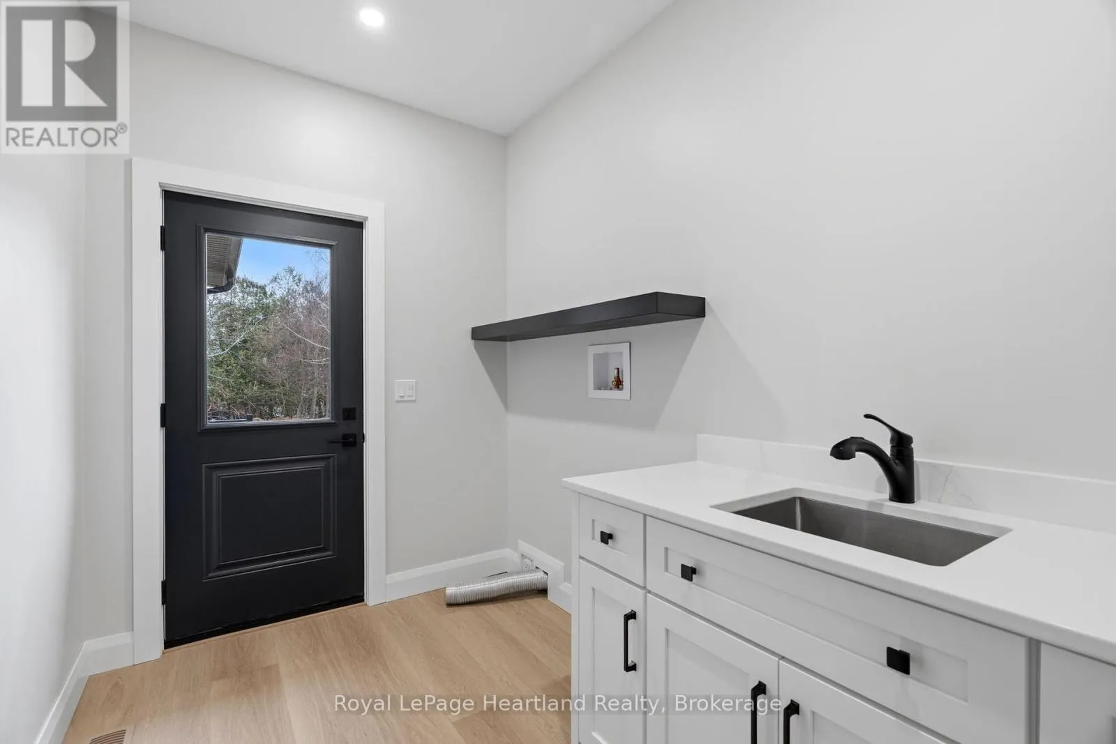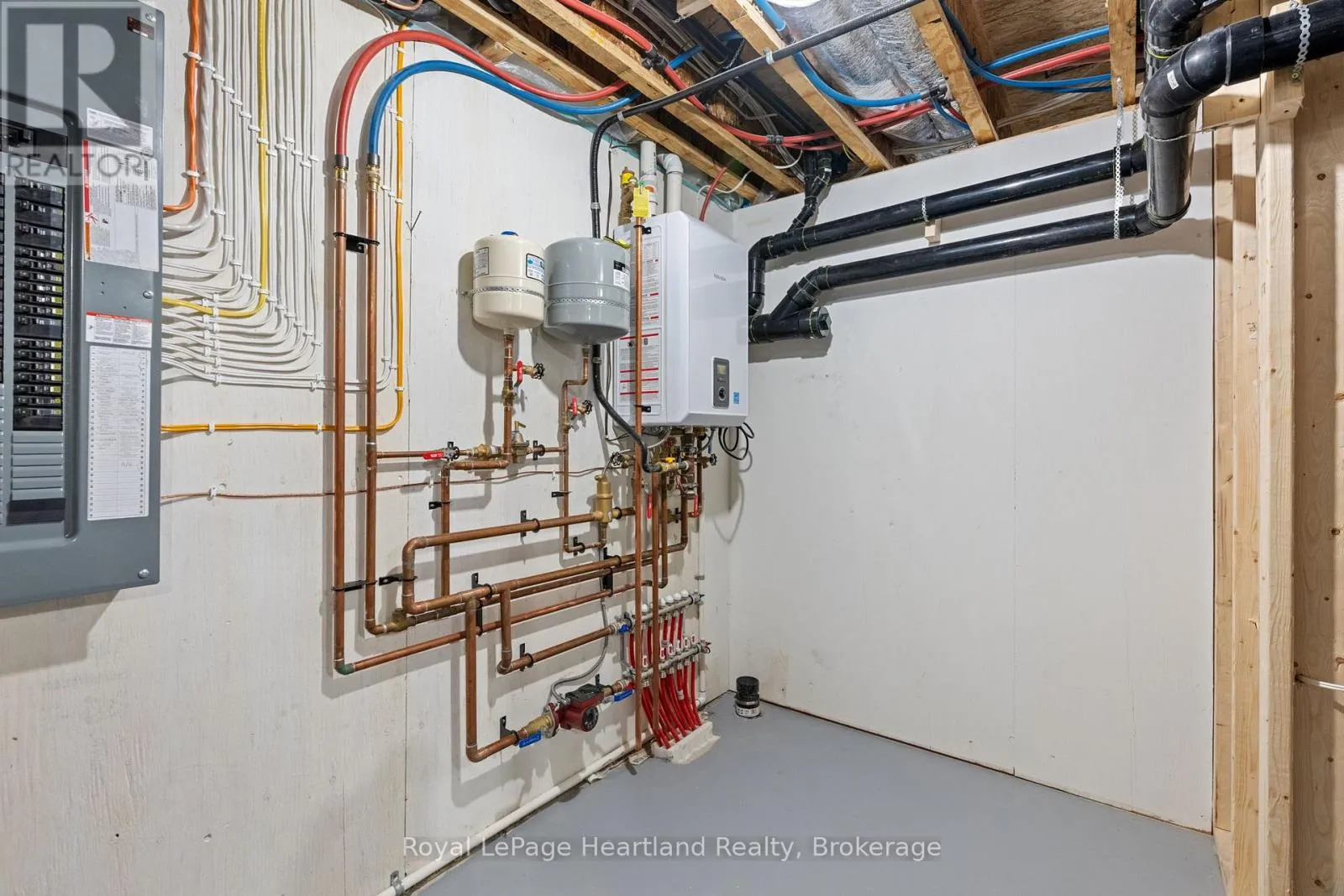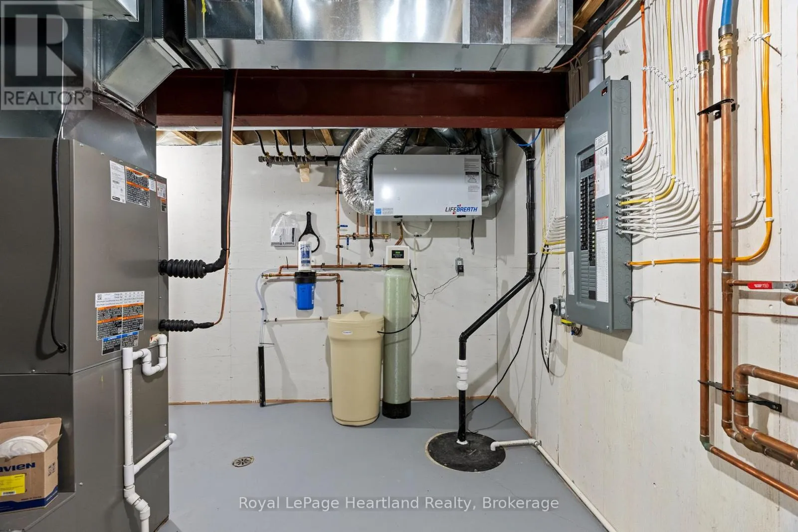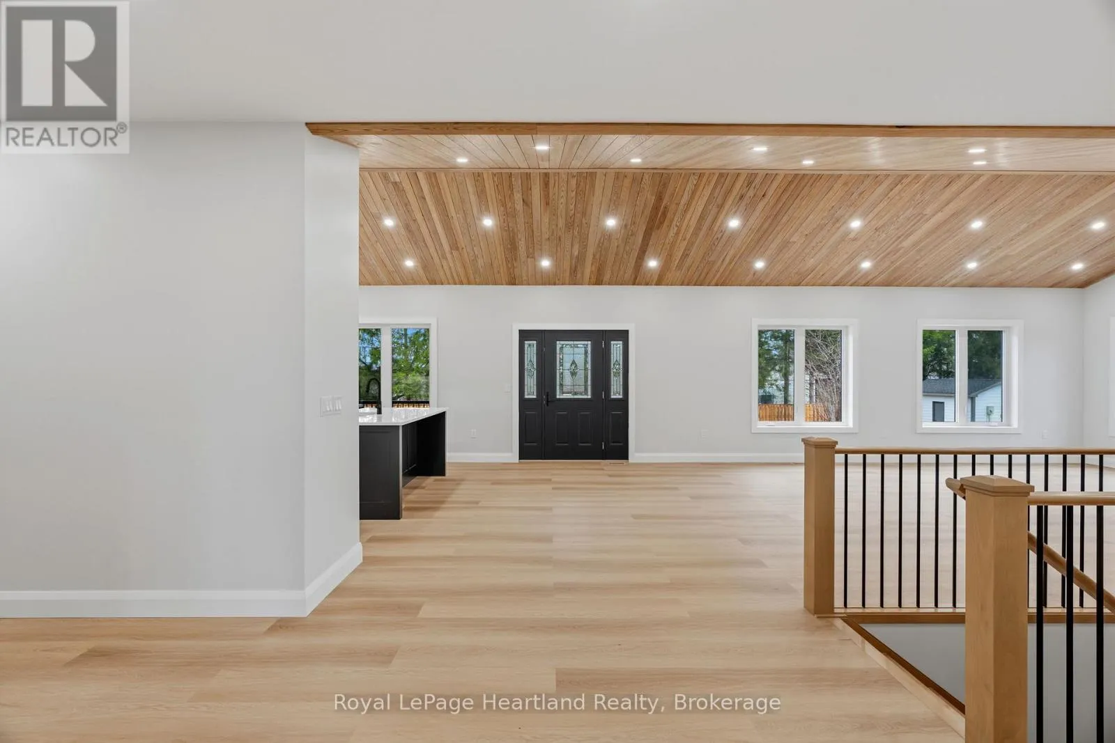 Cross Streets: West. ** Directions: Take Turnberry ST to the end of Turnberry ST property on South side. Welcome to a home where exceptional craftsmanship meets everyday comfort, set in a peaceful, established neighbourhood known for its strong sense of community. Step inside to a spacious foyer leading to a stunning main living space with soaring ash cathedral ceilings and a floor-to-ceiling stone fireplace-warm, inviting, and designed to impress. Offering over 2,500 sq ft, the open-concept kitchen and living area features a custom kitchen with large island, quartz counter tops, and seamless flow-ideal for entertaining. Walk out to the covered porch.The primary suite is privately located on its own wing, offering an oversized retreat with a massive walk-in closet and a luxurious 5-piece en suite with stand-alone tub. On the opposite end, two additional bedrooms are spacious, bright, and complete with large closets. Main floor laundry is tucked away with its own door, and a versatile flex room offers space for a home office, den, or additional living area. The lower level is well underway with a wide-open layout, drywall completed, and bathroom rough-in-ready for your finishing touches and future living space. Built with efficiency and long-term performance in mind, this home features a high-end mechanical system including in-floor heating, heat pump, furnace, on-demand hot water heater, and water softener-delivering year-round comfort and peace of mind. Complete with a triple car garage with Trusscore finish, this home is built by Joe Reinhardt Construction, known for exceptional quality, thoughtful upgrades, and A1 workmanship throughout. Set on a street where neighbours know each other by name-this is more than a home, it's a lifestyle. (id:27476)
