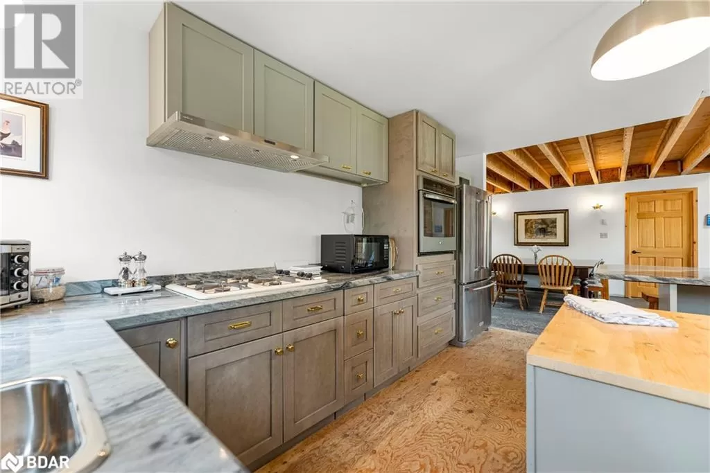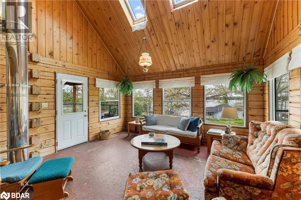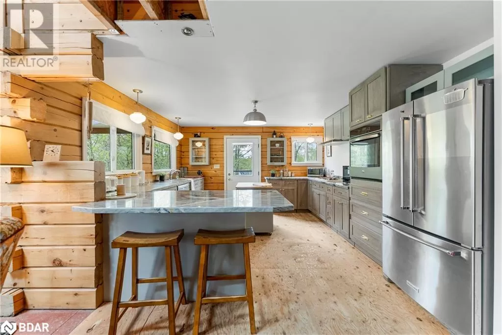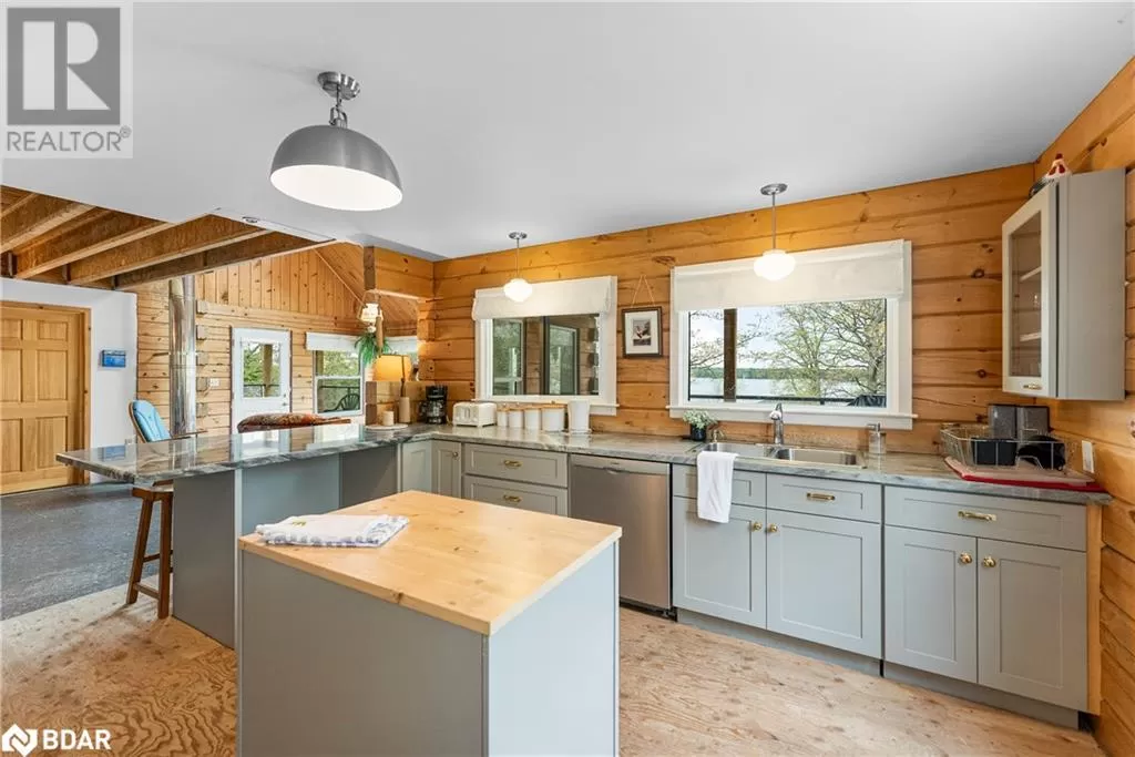 CTY RD 6 OR NORTHEYS BAY RD TO HULL'S ROAD Gorgeous views over Stoney Lake from this large log home situated on a lovely .73 Acre lot. So much potential here - the ideal home for someone looking to finish to their own liking! Five mins to Quarry Bay Beach & Petroglyph's Provincial Park, Community Centre/Library/sports courts, restaurants, Marina's +++ Approx 3400 sq ft including walkout lower level with 10 ft ceilings - propane furnace, steel roof, ICF foundation, 200 amp hydro, two covered decks + a covered patio, large kitchen with movable island, breakfast bar, built-in appliances & natural stone countertops, 4pc bath on the main level, 3pc started on the lower level combined with the laundry room, great home office space on the main floor. Currently two bedrooms on the main level+ huge open loft above (41x19), lower level has large windows and a walkout to the patio - so many possibilities! Cork flooring for the kitchen, oak for the living & dining rooms on site and included along with backsplash tile for the kitchen & fixtures for the lower bath and tile for main floor bath. Vaulted ceilings and skylights make this home extra bright and airy. Property being sold AS-IS ready for you to make it your own (id:27476)