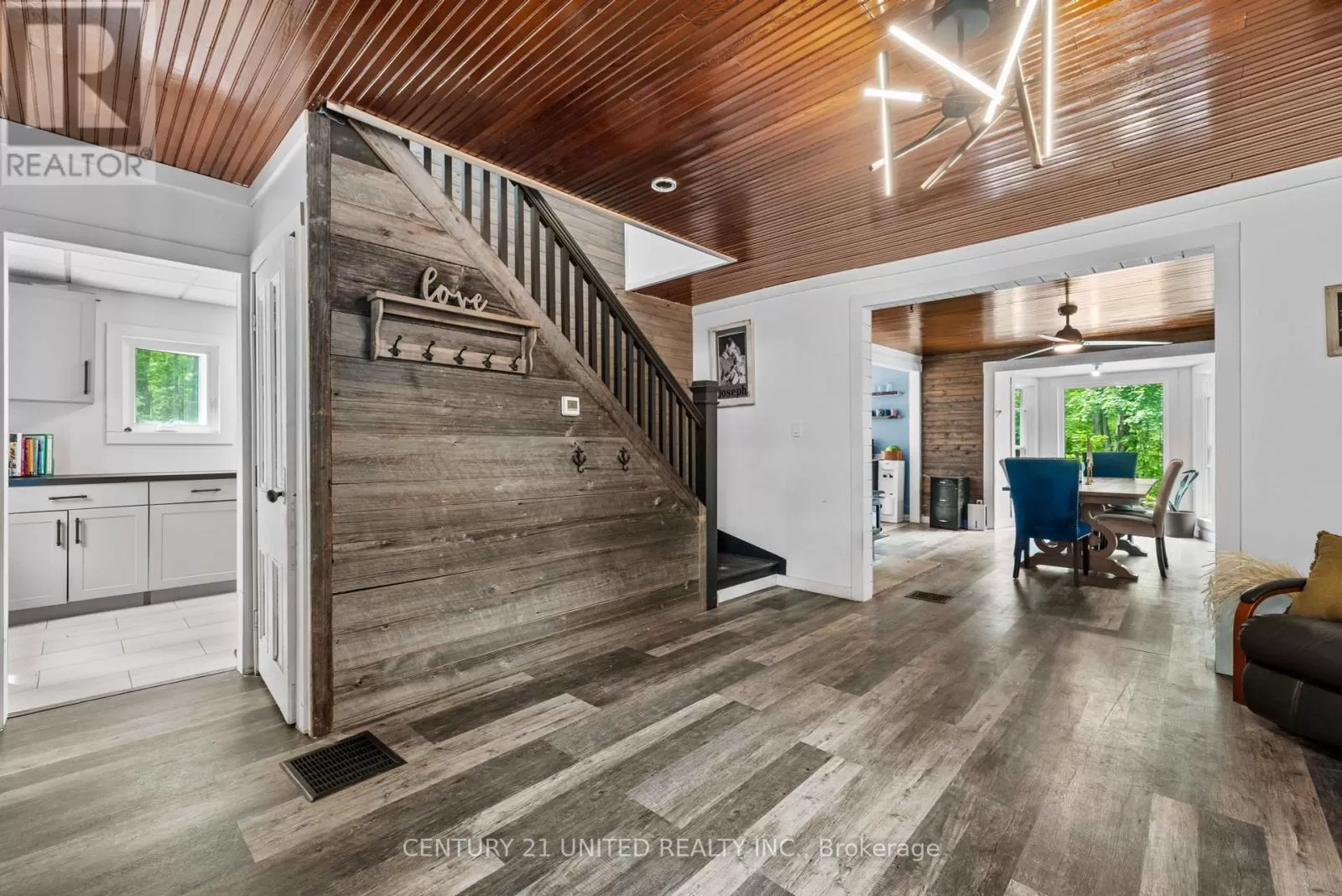Cross Streets: Library Road and Northey's Bay Road. ** Directions: Turn off of Northey's Bay Road onto Library Road, house is on your right. Welcome to your retreat in the North Kawartha's! Nestled just minutes from the region's most popular lakes and only 15 minutes from the charming village of Apsley, this inviting 3-bedroom, 2-batheroom home offers the ideal blend of comfort, convenience, and natural beauty. Step inside to find a bright, open-concept living space designed for family gatherings. The kitchen flows between the dining room and access to the outdoor entertainment area, making it perfect for entertaining family and friends. Each bedroom is cozy, providing peaceful sanctuary after a day of exploring the great outdoors. Outside, you'll fall in love with the private backyard oasis featuring a beautifully landscaped garden and a deck-perfect for summer barbeques, morning coffee, or stargazing on warm evenings. Whether you're looking for a year-round family home or a weekend getaway, this property offers the best of North Kawartha living. Don't miss your chance to own a piece of paradise close to lakes, trails, and all the amenities of Apsley. Book your private showing today! (id:27476)
