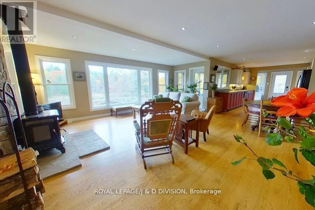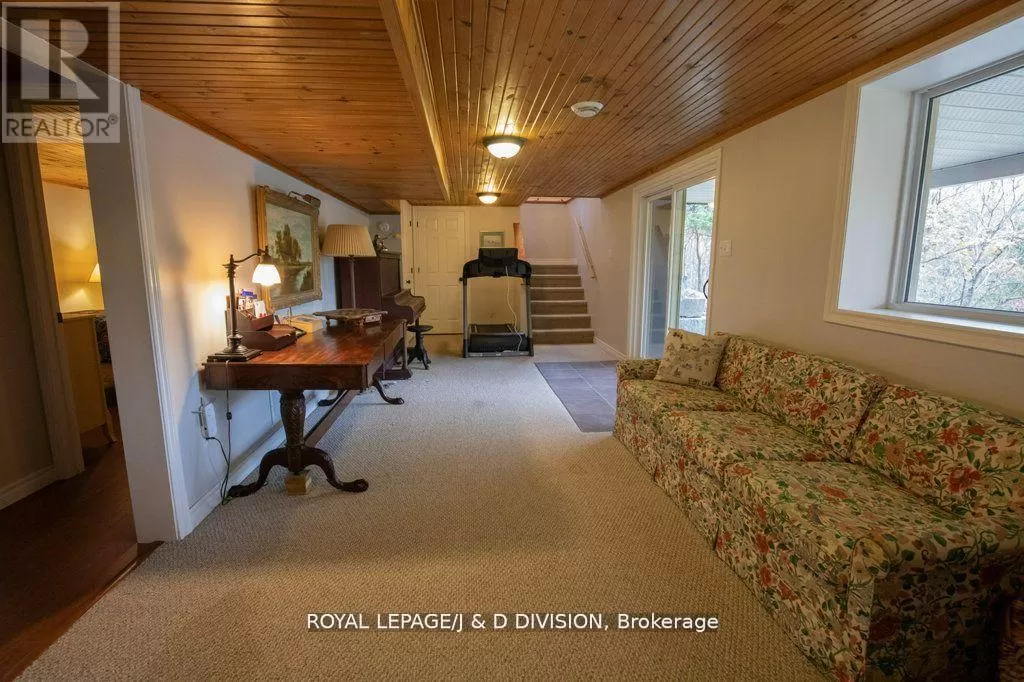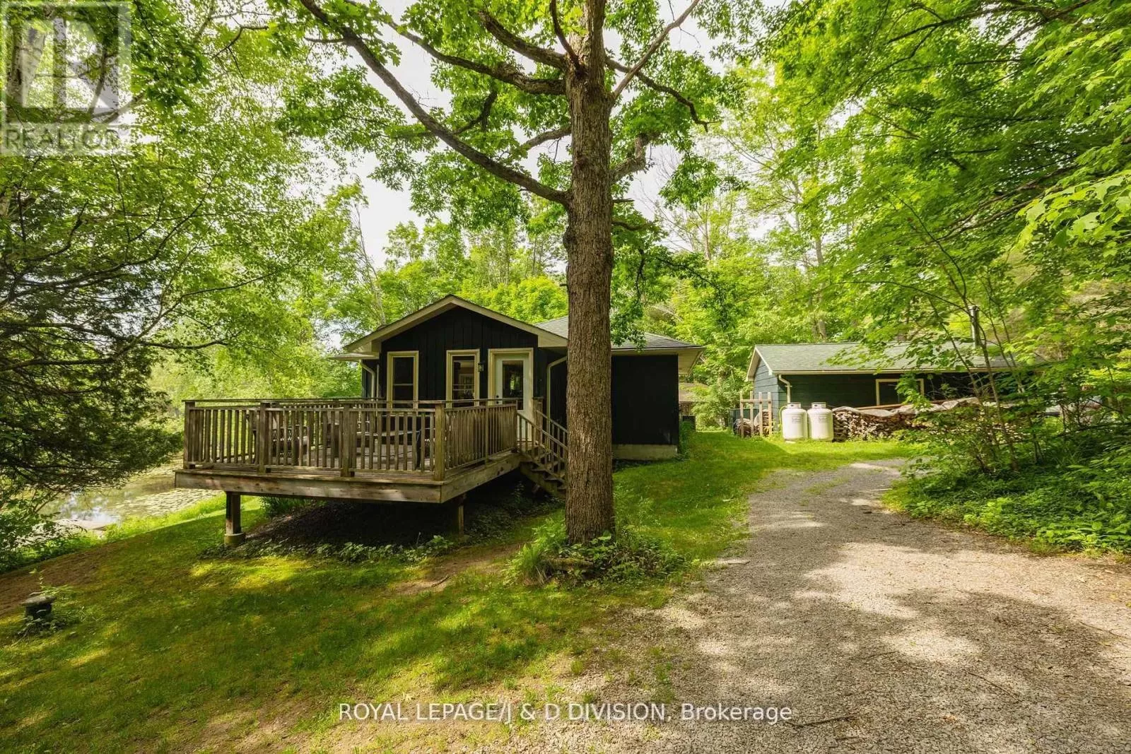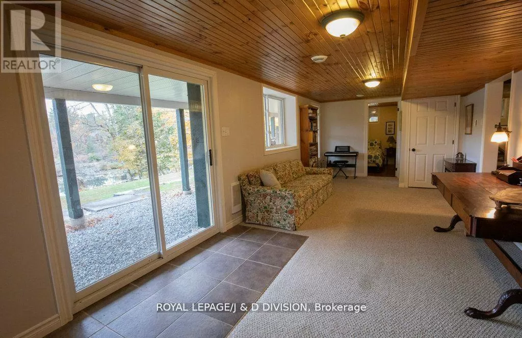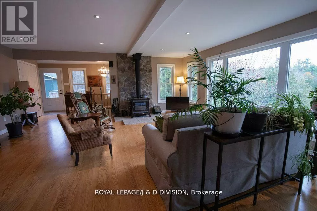 Hwy 28 & Northeys Bay Road A four-season bungalow presents a rare opportunity for year-round living or a peaceful seasonal retreat on beautiful Stony Lake. Privately nestled among mature trees, the home overlooks a serene private wildlife sanctuary and a quiet bay - offering privacy, tranquility, and a front-row seat to nature's beauty. Thoughtfully renovated in 2008 by the current owners, the home was designed for multi-generational comfort in all seasons. The open-concept great room showcases stunning lake views and opens directly to a screened-in porch and expansive decking - ideal for entertaining, dining, or simply enjoying the view. The walk-out lower level features three spacious bedrooms, creating flexible space for extended family or guests. Two outbuildings enhance the property's functionality: a large insulated and heated garage/workshop that's perfect for a hobbyist or for winter vehicle storage, and a generous shed for recreational gear and toys. Enjoy the dock, boating and swimming - and close proximity to the heart of the lake community Stony Lake Yacht Club, Carveth's Marina, and McCracken's Landing - offering easy access to local amenities, dining, and community activities on nearby Juniper Island. Surrounded by the rugged beauty of the Canadian Shield and situated along the scenic Trent-Severn Waterway, this property captures the essence of relaxed, elegant country living in a highly sought-after location. Whether you're seeking a full-time home or a seasonal escape, this property combines natural beauty, modern comfort, and charm on one of Ontario's most iconic lakes. (id:27476)