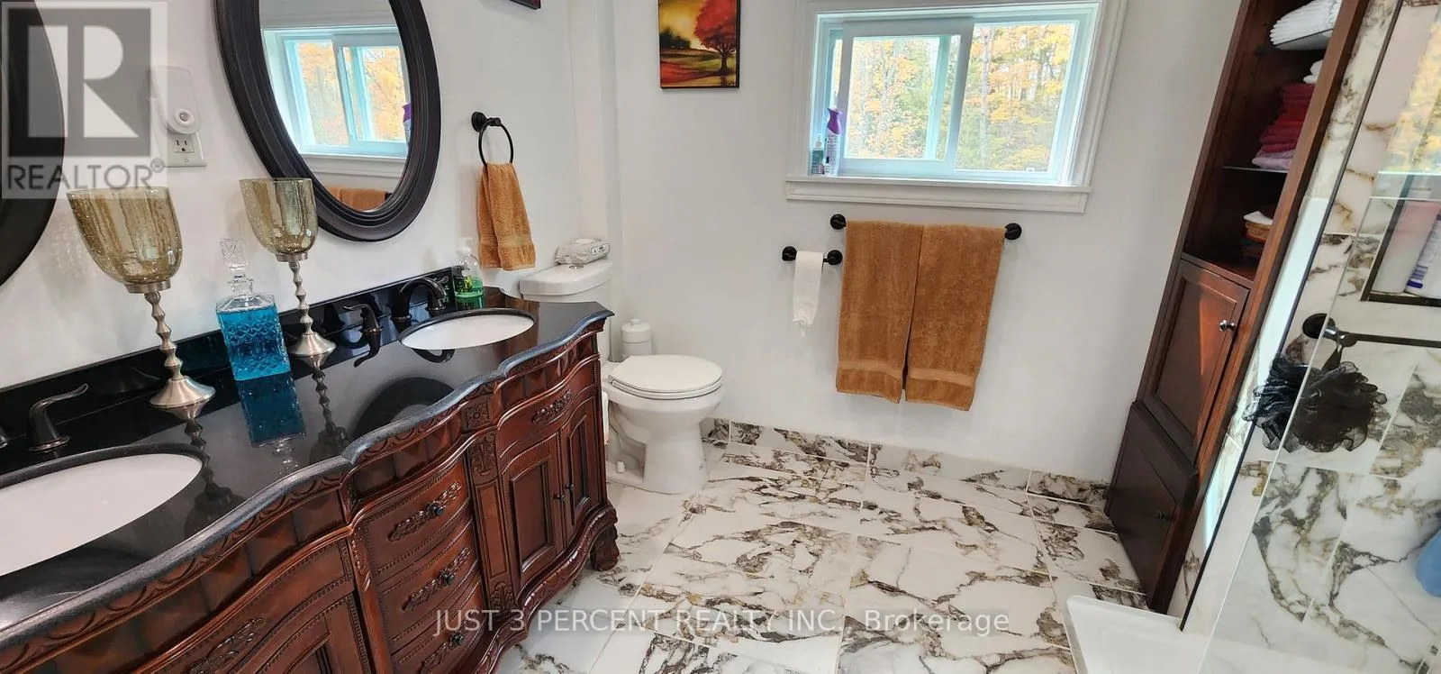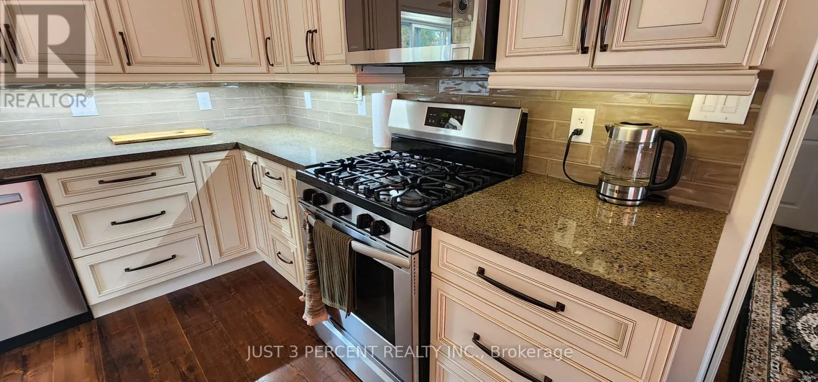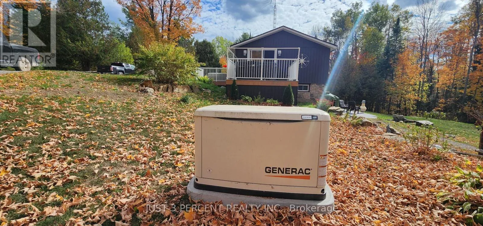 Cross Streets: Johnson Road and County Road 620. ** Directions: County Road 620 past Johnson Rd. Welcome to God's country! Remarkable private 4-acre country location just outside of Apsley with a fully renovated walkout bungalow. Gorgeous grounds with many kinds of trees, shade all year. Rock gardens and perennials. Huge near-near triple garage with separate furnace. Loft overtop waiting for your finishing (North Star windows included for finishing). Office in garage could be converted to a bedroom. Walk in to this bright home that feels like new: great room with a dream kitchen featuring granite counters, huge island, ample cupboards, lovely engineered hardwood floors throughout, and living room. Large primary bedroom with laundry mere feet away from closets and drawers. Newly renovated lower level with attractive stone exterior. Large family room with huge bright windows and walkout, doesn't feel like a basement. Newer septic, roofing, almost everything. No worries about electricity with a full-house Generac generator system. Roughed in 2-piece bathroom in garage. Perfect home for a home business, retirees or weekend oasis retreat. Area has dozens of lakes nearby, and shopping and restaurants in Apsley and Bancroft. (id:27476)
