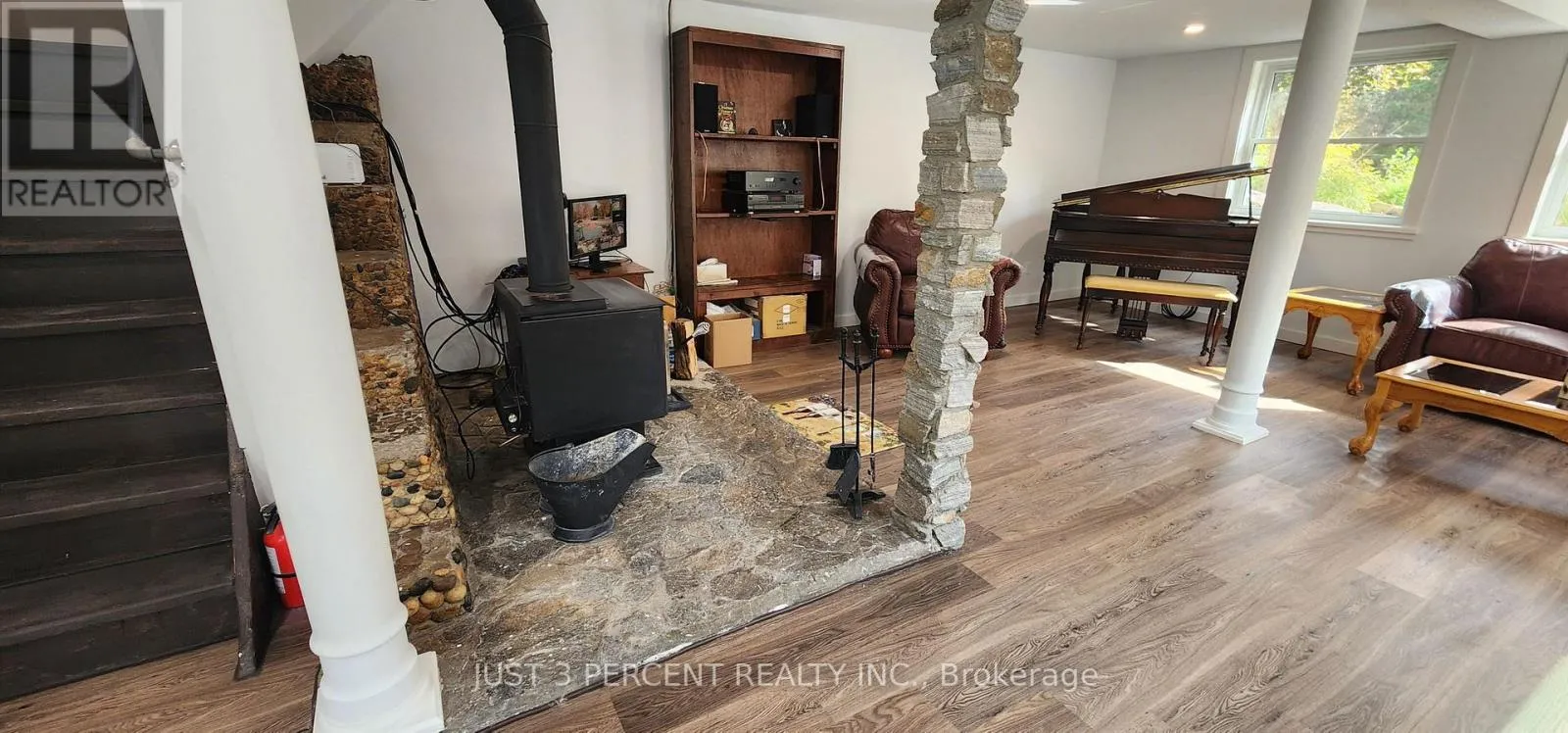 Cross Streets: Johnson Road and County Road 620. ** Directions: North of Apsley on CR 620. Welcome to God's country! Remarkable private 4-acre country location just outside of Apsley with a fully renovated walkout bungalow. Gorgeous grounds with many kinds of trees, shade all year. Rock gardens and perennials. Huge near-near triple garage with separate furnace. Loft overtop waiting for your finishing (North Star windows included for finishing). Office in garage could be converted to a bedroom. Walk in to this bright home that feels like new: great room with a dream kitchen featuring granite counters, huge island, ample cupboards, lovely engineered hardwood floors throughout, and living room. Large primary bedroom with laundry mere feet away from closets and drawers. Newly renovated lower level with attractive stone exterior. Large family room with huge bright windows and walkout, doesn't feel like a basement. Newer septic, roofing, almost everything. No worries about electricity with a full-house Generac generator system. Roughed in 2-piece bathroom in garage. Perfect home for a home business, retirees or weekend oasis retreat. Area has dozens of lakes nearby, and shopping and restaurants in Apsley and Bancroft. (id:27476)