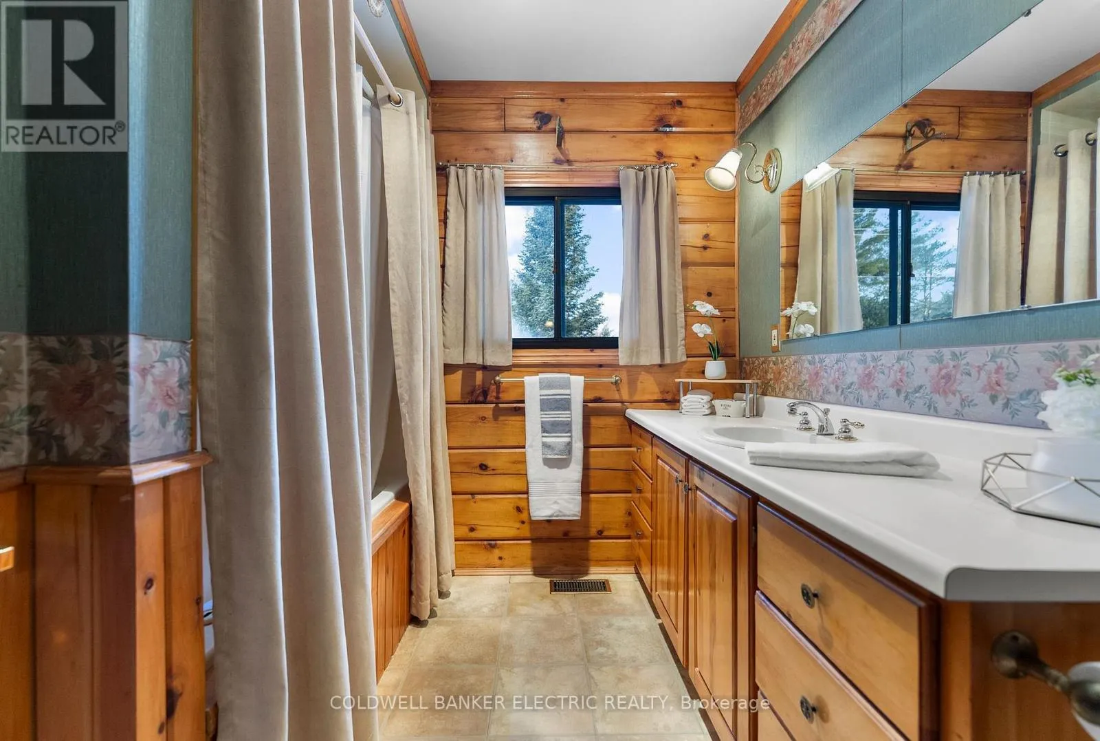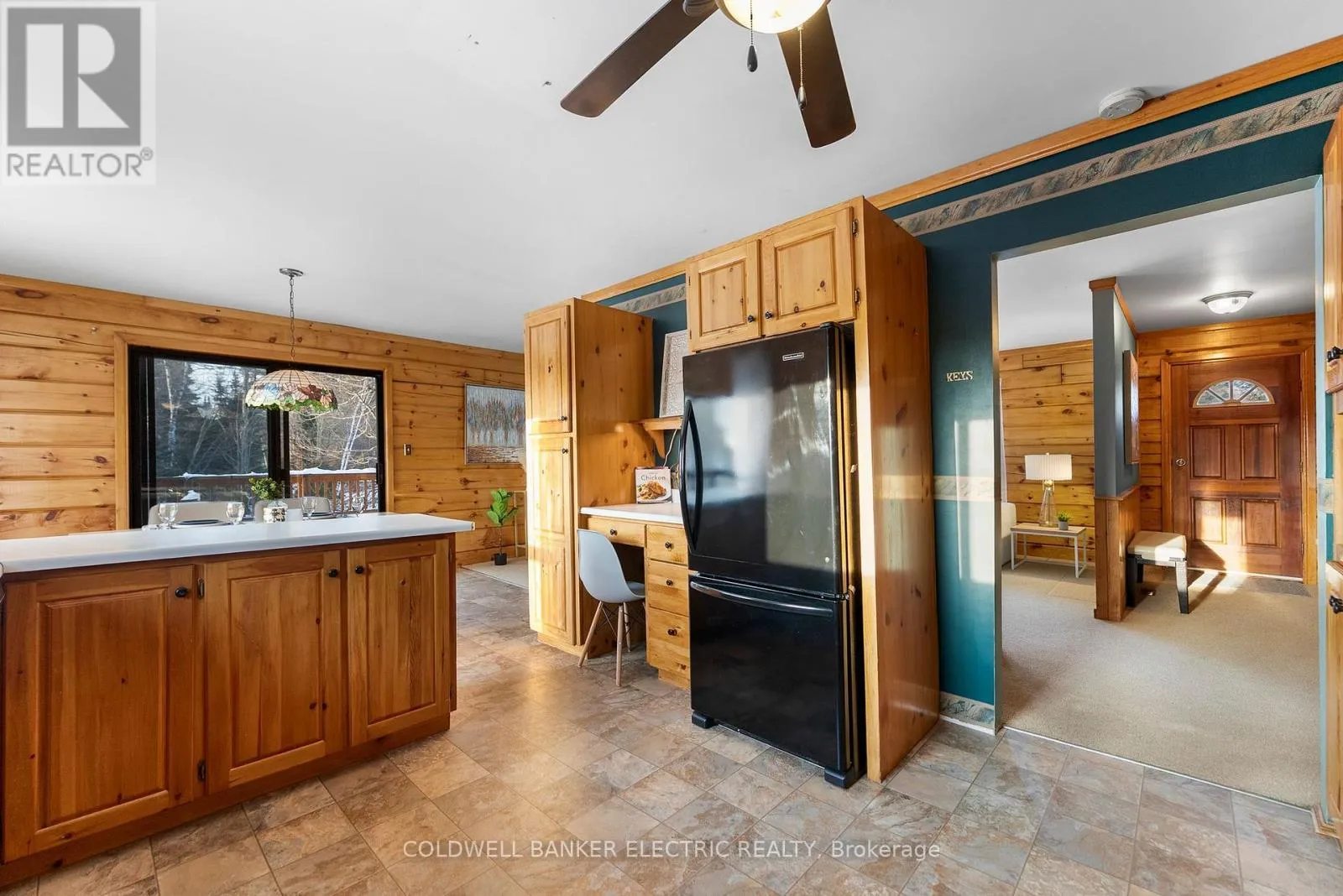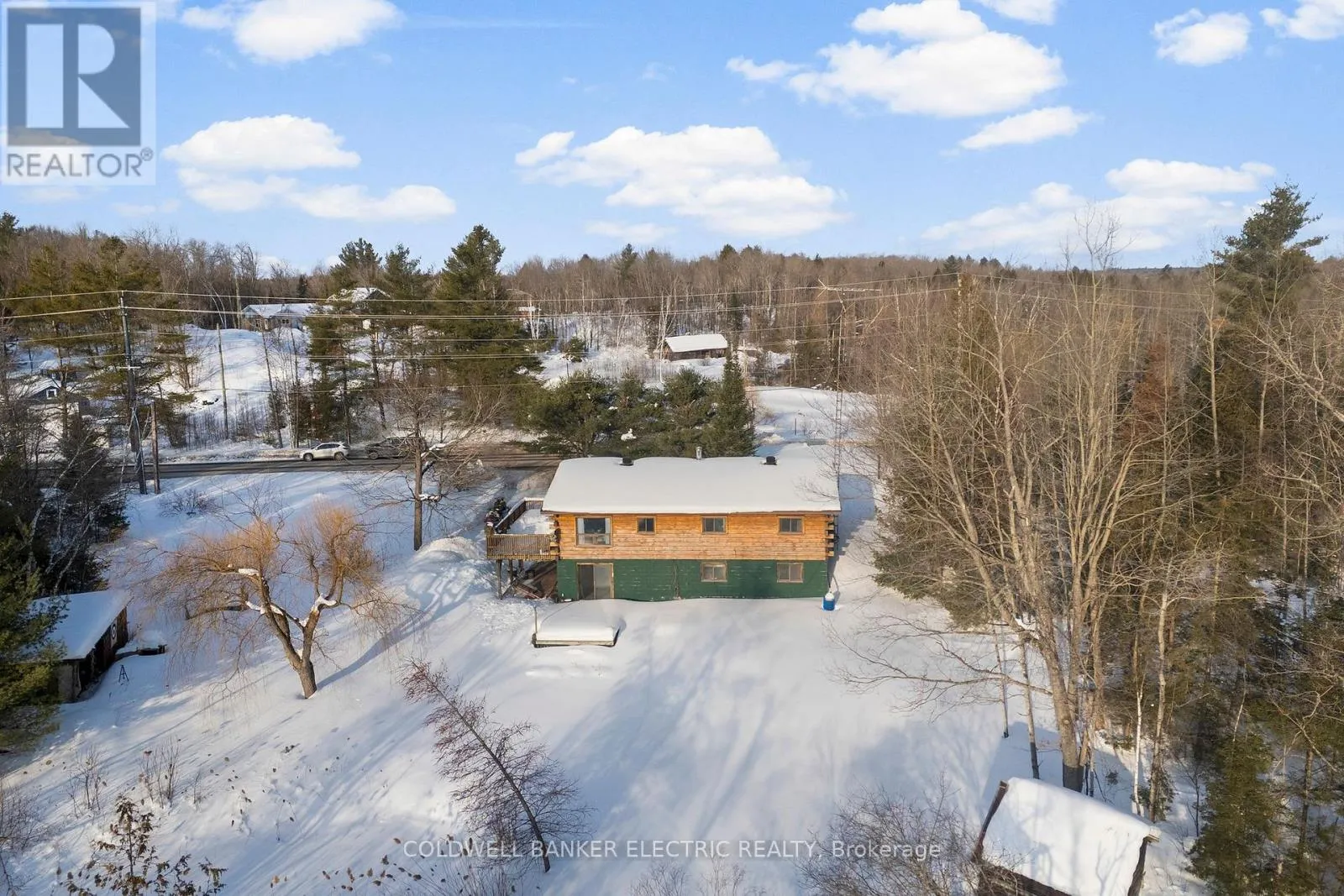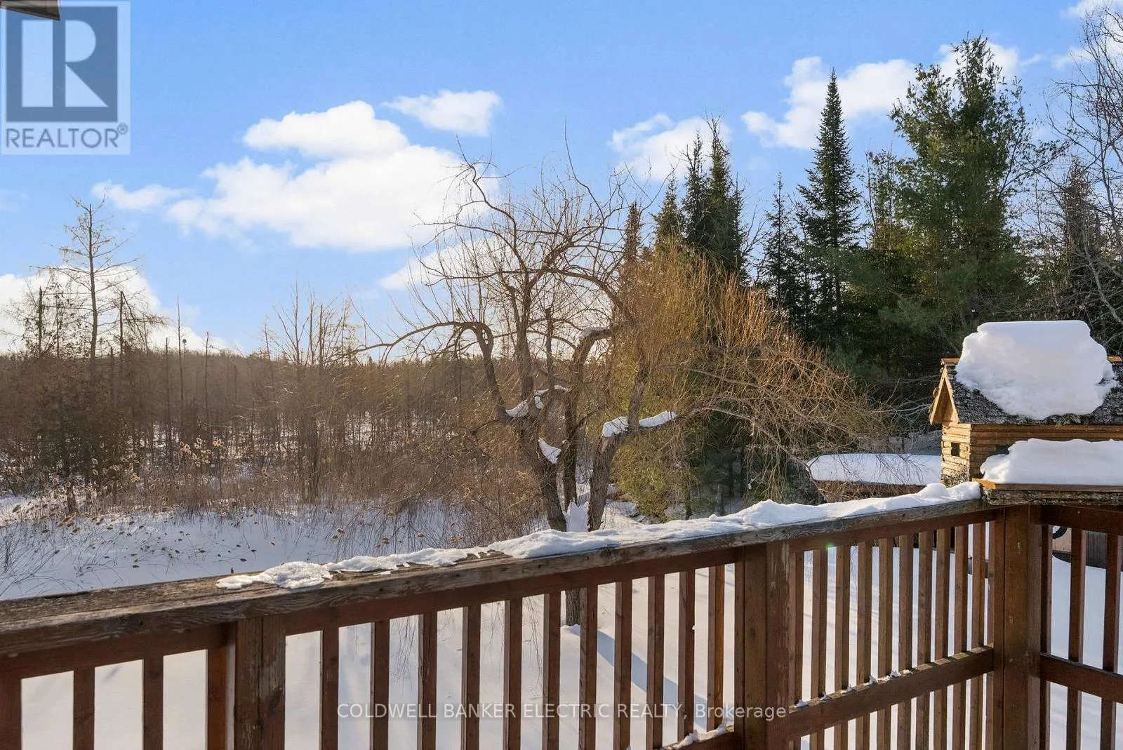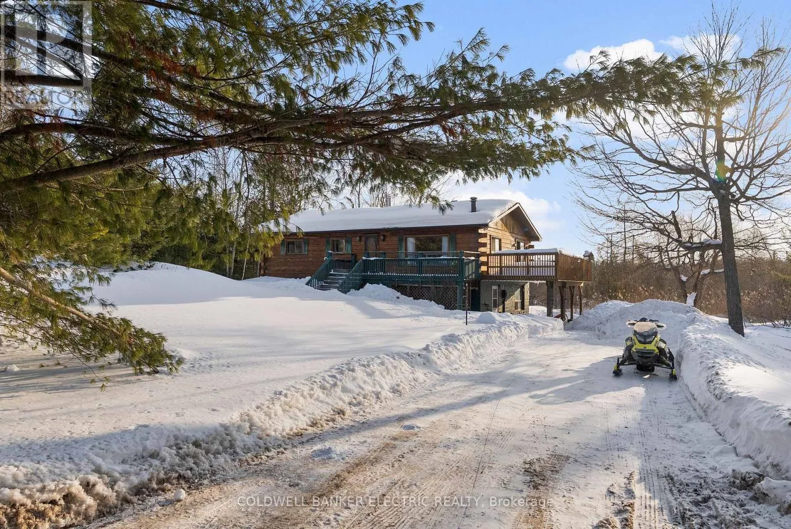Cross Streets: Cty Rd 504 & Jack Lake Road. ** Directions: Hwy 28 to Cty Rd 504 to Jack Lake Road. Country living with direct trail access! This 4-bedroom, 2-bath home offers rustic charm and year-round recreation, with snowmobile trail access in the backyard and ATV trail access along the front of the property. The bright main level features a spacious living room with wood accents and a cozy stone fireplace, a functional kitchen with ample cabinetry, and a dining area with walkout to the deck overlooking the scenic, treed lot. The finished lower level offers a large recreation space with walkout access, plus additional storage and utility areas. Enjoy your own private pond, a beautiful willow tree adding character to the landscape, and two sheds for extra storage. With space to roam and adventure at your doorstep, this property is ideal as a full-time residence or recreational retreat. (id:27476)
