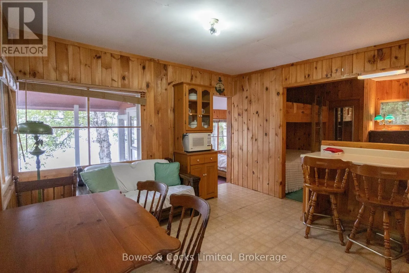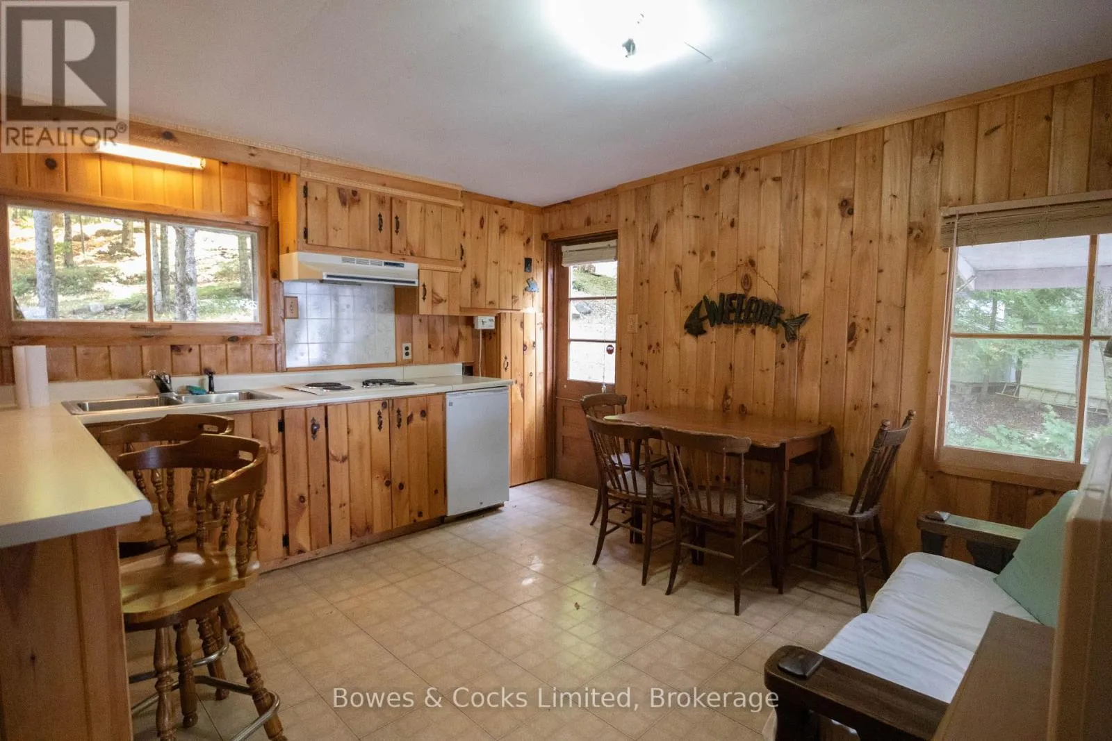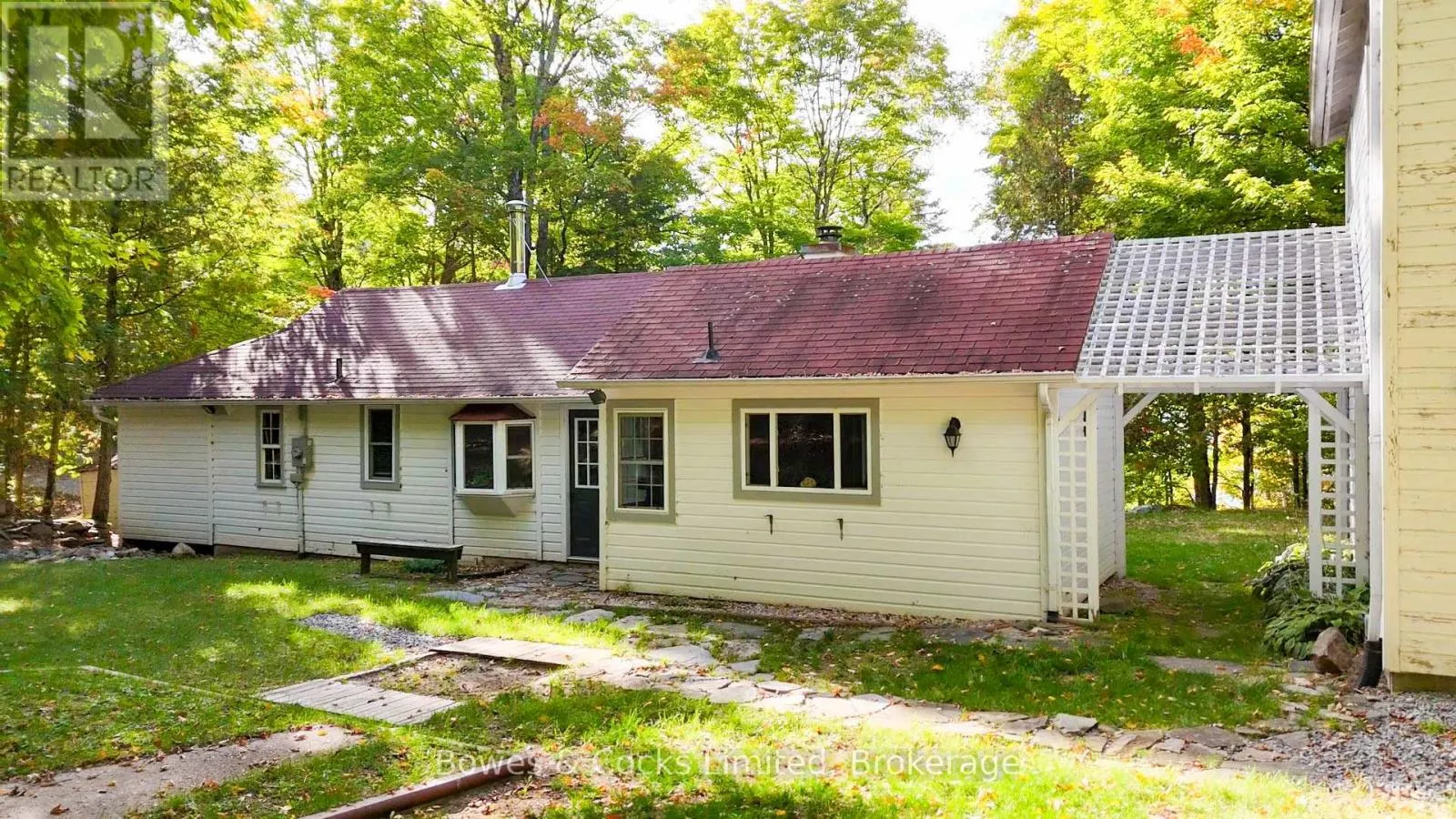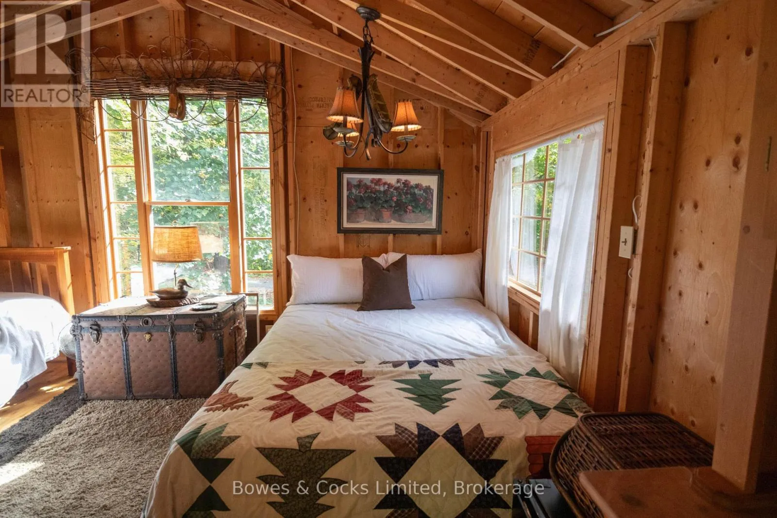 Cross Streets: Balmer & Couchs Rd. ** Directions: County Road 620 to Balmer Rd, Left on Couchs Rd to#408. Big lake views, unforgettable sunsets, and room for everyone-this is the Chandos Lake retreat families wait years to find. Set on the sought-after shores of Chandos Lake, this exceptional waterfront property showcases expansive northwest views, offering stunning sunsets right from your dock. With a walk-in sandy beach, it delivers the perfect blend of privacy, protection, and classic cottage living. Designed for gathering, this multi-building property comfortably accommodates up to 20 guests-ideal for hosting family and friends. The main cottage features three bedrooms, a full bathroom, a spacious kitchen with island and lake views, and a welcoming living room with a cozy wood-burning fireplace. A bright great room opens onto the deck, creating seamless indoor-outdoor flow. At the water's edge, the guest house/second cottage offers two bedrooms-one with beautiful lake views-an open-concept eat-in kitchen, and a convenient two-piece bath, giving guests their own private space. Above the garage, a large loft adds flexibility with additional sleeping for up to six and a recreation area. The waterfront is a true highlight, featuring a boathouse at the shoreline, a separate deck overlooking the beach, and a dock that accommodates multiple boats-perfect for enjoying the crystal-clear, spring-fed lake. Start your mornings with coffee by the water and end your days taking in breathtaking sunsets across the open lake. Additional features include a garage with washer, dryer, and workbench, a storage shed, and parking for five or more vehicles. Lovingly maintained by one family for decades, this rare offering combines space, setting, and lifestyle-an incredible opportunity to own a legacy property on Chandos Lake. (id:27476)