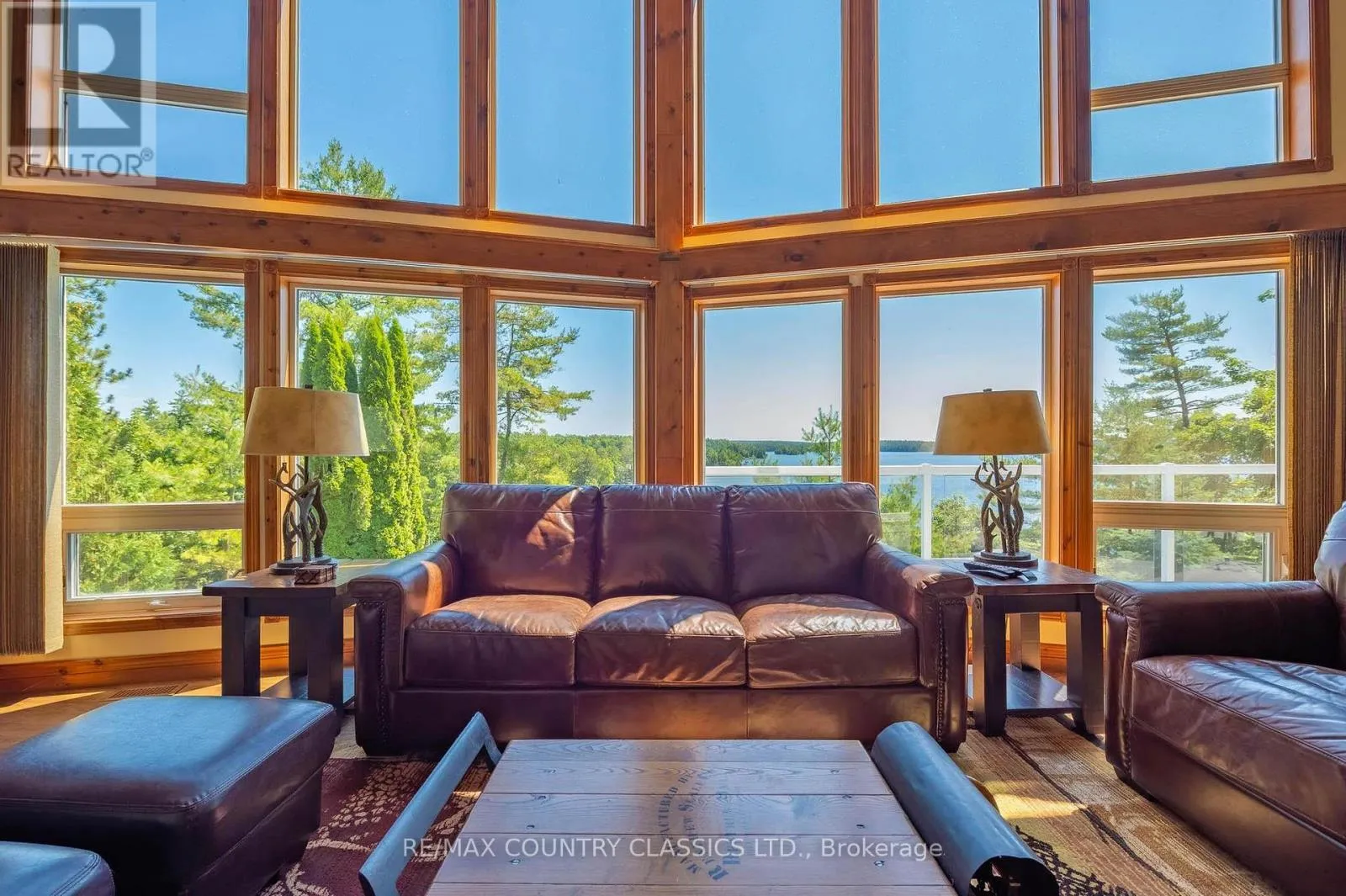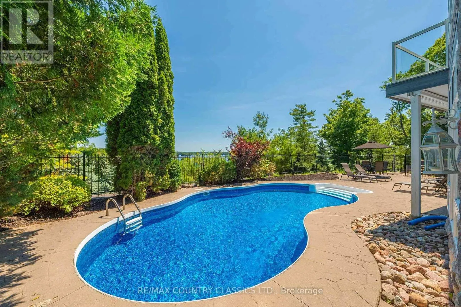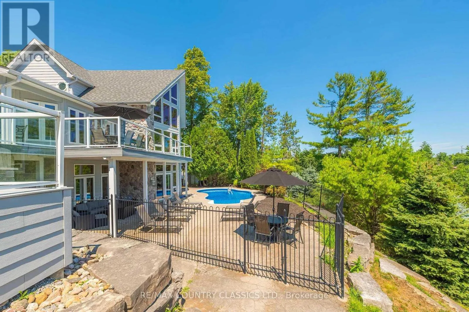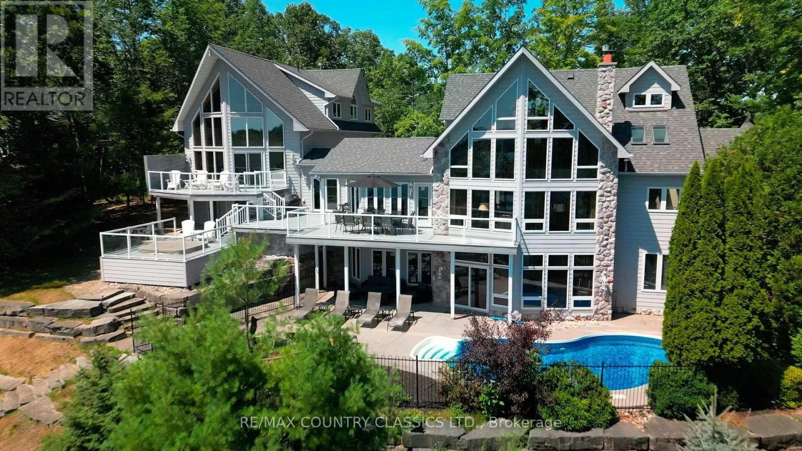 Cross Streets: Jack Lake Road & Narrows Point Road (FR 89). ** Directions: From Apsley ON take County Road 504 to right on Jack Lake Road to another right at Stop Sign to left on Narrows Point Road (FR89) to right on 89B to #119 on the left. Experience refined waterfront living on beautiful Jack Lake in this exceptional five bedroom four and a half bath luxury home. Thoughtfully designed to capture elevated, panoramic lake views, this four season retreat blends upscale finishes with the relaxed elegance of cottage country. The main level features an open concept layout with soaring ceilings, expansive windows, and seamless flow to multiple outdoor entertaining areas. A gourmet kitchen with premium appliances and a large island anchors the space, ideal for hosting family and friends. The private primary suite offers stunning lake vistas, a spa-inspired ensuite, and walk-out access to a quiet balcony. Four additional bedrooms provide generous accommodations for guests, complemented by beautifully appointed bathrooms throughout. The lower level extends the living space with a bright recreation area, walk-out access, and plenty of room for gatherings, step outside to your own resort-style oasis. A heated inground swimming pool, integrated hot tub, and sun-drenched lounging terraces overlook the water, surrounded by mature trees and natural stone landscaping. A gentle path leads to the shoreline, offering clean swimming, excellent boating, and access to one of the Kawarthas' most desirable lakes. Designed for year-round comfort, this property includes modern utilities, ample parking, and storage for recreational gear. Whether as a full time residence or a luxury cottage escape, this home delivers an unmatched combination of privacy, craftsmanship, and breathtaking natural beauty on sought-after Jack Lake. (id:27476)