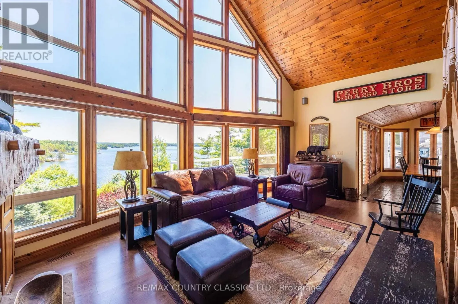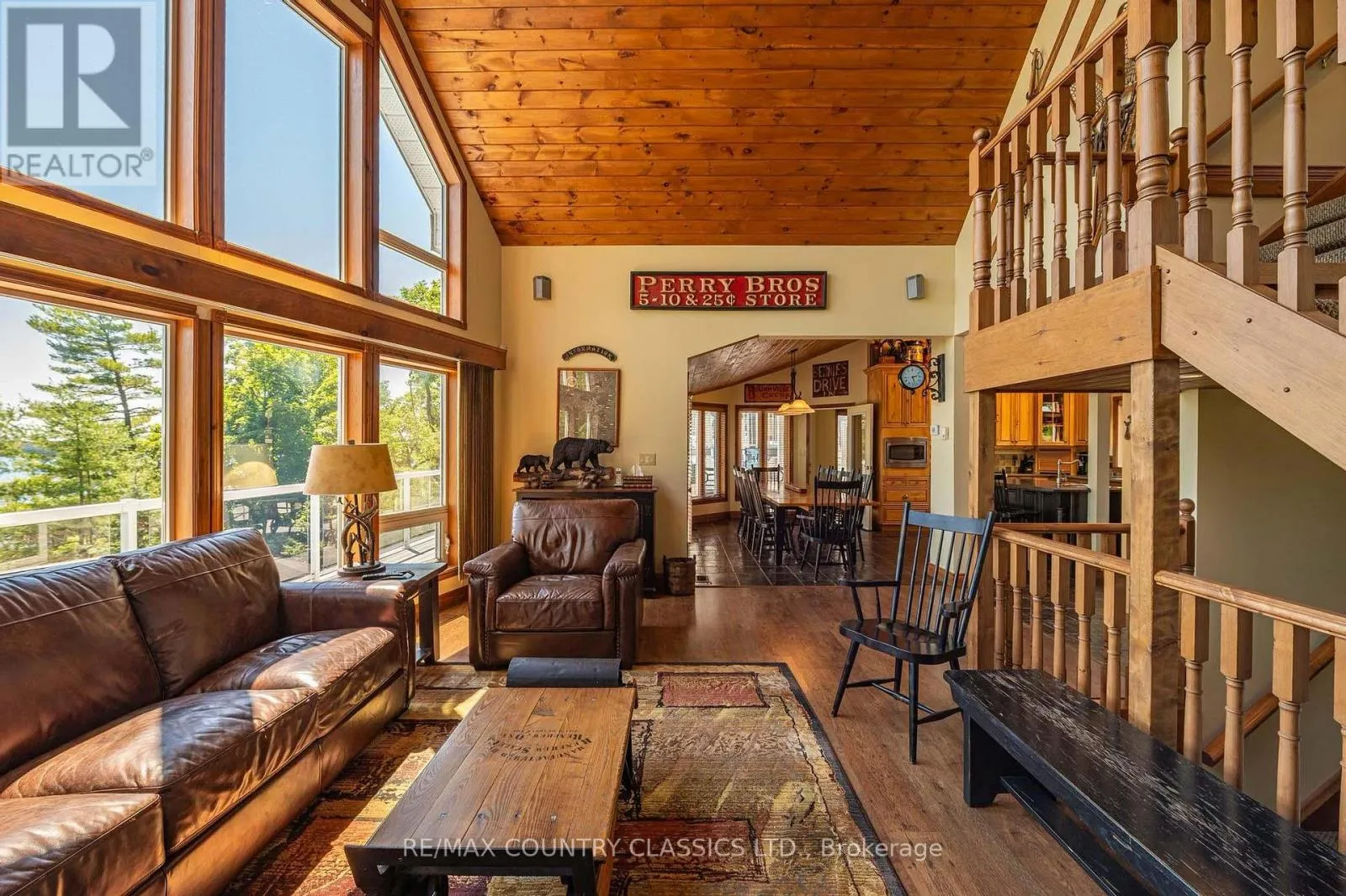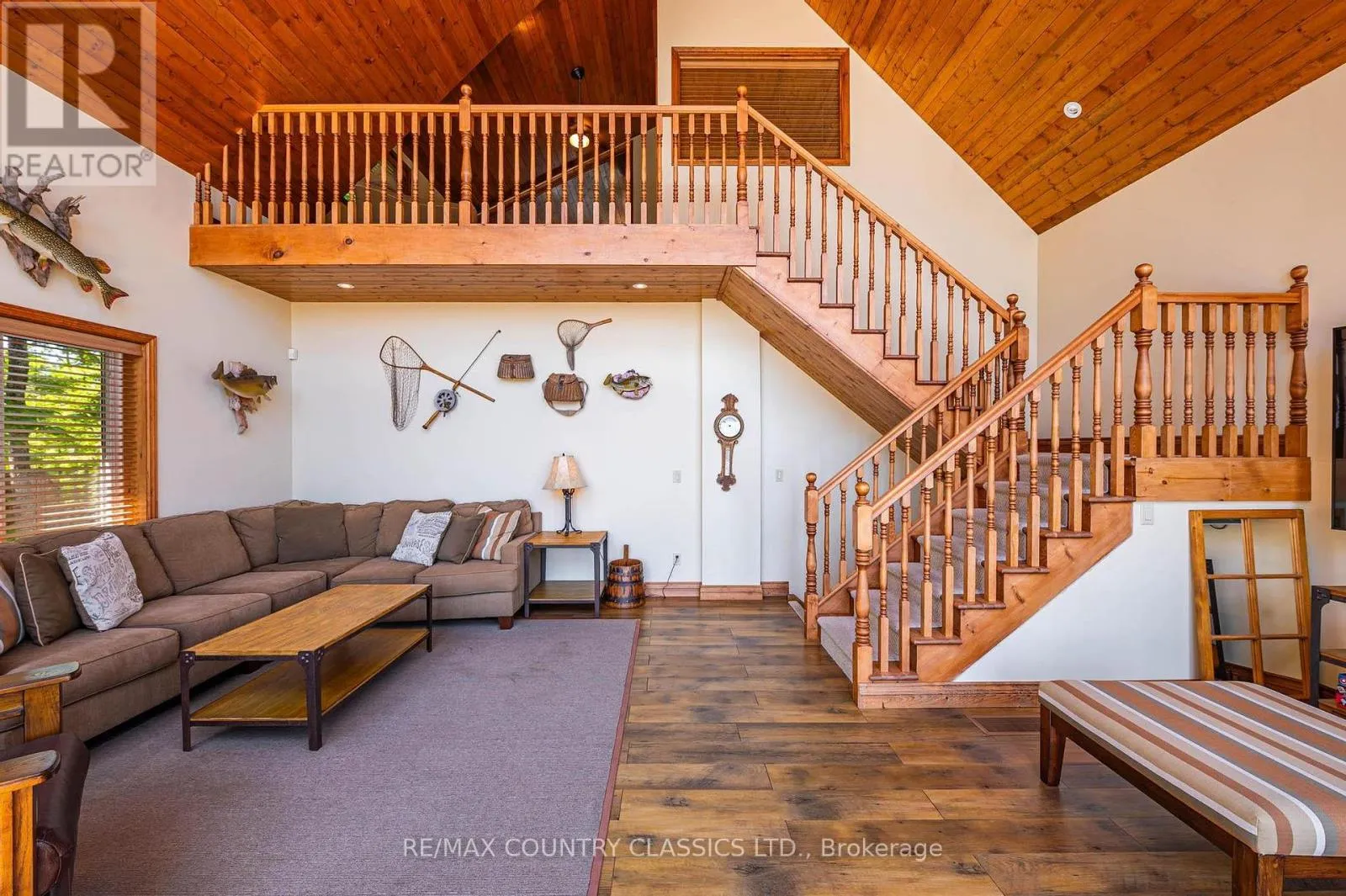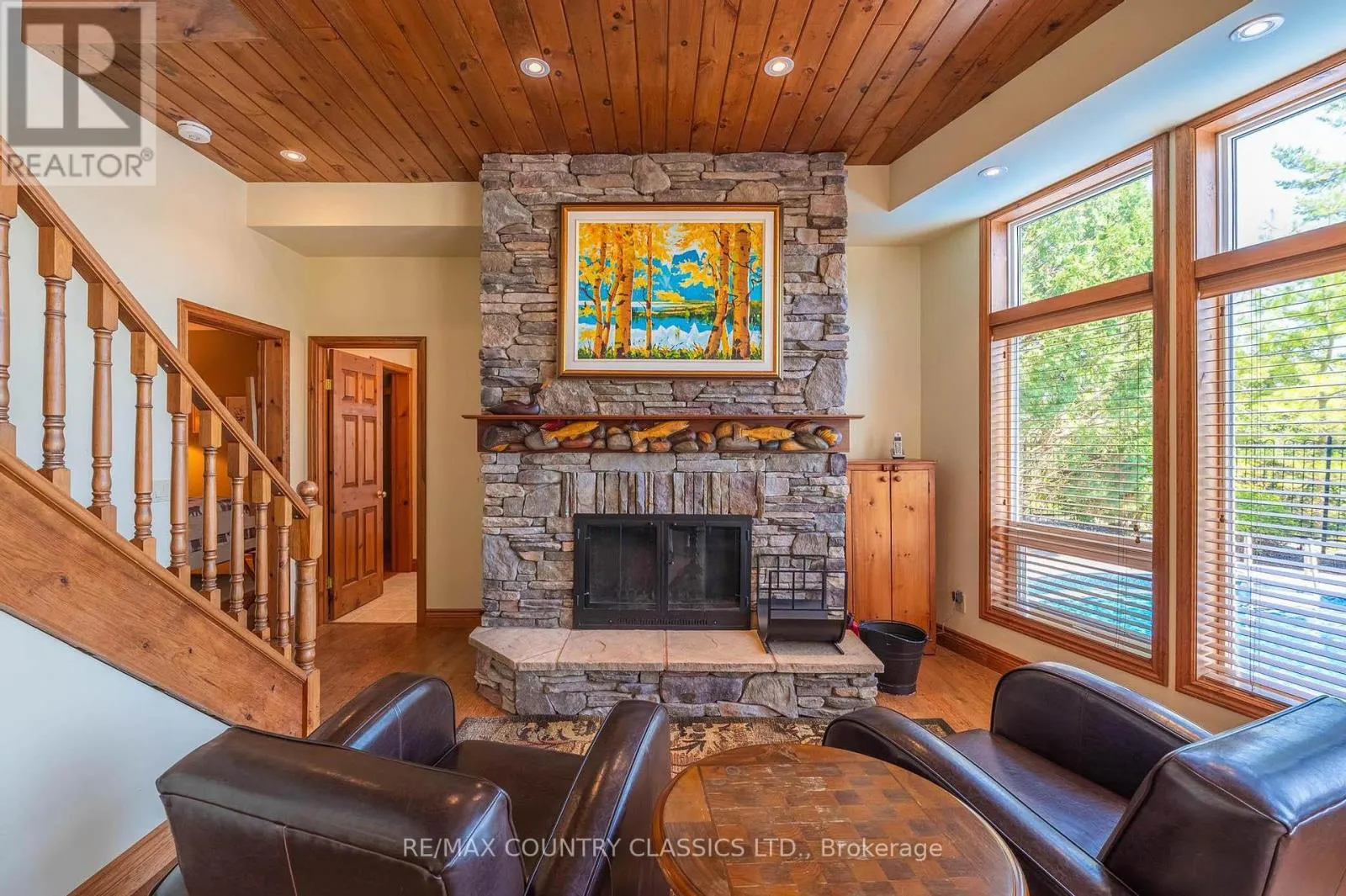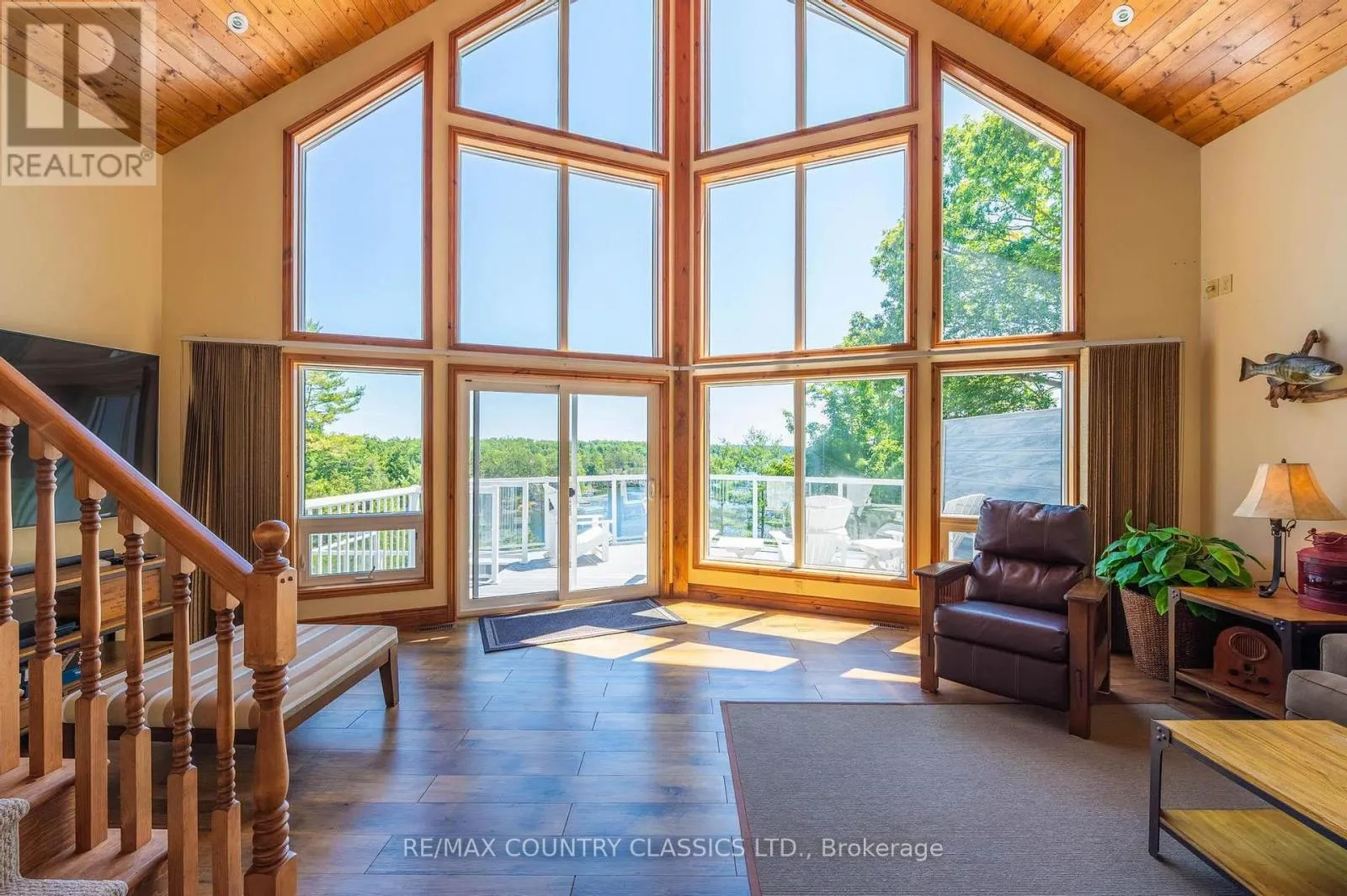 Cross Streets: Jack Lake Road & Narrows Point Road (FR 89). ** Directions: From Apsley ON take County Road 504 to right on Jack Lake Road to another right at Stop Sign to left on Narrows Point Road (FR89) to right on 89B to #119 on the left. Experience refined waterfront living on beautiful Jack Lake in this exceptional five bedroom four and a half bath luxury home. Thoughtfully designed to capture elevated, panoramic lake views, this four season retreat blends upscale finishes with the relaxed elegance of cottage country. The main level features an open concept layout with soaring ceilings, expansive windows, and seamless flow to multiple outdoor entertaining areas. A gourmet kitchen with premium appliances and a large island anchors the space, ideal for hosting family and friends. The private primary suite offers stunning lake vistas, a spa-inspired ensuite, and walk-out access to a quiet balcony. Four additional bedrooms provide generous accommodations for guests, complemented by beautifully appointed bathrooms throughout. The lower level extends the living space with a bright recreation area, walk-out access, and plenty of room for gatherings, step outside to your own resort-style oasis. A heated inground swimming pool, integrated hot tub, and sun-drenched lounging terraces overlook the water, surrounded by mature trees and natural stone landscaping. A gentle path leads to the shoreline, offering clean swimming, excellent boating, and access to one of the Kawarthas' most desirable lakes. Designed for year-round comfort, this property includes modern utilities, ample parking, and storage for recreational gear. Whether as a full time residence or a luxury cottage escape, this home delivers an unmatched combination of privacy, craftsmanship, and breathtaking natural beauty on sought-after Jack Lake. (id:27476)