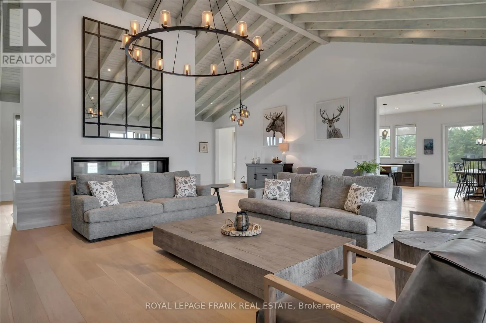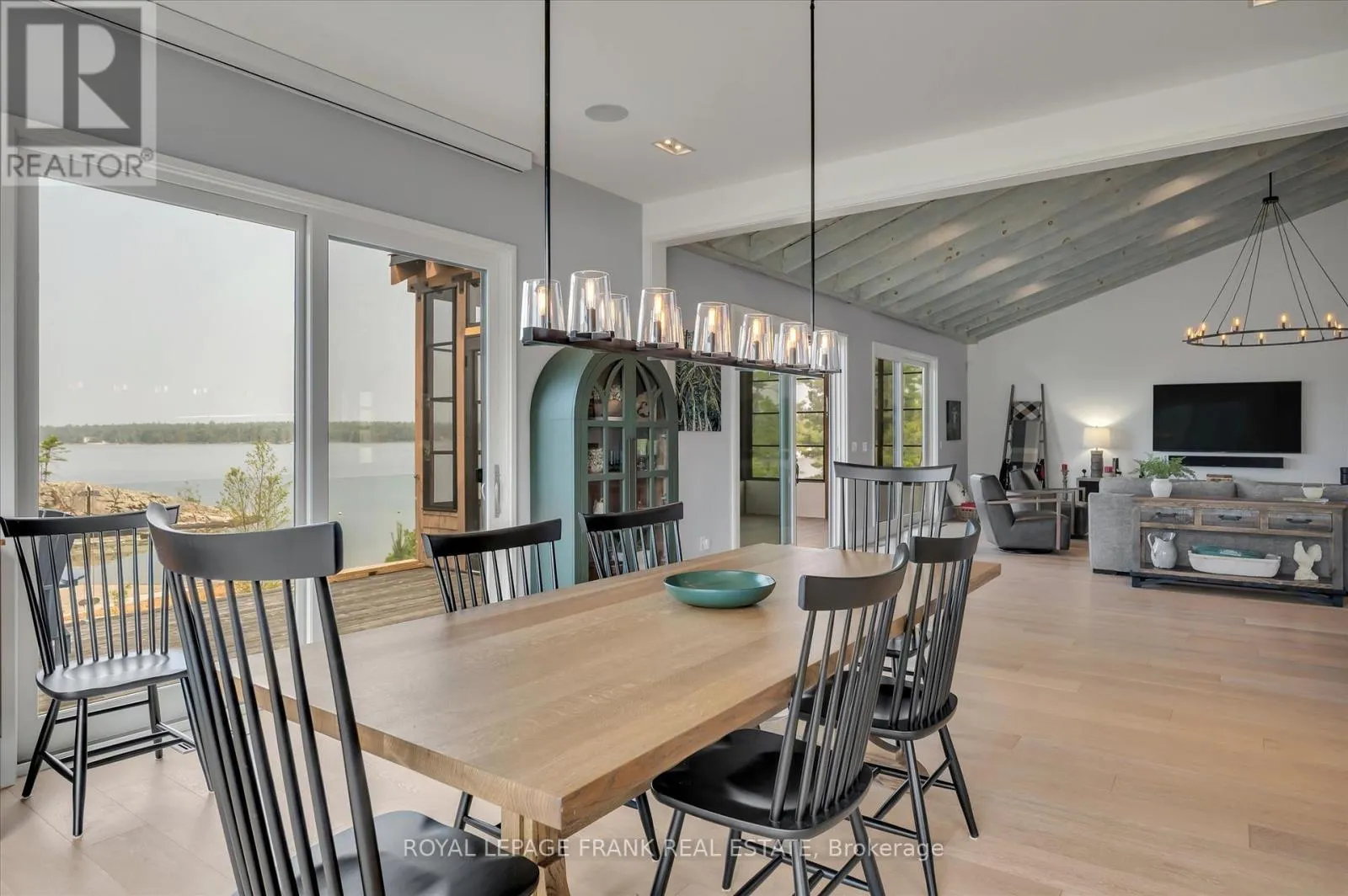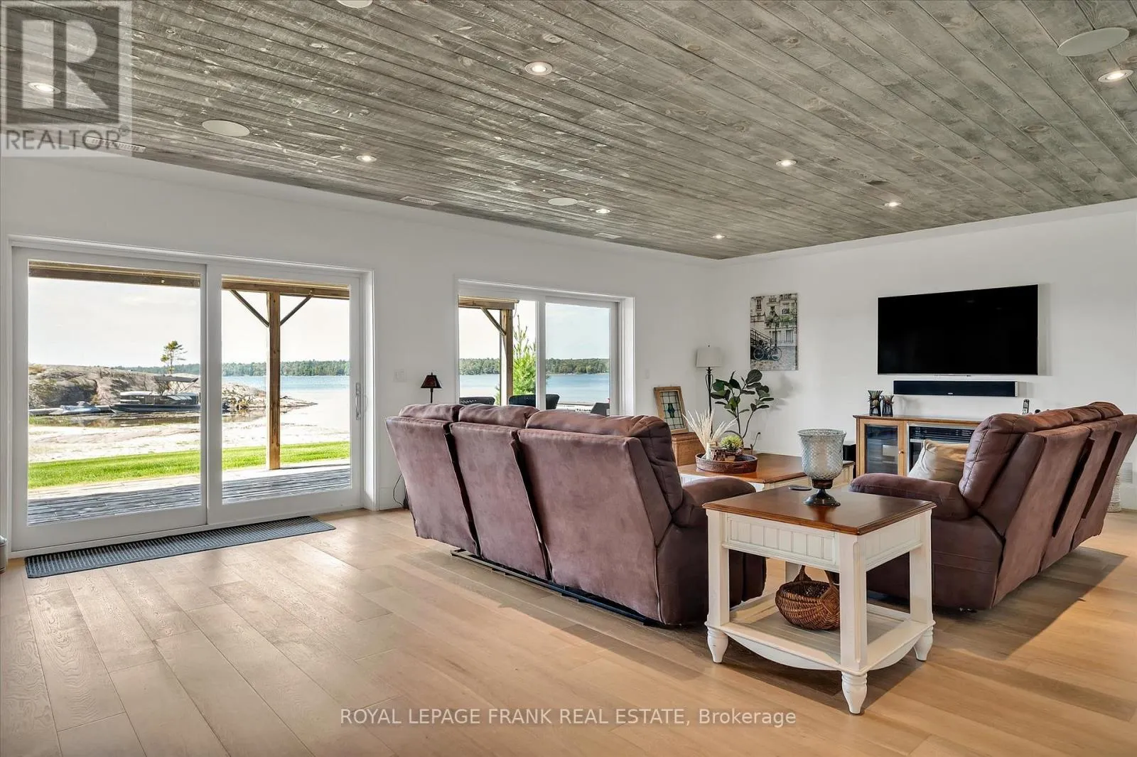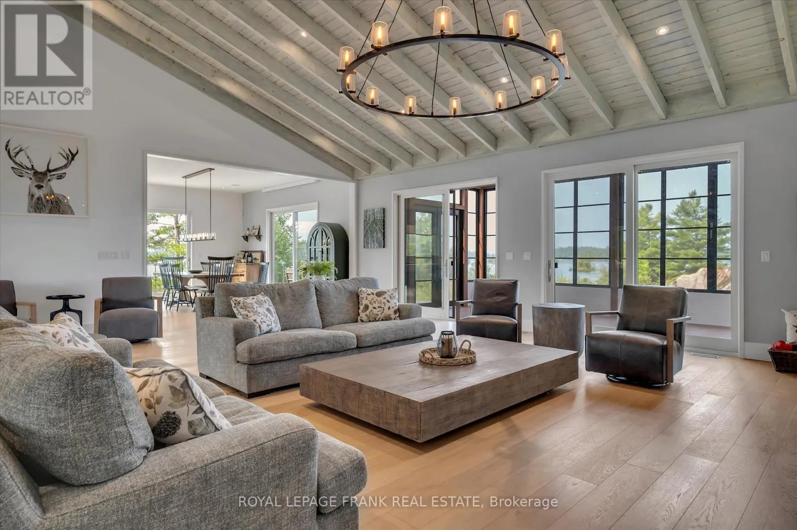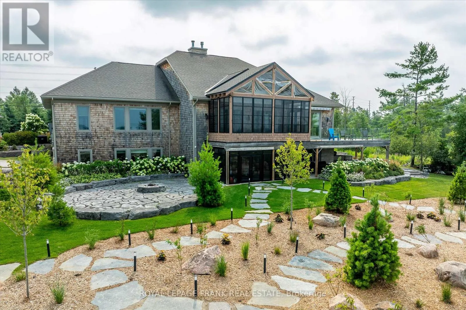 Cross Streets: County Road 6 to #3790 on left. ** Directions: County Rd 6 to #3790 on left. Experience the pinnacle of lakeside living at this stunning Stoney Lake estate. Rarely do properties of this scale become available. Set on over 3 acres of beautifully landscaped grounds with an impressive 1,000 feet of water frontage, this estate offers sweeping views down the length of Upper Stoney Lake. The setting is truly spectacular complete with breathtaking sunsets, exceptional privacy, and a massive sand beach. A distinctive granite island point (offering an additional 700+ ft of frontage) provides the perfect location for deep-water swimming, all ideally positioned to capture the sunset. The 5-bedroom, 4.5-bathroom home is impeccably designed, blending relaxed lakeside charm with refined modern finishes. Bright, spacious interiors are thoughtfully appointed, including a dream kitchen ideal for both casual family time and elevated entertaining. Step outside to enjoy the extensive professional landscaping, a lakeside fire pit for unforgettable evenings, and a brand-new bunkie or yoga studio just steps from the shoreline. The screened-in Kawartha Room invites you to enjoy the outdoors in comfort -- rain or shine. A detached triple-car garage offers ample storage and convenience, with direct access off a paved road. Located only minutes from the prestigious Wildfire Golf Club, this exceptional property delivers an unmatched opportunity to enjoy luxury, nature, and lifestyle -- all in one extraordinary package. Click "Multi Media", below, for aerial video, additional photos and more. (id:27476)