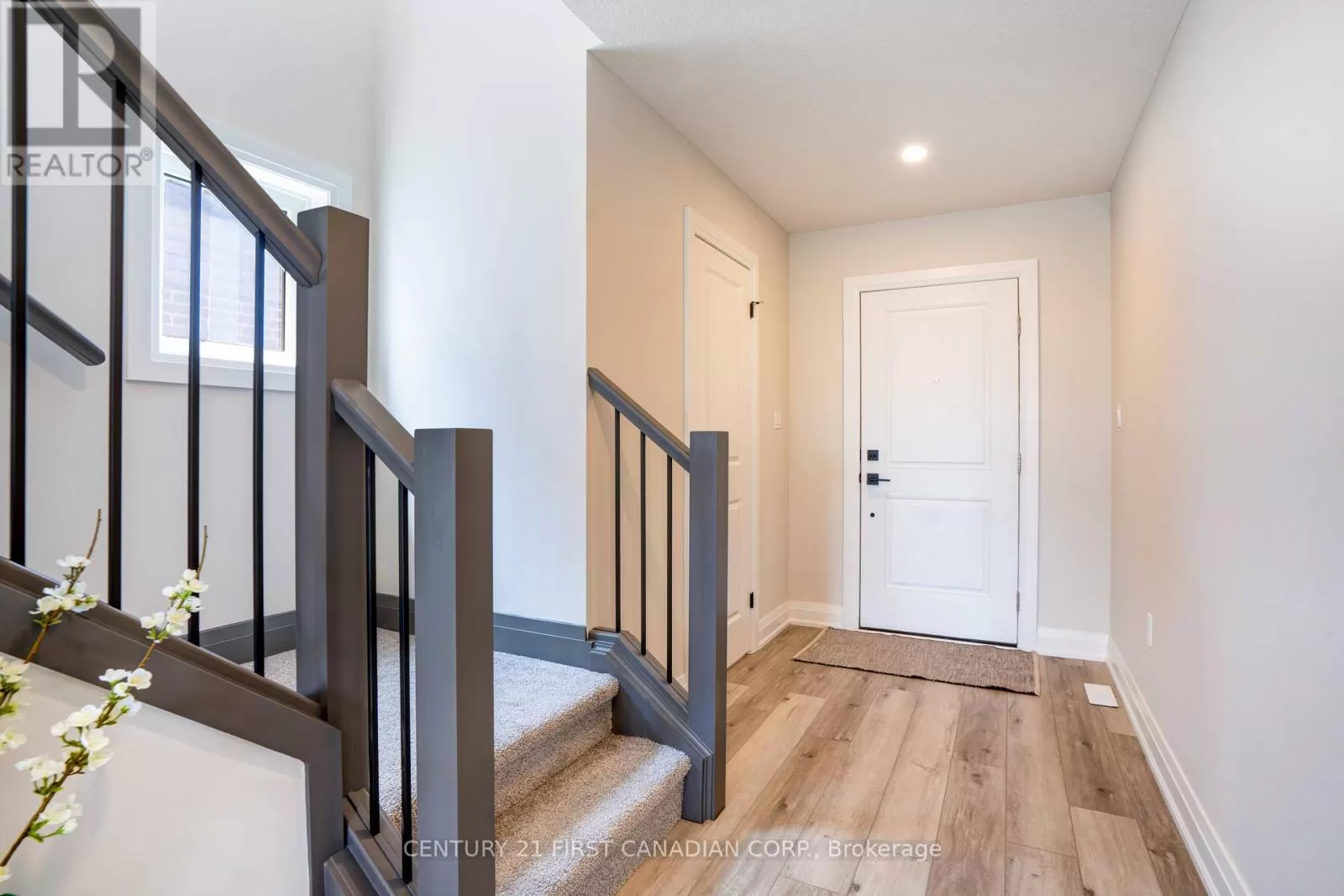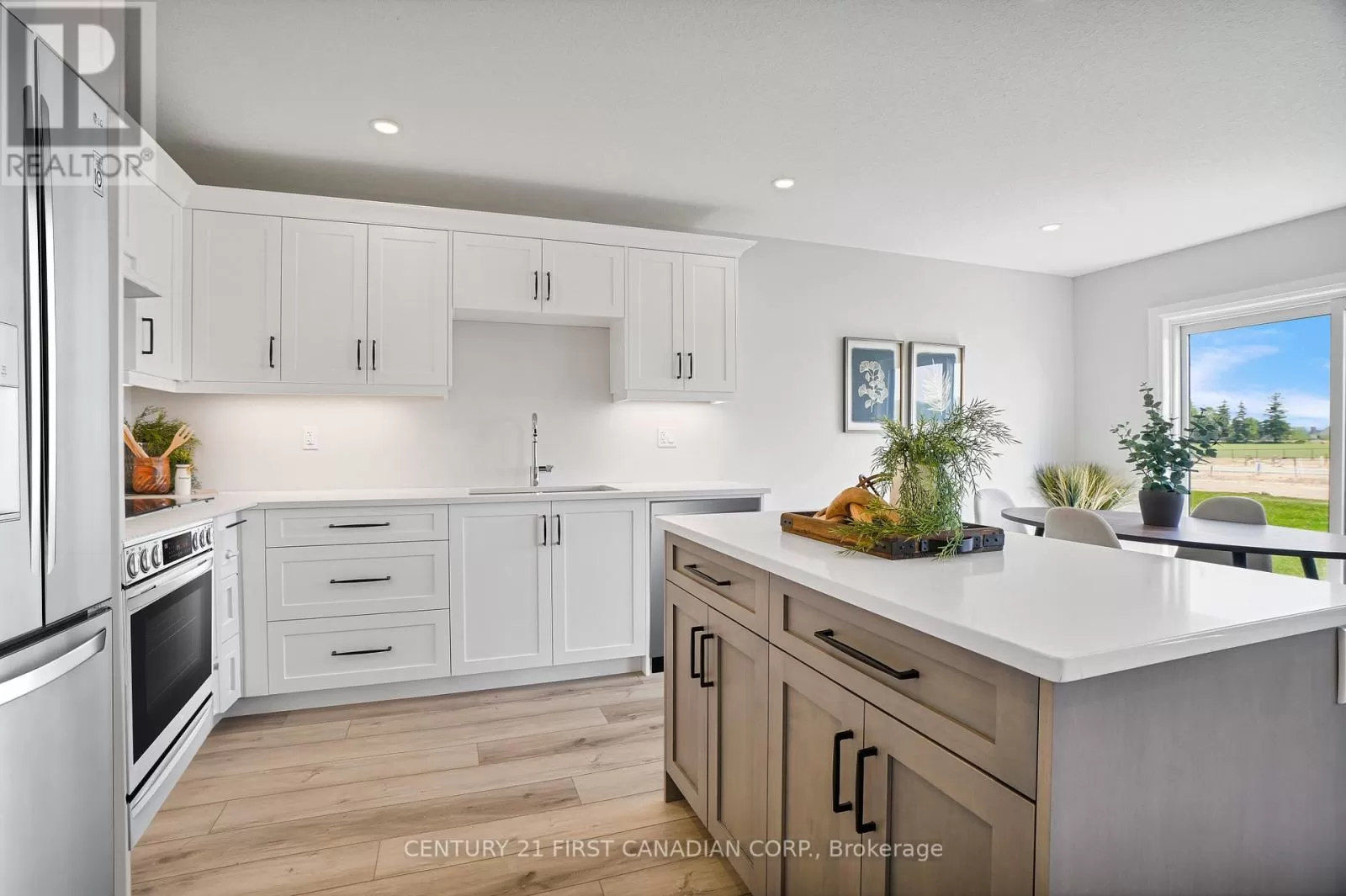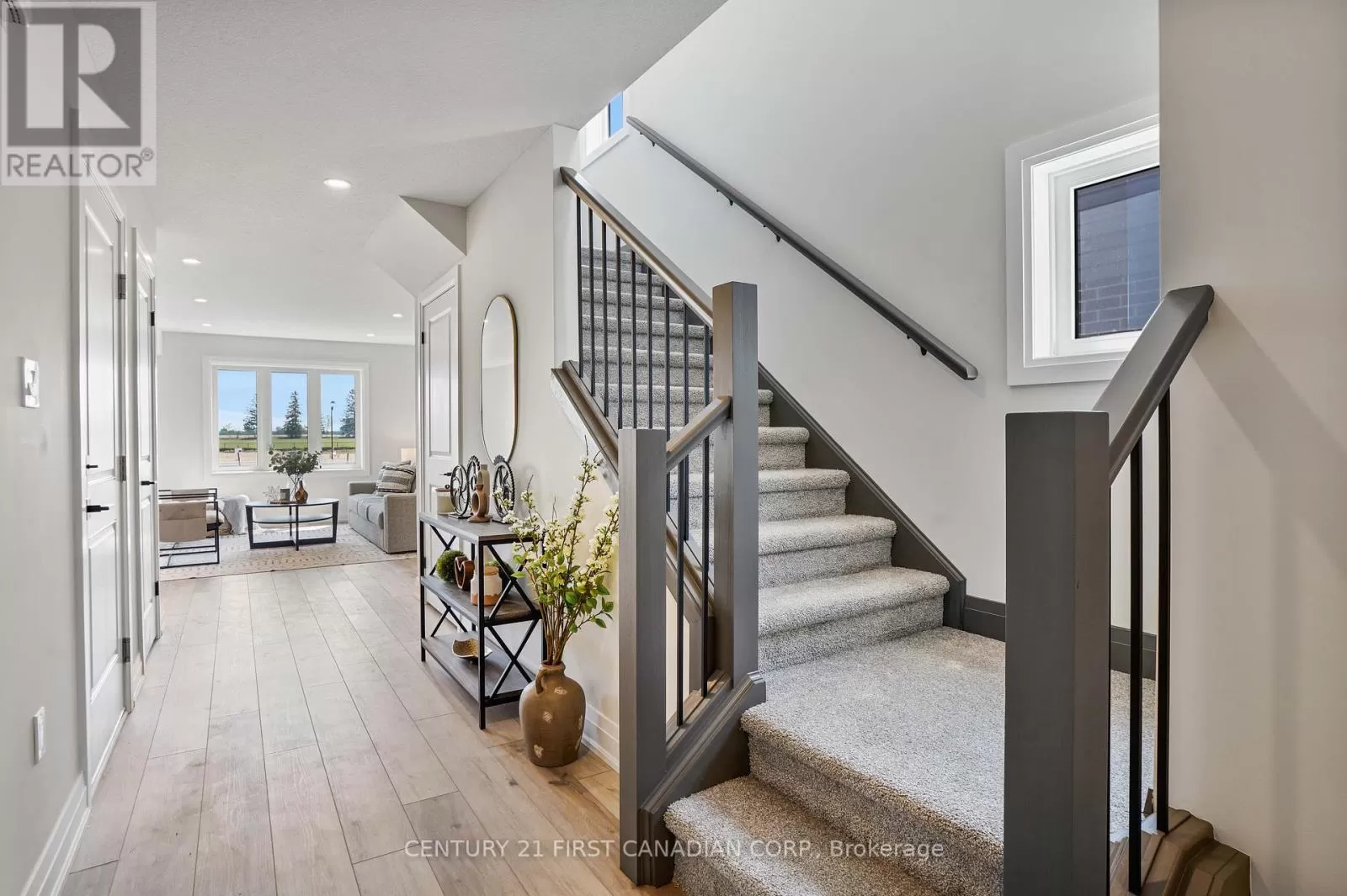 Cross Streets: Atkinson Street. ** Directions: Heading North on Queen Street, right on Atkinson St., left on Postma. Property is on the right. (Lot 82). LIMITED TIME BUILDER INCENTIVE until November 30th, 2025. Current price listed includes $25,000.00 off and an Appliance package. //UNDER CONSTRUCTION - Welcome to the Tysen Model, built by Parry Homes Inc. This thoughtfully designed home is perfect for those beginning their homeownership journey or anyone looking for a practical, easy-to-maintain space that suits a variety of lifestyles, including growing families. As you step inside, you'll be greeted by a bright, open-concept living area that effortlessly connects the living room, dining area, and kitchen. The kitchen stands out as the heart of the home, featuring stylish cabinets, sleek quartz countertops, and a spacious island. Large windows throughout the main floor fill the space with an abundance of natural light. Upstairs, the primary bedroom offers a private ensuite, creating a tranquil retreat. The remaining two bedrooms share a well-appointed 4-piece bathroom, providing comfort and convenience for the entire family. The backyard is a serene outdoor space perfect for gardening, activities, or simply unwinding. There's ample room for a patio set and play area, making it an ideal spot for enjoying the outdoors. Located just 25 minutes from North London, 15 minutes from East Strathroy, and 30 minutes from the shores of Lake Huron, Ailsa Craig offers a convenient, peaceful setting. Please note that pictures are from a previous model, and some finishes and/or upgrades shown may not be included in standard specs. Some photos virtually staged, as noted on the photo. Taxes & Assessed Value yet to be determined. (id:27476)