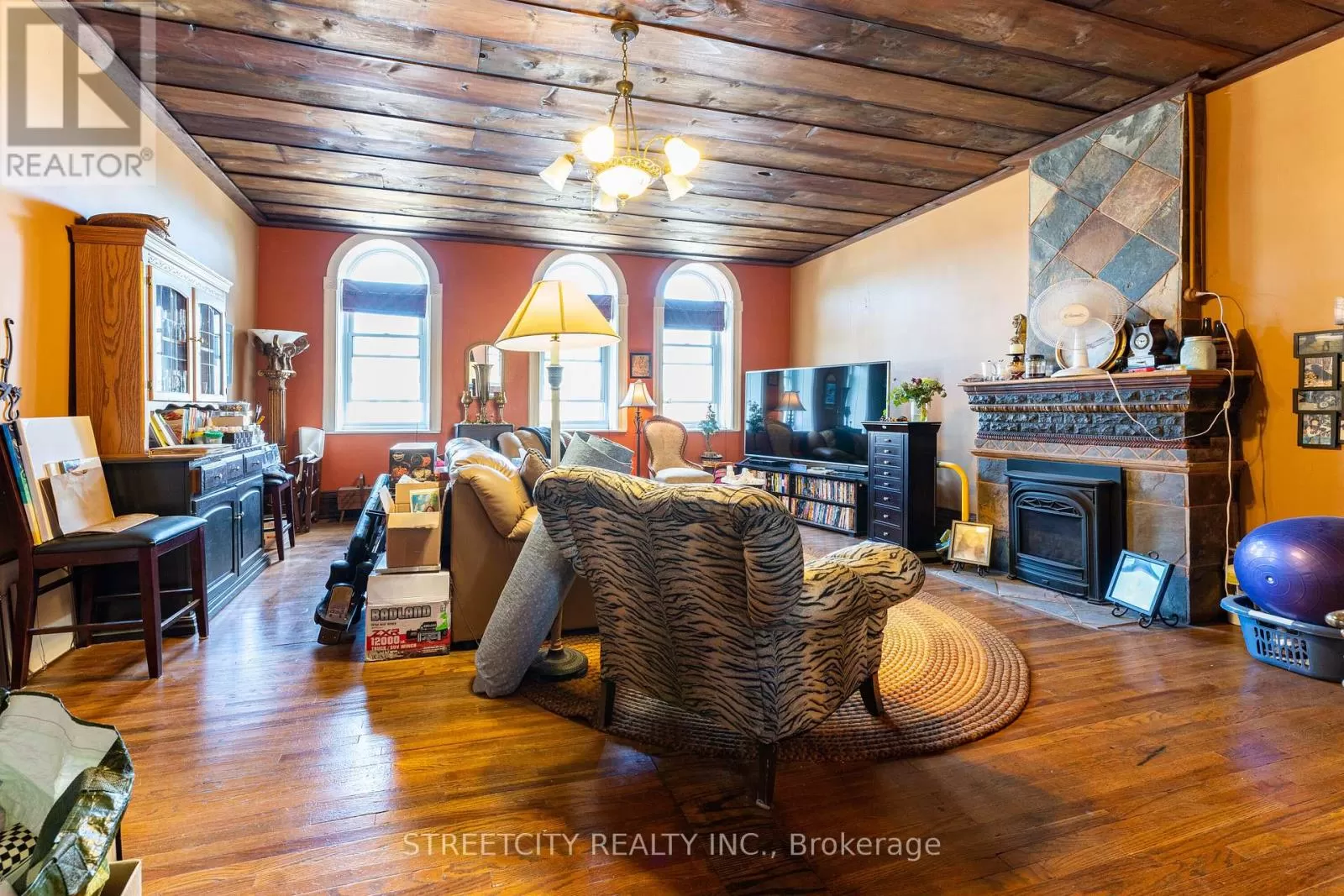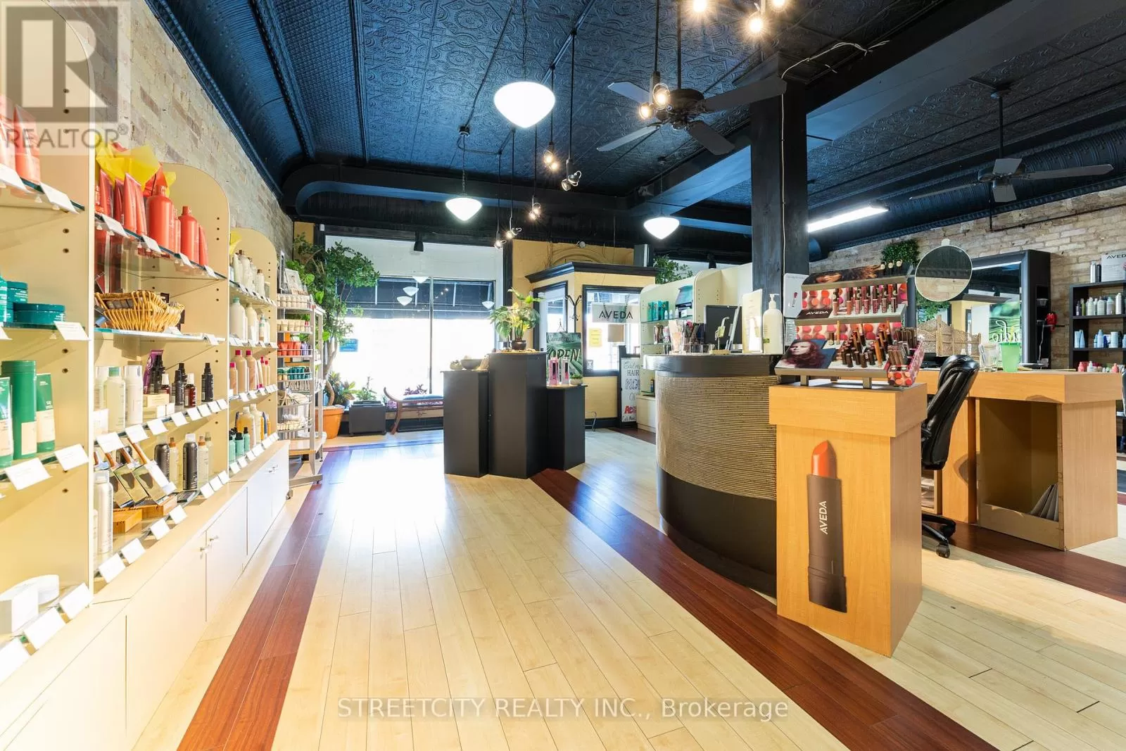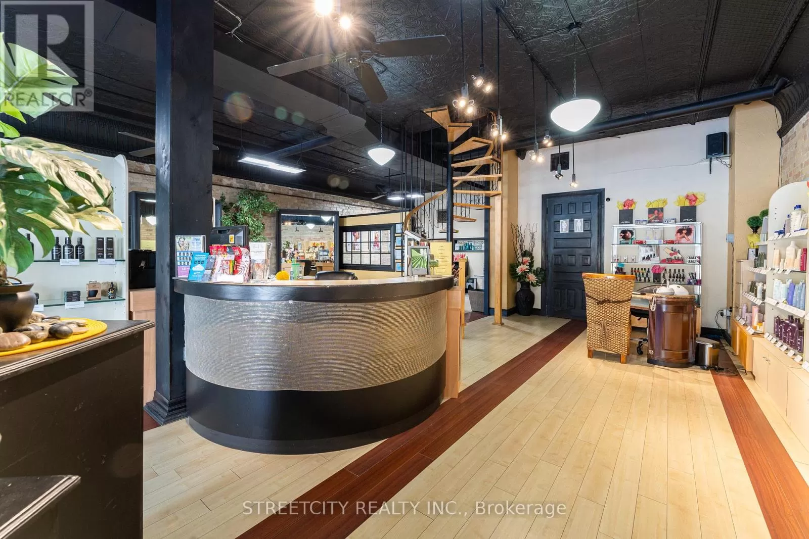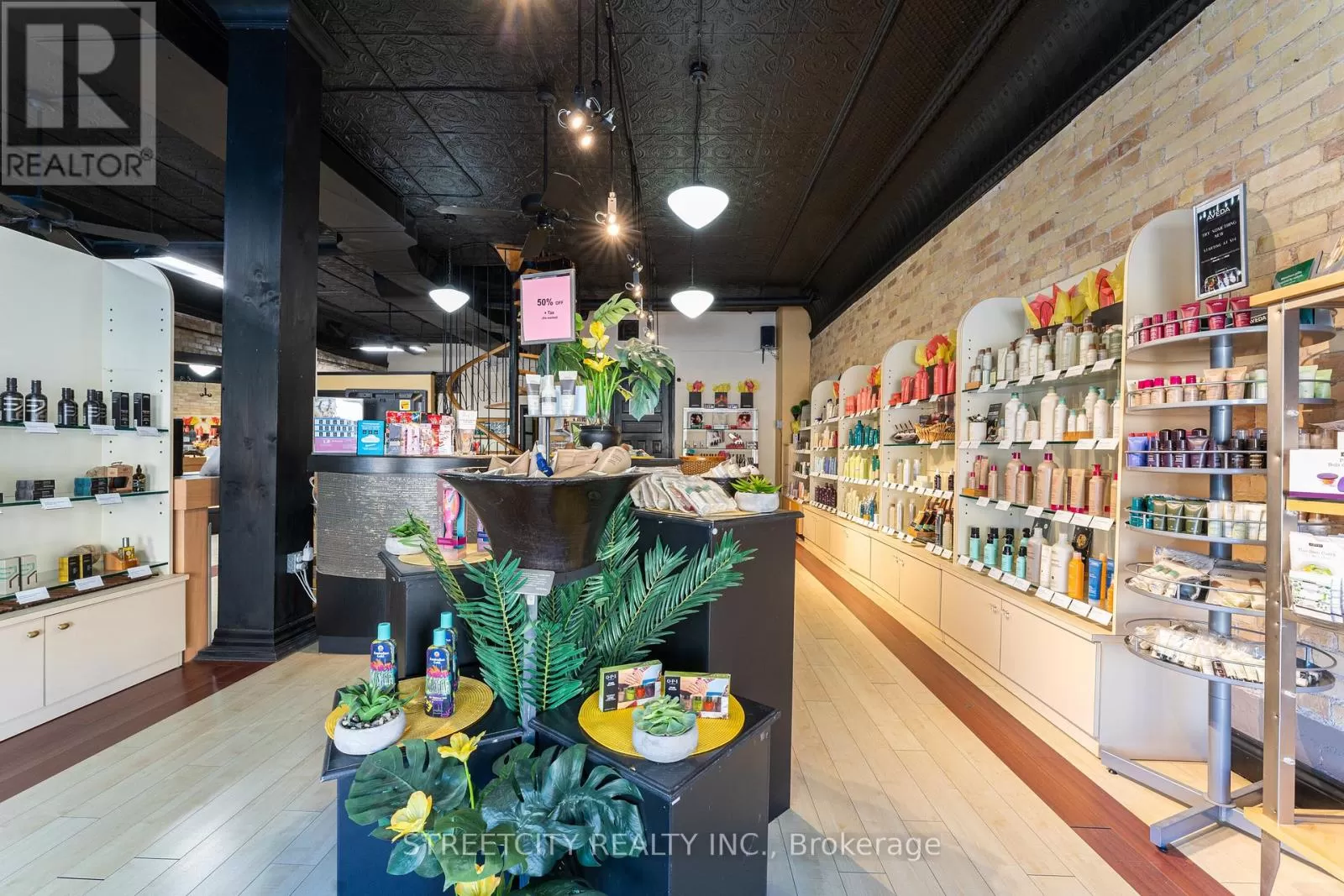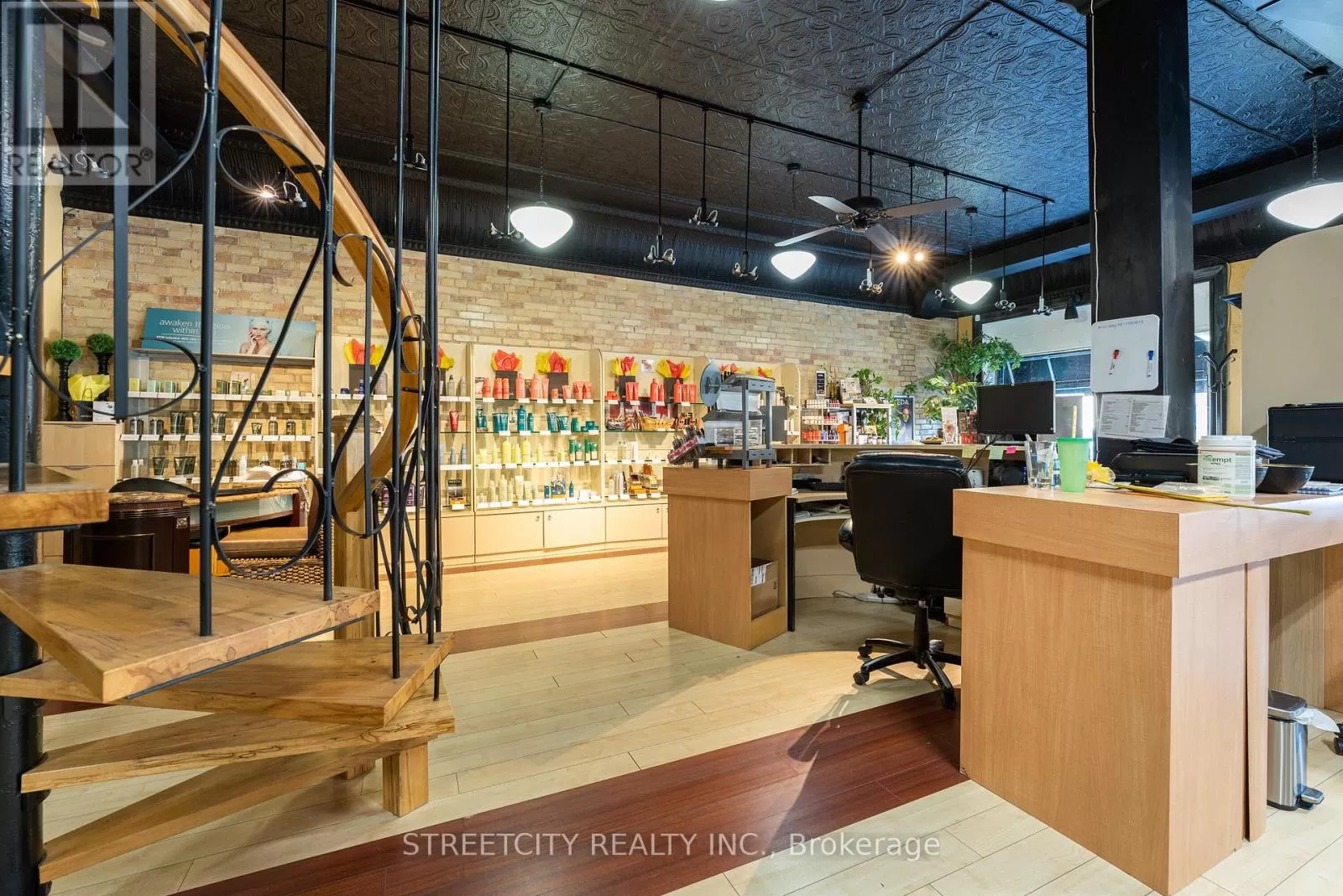 Cross Streets: Parkhill King st. ** Directions: East side of Main. Lots of potential for the right Buyer. You would need to apply for municipal approval but the upstairs layout is easy to split into a 2 bedroom unit and a 1 bedroom unit with separate hallway access for each. A back portion of the retail could be converted to residential apartment but would need all the municipal approvals. As existing it features a a 3 bedroom unit (new kitchen to be installed this month)2 bathrooms , large living room , Kitchen , and a sitting room at the back with a balcony. The commercial retail space on the main floor is ready to lease out or run your own business. Amazing property to live in the unit above and run your business below or lease the entire building for great income. The property size is 23,712.87 ft2(0.544 ac). (id:27476)