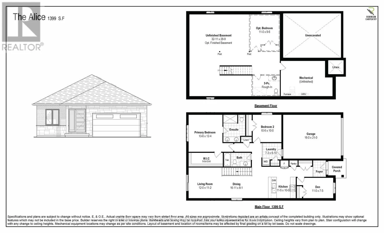 Cross Streets: Atkinson St. ** Directions: Travelling north on Queen St, turn right onto Atkinson St. Turn right onto Sheldabren St. Property is on the right. (Lot 46). New Model by Robinson Carpentry. The ALICE model, 1399 sqft bungalow. Luxury vinyl flooring Installed throughout. Discover Ausable Bluffs, a vibrant master-planned community in the charming town of Ailsa Craig, just 20 minutes north of London. This thoughtfully designed neighbourhood offers the perfect balance of small-town living and modern convenience. The Alice model by Robinson Carpentry delivers 1,399 sq. ft. of beautifully planned one-floor living. The open-concept layout features a stylish kitchen with pantry, a spacious dining area, and a welcoming living room perfect for entertaining or relaxing at home. A versatile front den provides the ideal space for a home office, library, or guest room. The primary suite includes a walk-in closet and private ensuite, while the second bedroom and full bath offer comfort for family or guests. Main-floor laundry and a generously sized garage add everyday convenience. This home also includes an owned on-demand hot water tank, giving you efficiency and one less monthly payment to manage. With its modern design, quality finishes, and the inviting setting of Ausable Bluffs, the Alice is a bungalow that combines comfort, style, and functionality in one perfect package. Includes Tarion warranty. Fully graded and sodded lot. Rendition is for illustration purposes only, & construction materials may be changed. Taxes & Assessed Value yet to be determined. (id:27476)