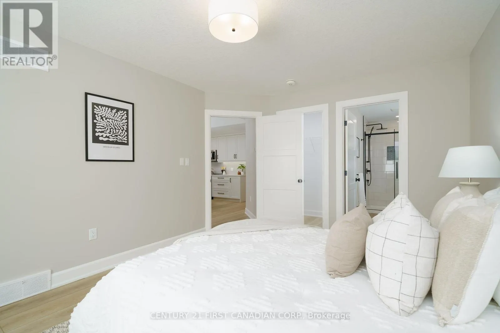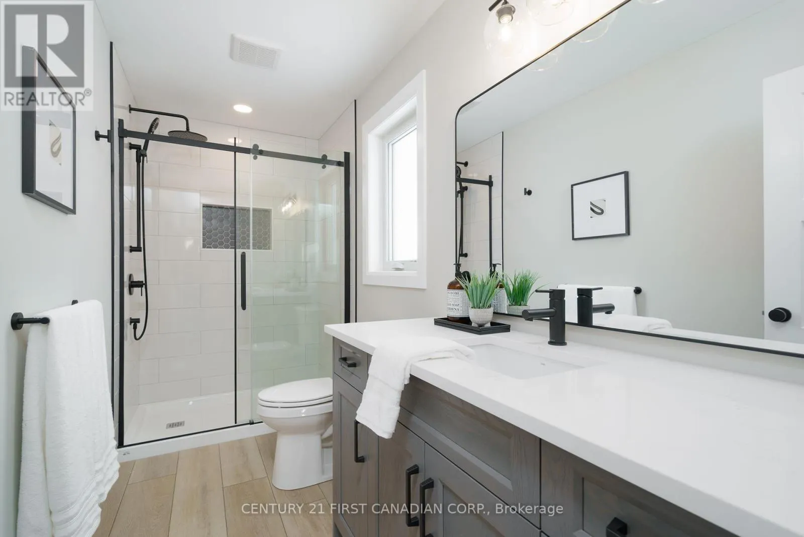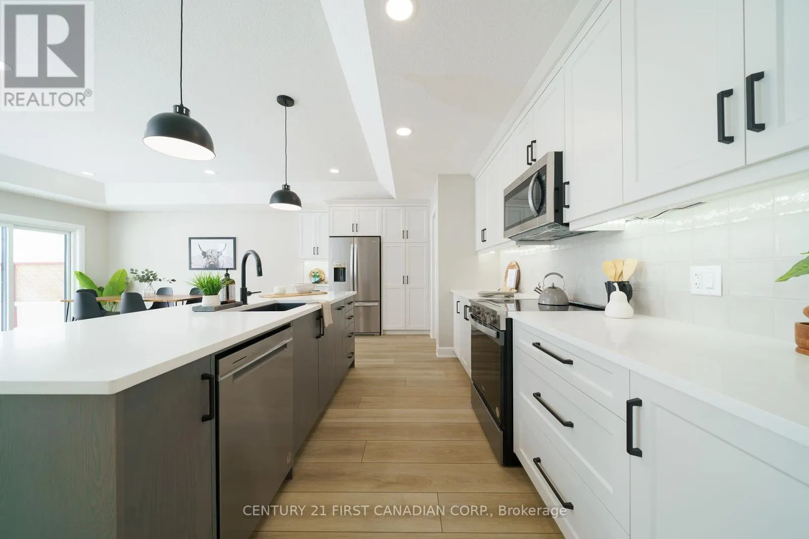 Cross Streets: Queen St. ** Directions: Travelling north on Queen St, turn right onto Hamilton St. Property on the right prior to Postma Cres. LIMITED TIME BUILDER INCENTIVE until November 30th, 2025. Current price listed includes $25,000.00 off and an Appliance package. // MOVE IN READY - The James Model built by Colden Homes is a beautifully crafted 1350 square foot bungalow that is both classy and functional, making it an ideal choice for anyone looking for the perfect balance of elegance and practicality, as well as those seeking a comfortable, low-maintenance living space. Whether you are downsizing or looking for a new chapter, The James Model is designed to meet your needs while offering a warm, welcoming environment. The open-concept main floor features a generous great room that flows seamlessly into the dinette and kitchen, creating the perfect space for gathering and relaxation. The kitchen in The James Model is spacious and perfect for both cooking and entertaining, featuring a large layout with a massive island that comfortably seats four people. Its designed with ample countertop space, providing plenty of room for meal prep and gatherings. With high-quality cabinetry and a functional design, this kitchen truly serves as the heart of the home. The primary suite offers a peaceful retreat, complete with a 3-piece ensuite and a walk-in closet. An additional bedroom and full bathroom and main floor laundry provide comfort and convenience for family or guests. Upgrades Include: tile shower in ensuite, vinyl plank in bedrooms, kitchen cabinets to the ceiling and upgraded board and batten siding on the exterior. Ausable Bluffs is only 20 minutes away from north London, 15 minutes to east of Strathroy, and 25 minutes to the beautiful shores of Lake Huron. Tarion Warranty Included. Taxes & Assessed Value yet to be determined. (id:27476)