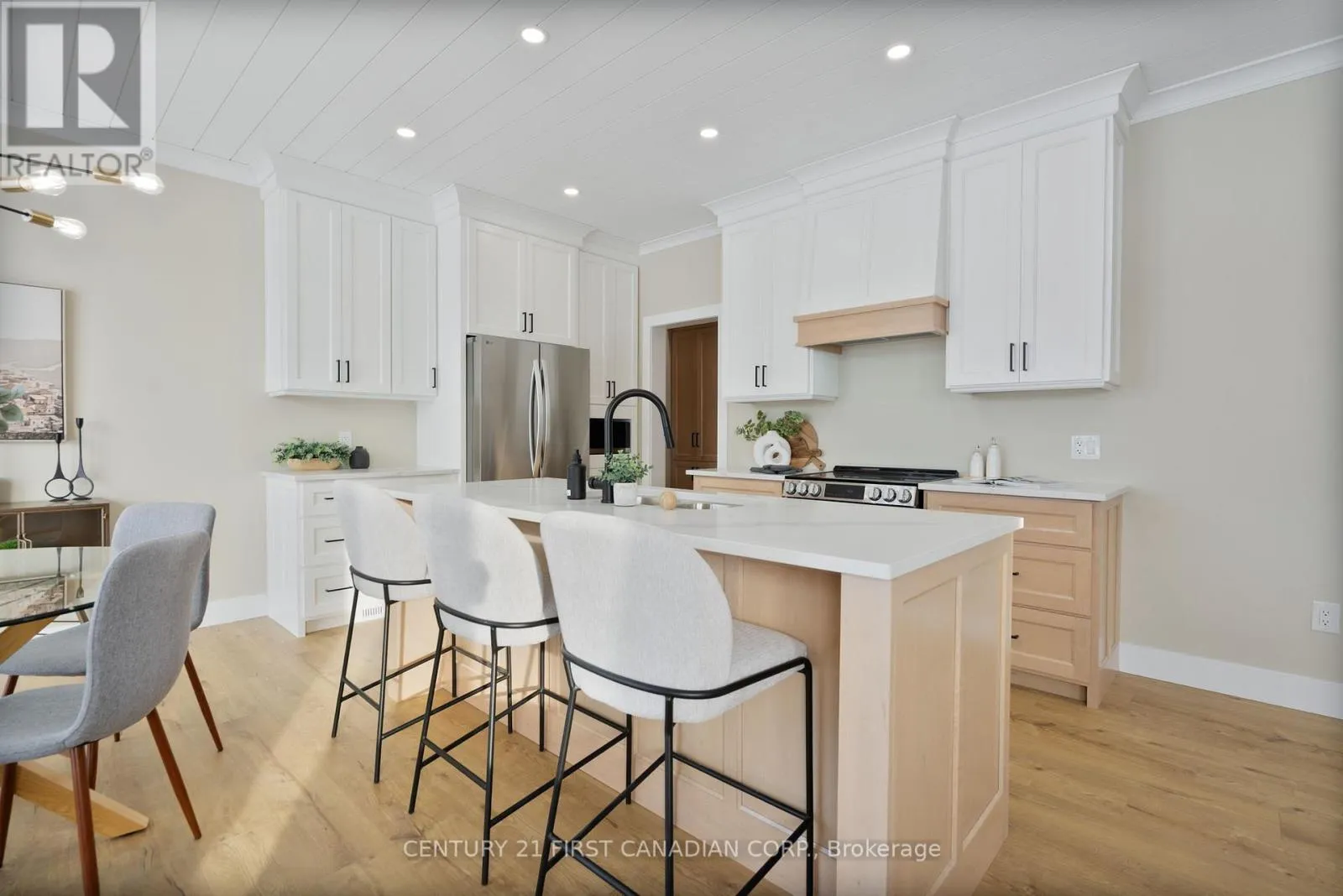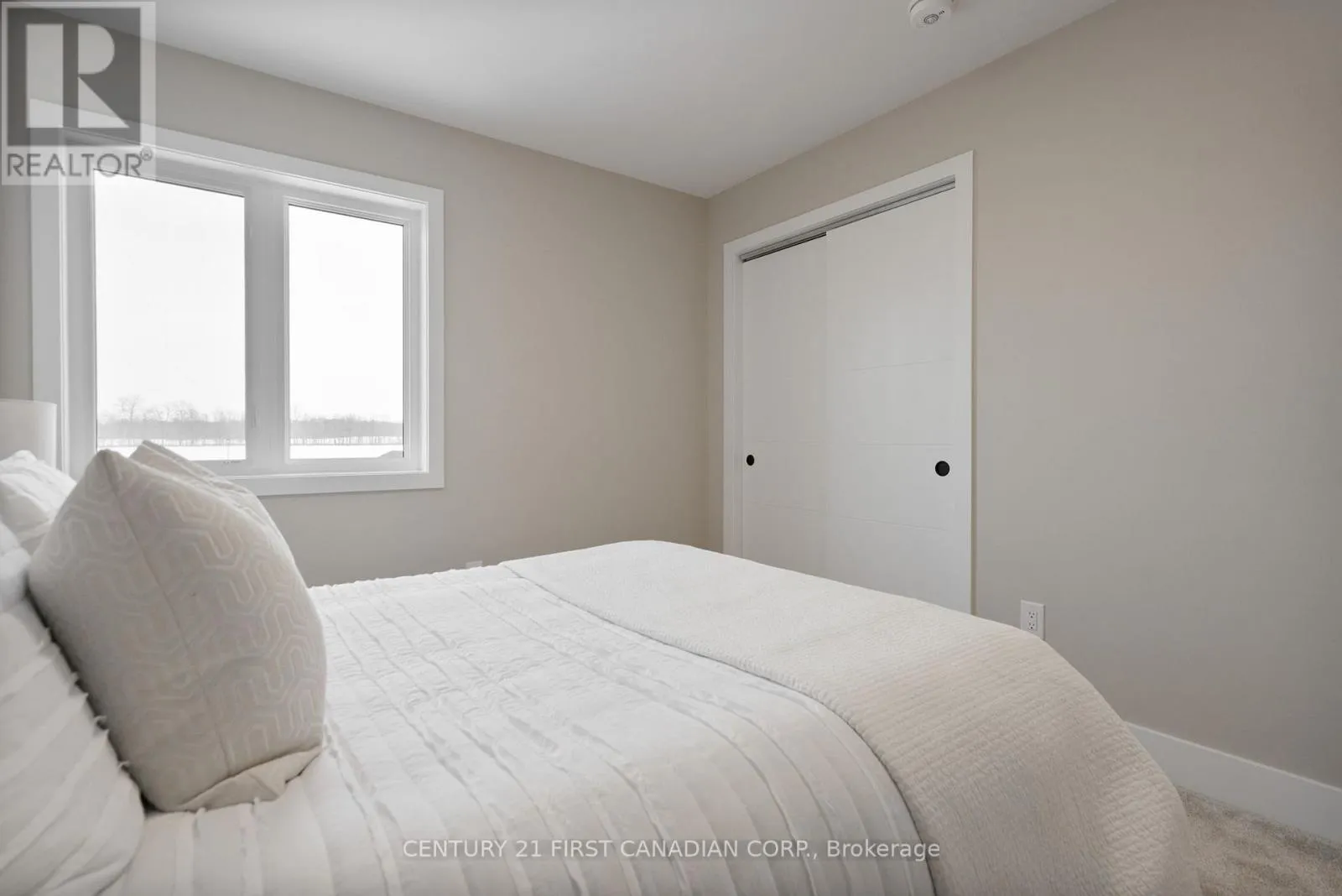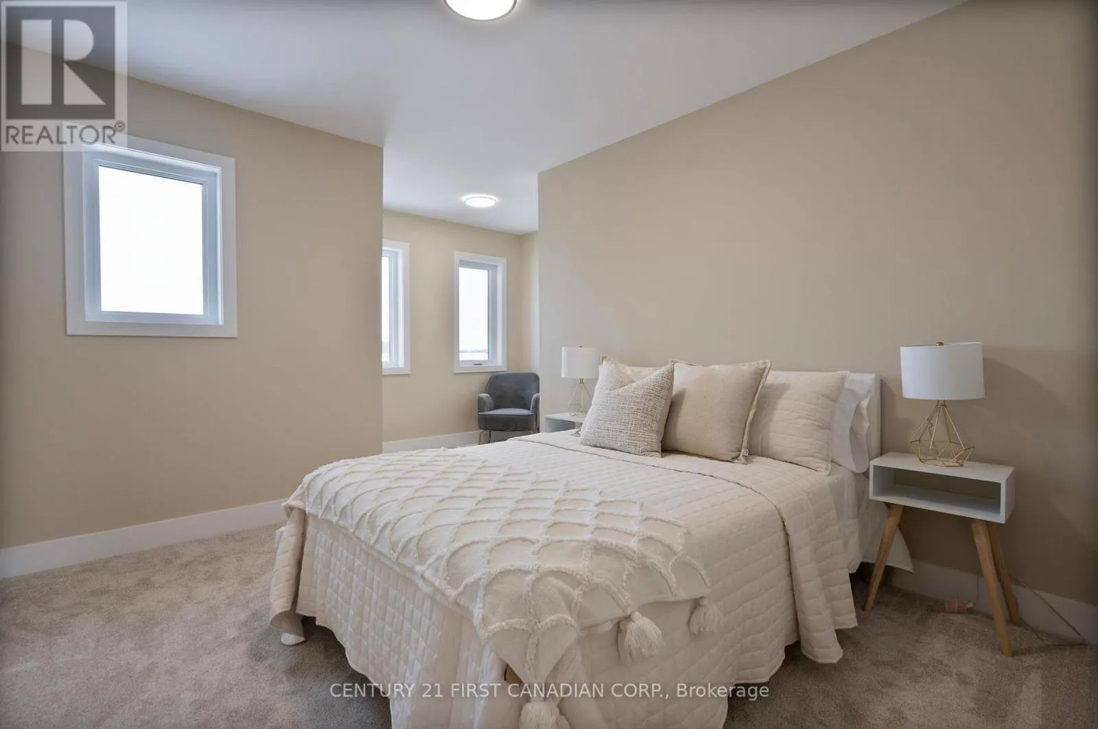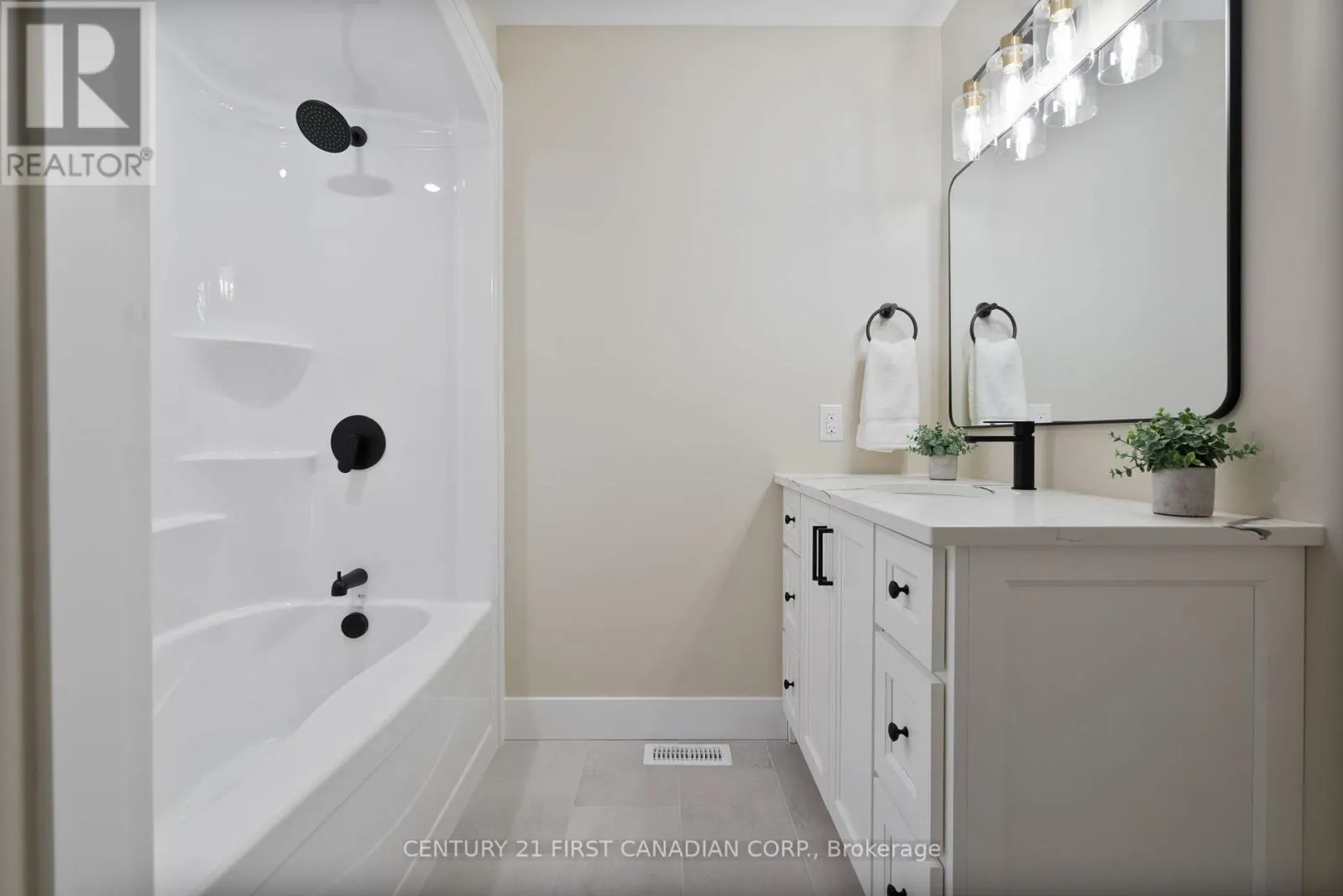 Cross Streets: Atkinson St. ** Directions: Heading north on Queen St, turn right onto Atkinson St, turn right onto Sheldabren St, the property is on the right. MOVE IN READY. This striking 1944 sqft new-build two-storey home in Ailsa Craig offers a perfect blend of modern design and small-town charm. The home features a sleek exterior accented with a mix of stone and modern siding, large black-framed windows, and a welcoming front porch. Inside, the main floor is open-concept and flooded with natural light, anchored by a cozy living area complete with a modern gas fireplace set into a floor-to-ceiling stone surround perfect for relaxing evenings. The kitchen boasts quartz countertops, minimalist cabinetry, a central island, and stainless-steel appliances, flowing seamlessly into the dining area with views of the backyard. Upstairs, you will find three well-sized bedrooms, including a spacious primary bedroom with a walk-in closet and an ensuite bathroom featuring a glass walk-in shower and dual vanities. The two additional bedrooms are ideal for family, guests, or a home office setup, and they share a bright, well-appointed full bathroom. The unfinished basement offers a blank canvas for future expansion whether you are envisioning a home gym, recreation room, or extra bedrooms, the space is ready to be transformed. Located in the peaceful community of Ailsa Craig, this home combines modern comfort with a quiet, family-friendly atmosphere. Some rooms are virtually staged, as noted on the photo comments. Taxes and Assessed value yet to be determined. (id:27476)