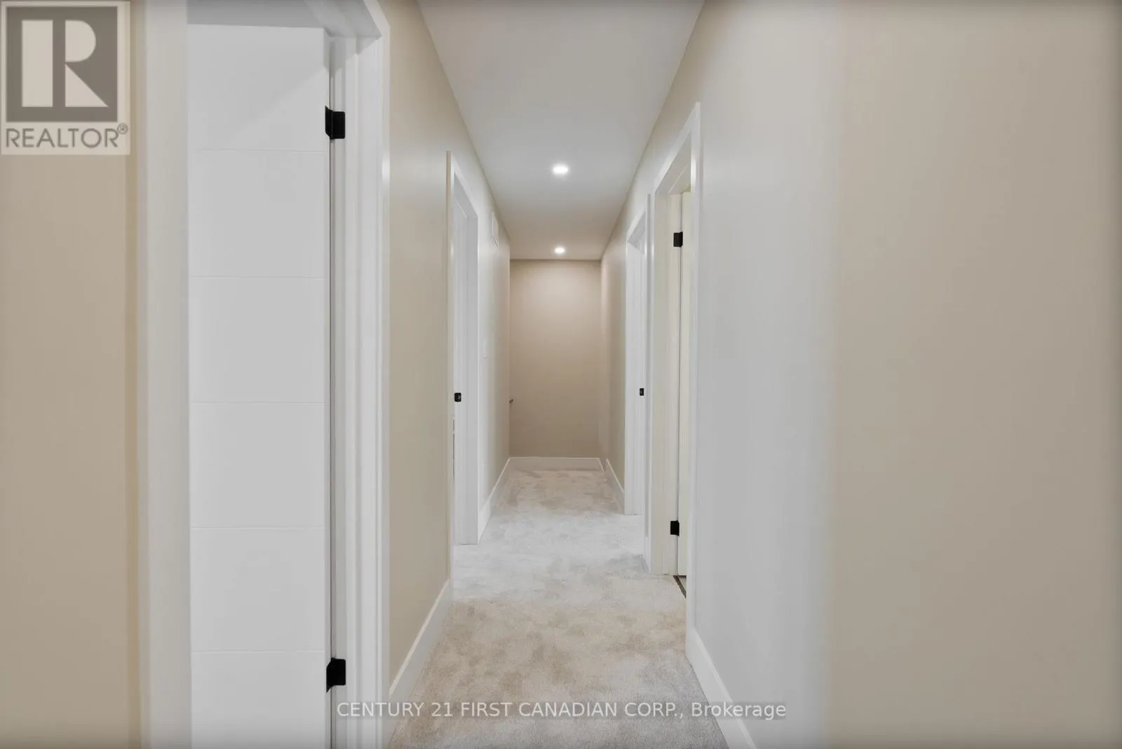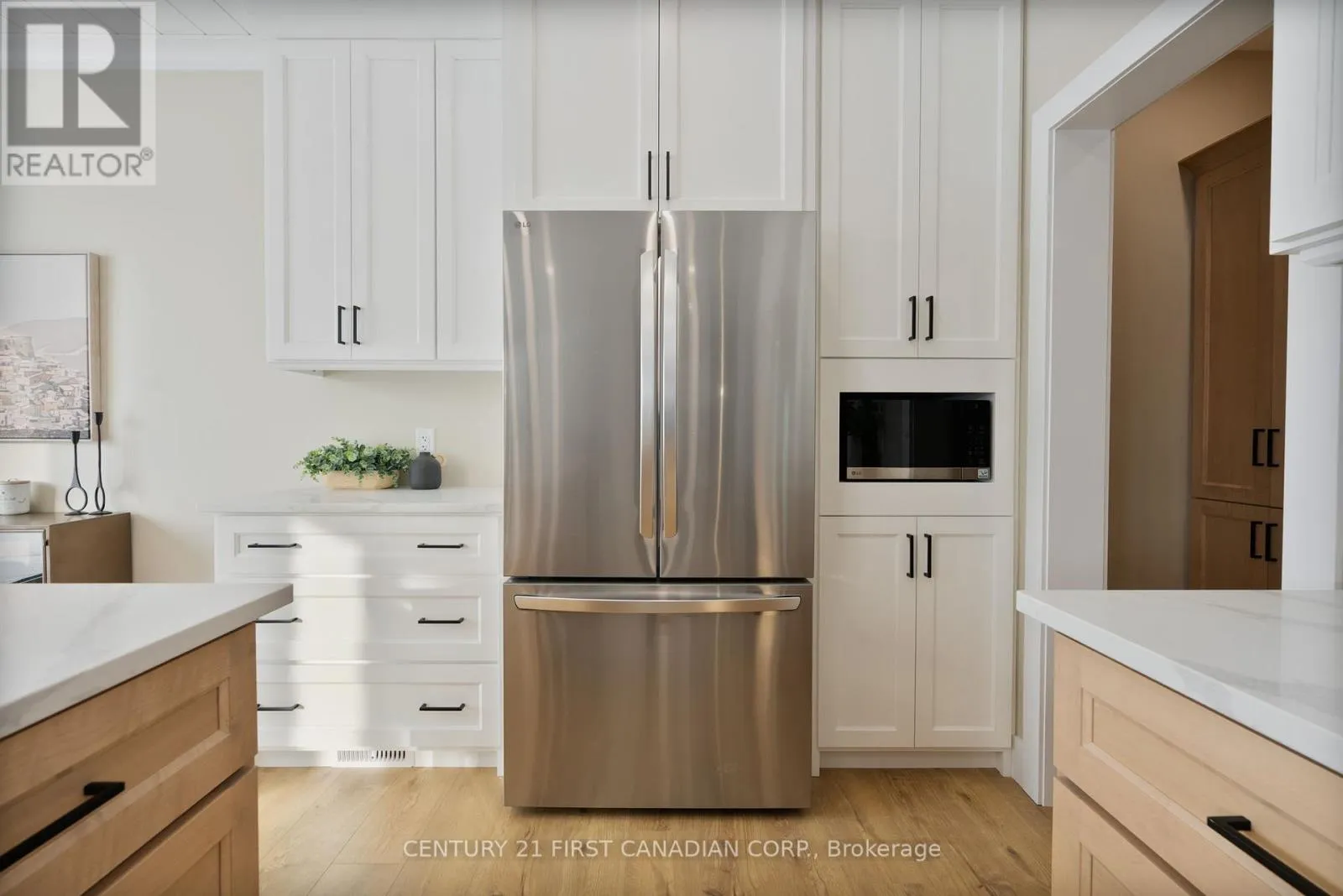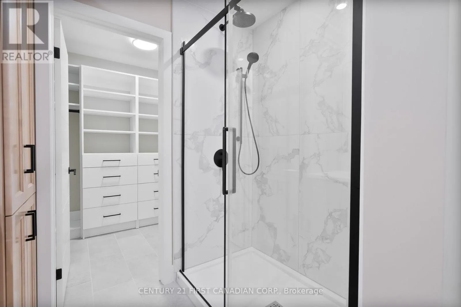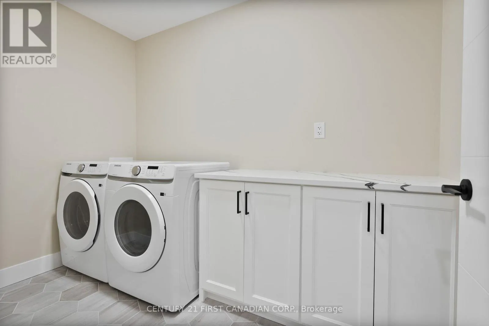 Cross Streets: Atkinson St. ** Directions: Heading north on Queen St, turn right onto Atkinson St, turn right onto Sheldabren St, the property is on the right. MOVE IN READY. This striking 1944 sqft new-build two-storey home in Ailsa Craig offers a perfect blend of modern design and small-town charm. The home features a sleek exterior accented with a mix of stone and modern siding, large black-framed windows, and a welcoming front porch. Inside, the main floor is open-concept and flooded with natural light, anchored by a cozy living area complete with a modern gas fireplace set into a floor-to-ceiling stone surround perfect for relaxing evenings. The kitchen boasts quartz countertops, minimalist cabinetry, a central island, and stainless-steel appliances, flowing seamlessly into the dining area with views of the backyard. Upstairs, you will find three well-sized bedrooms, including a spacious primary bedroom with a walk-in closet and an ensuite bathroom featuring a glass walk-in shower and dual vanities. The two additional bedrooms are ideal for family, guests, or a home office setup, and they share a bright, well-appointed full bathroom. The unfinished basement offers a blank canvas for future expansion whether you are envisioning a home gym, recreation room, or extra bedrooms, the space is ready to be transformed. Located in the peaceful community of Ailsa Craig, this home combines modern comfort with a quiet, family-friendly atmosphere. Some rooms are virtually staged, as noted on the photo comments. Taxes and Assessed value yet to be determined. (id:27476)